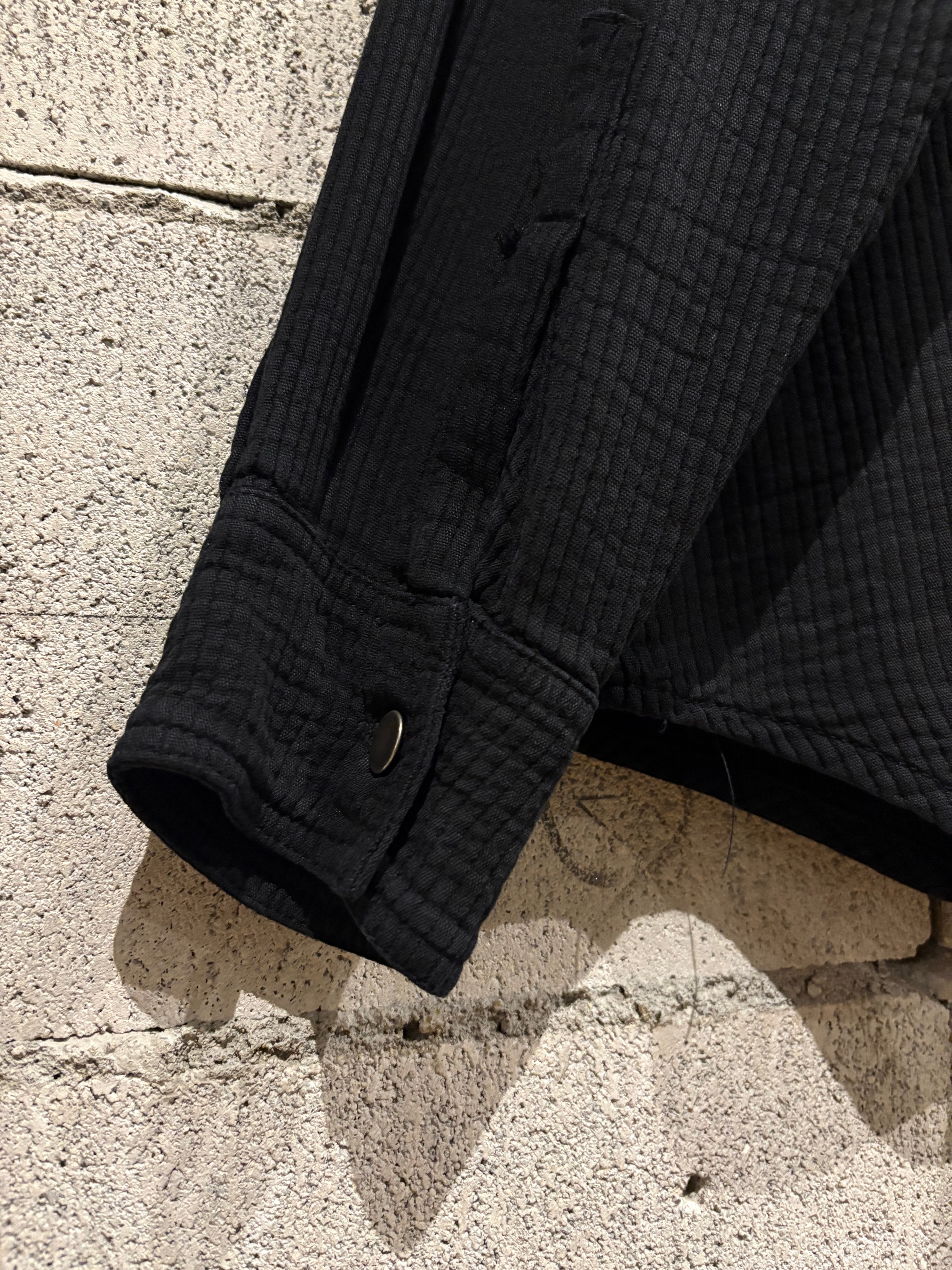 両胸にはポケット、全体にはステッチによる立体感があり、オールブラックのボディが豊かな表情に仕上がっています。