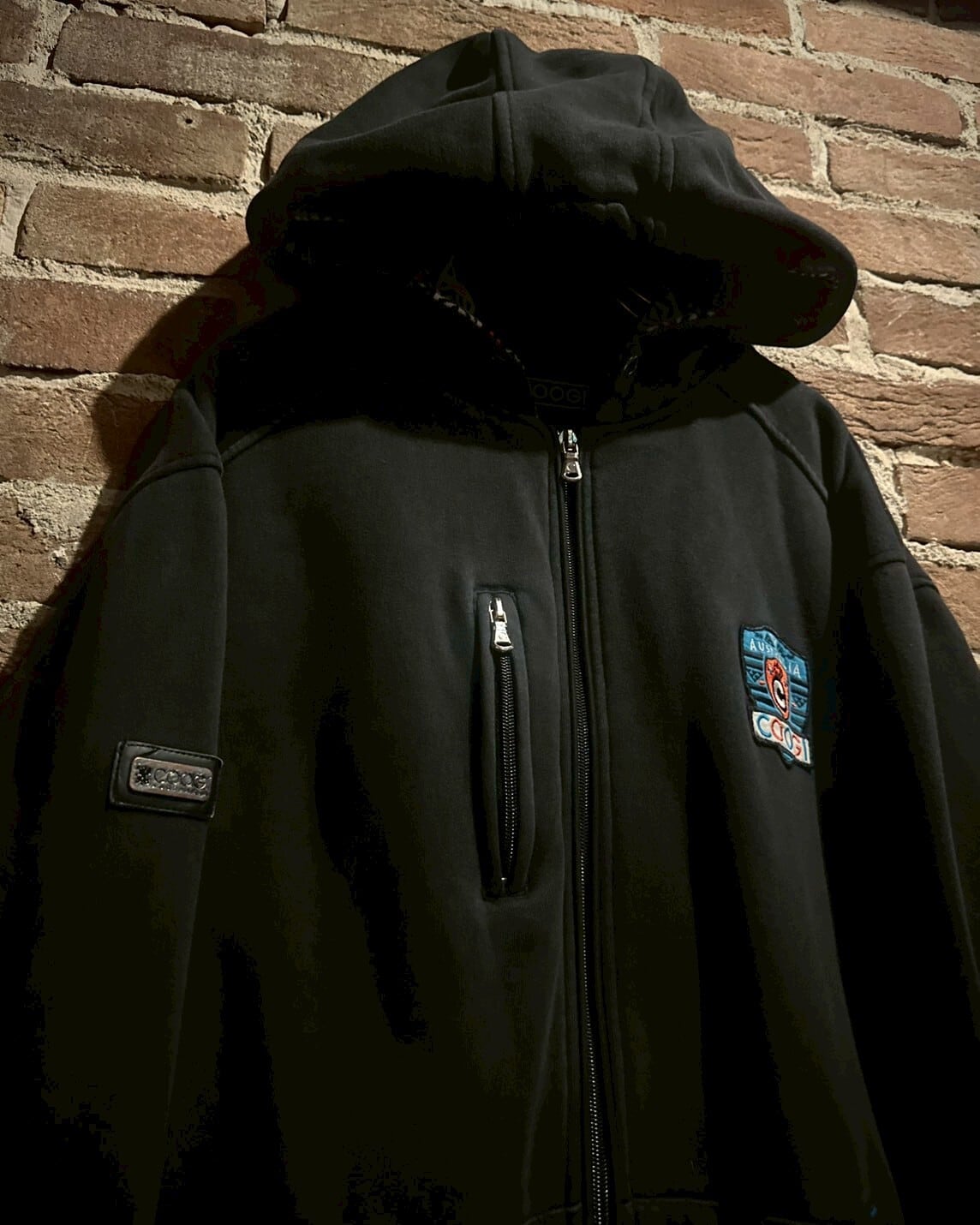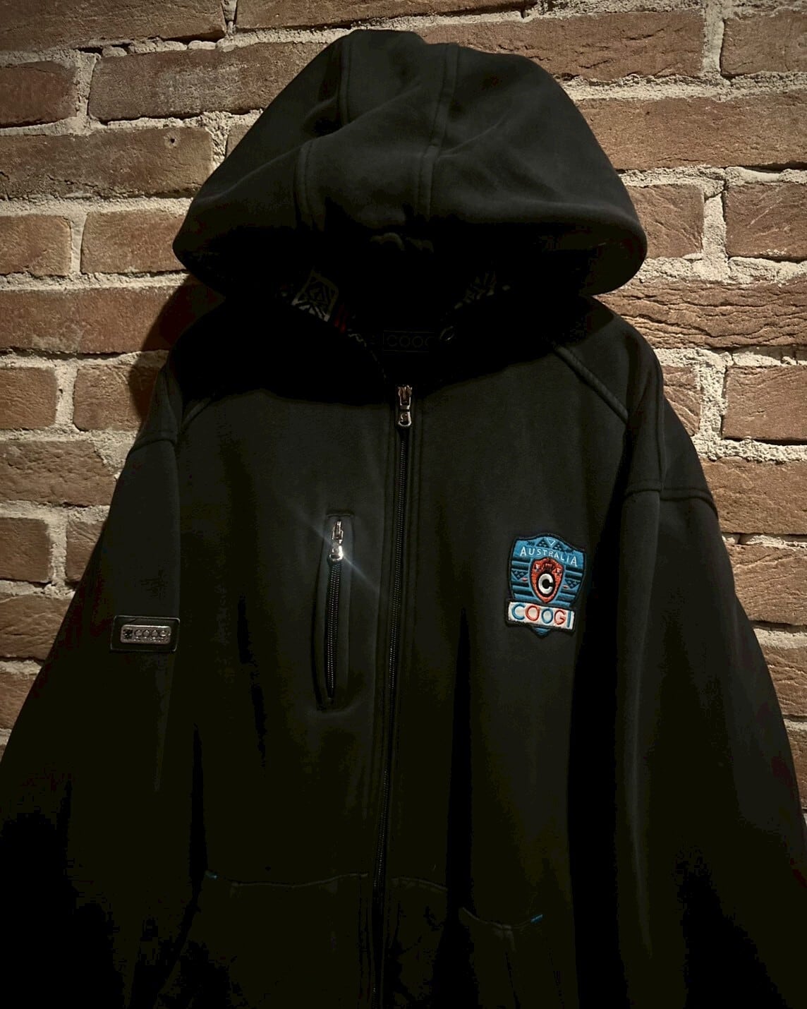 フード裏にはネイティブ調の柄、ポケットにはキルティングステッチ、フロントには縦型のジップポケットとCOOGIならではの高いデザイン性にハイクオリティな作り込みが素晴らしいですね、、、