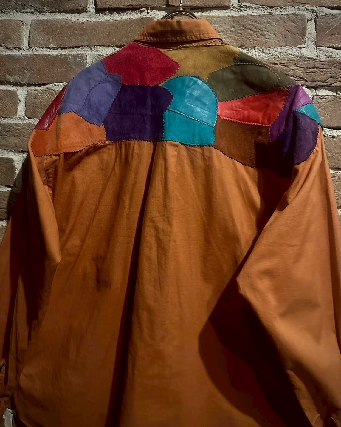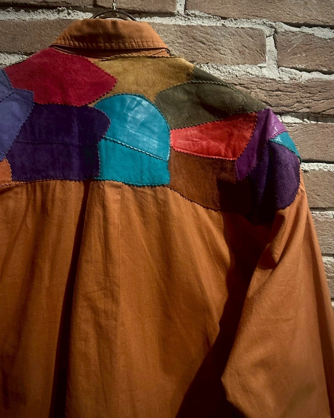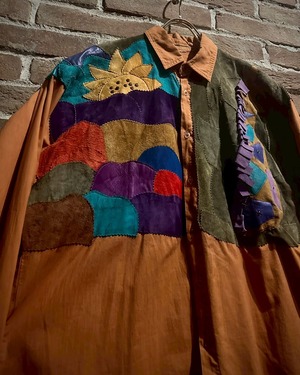 オレンジのボディをベースに、レザーを切り替えたスペシャルな長袖シャツ。
