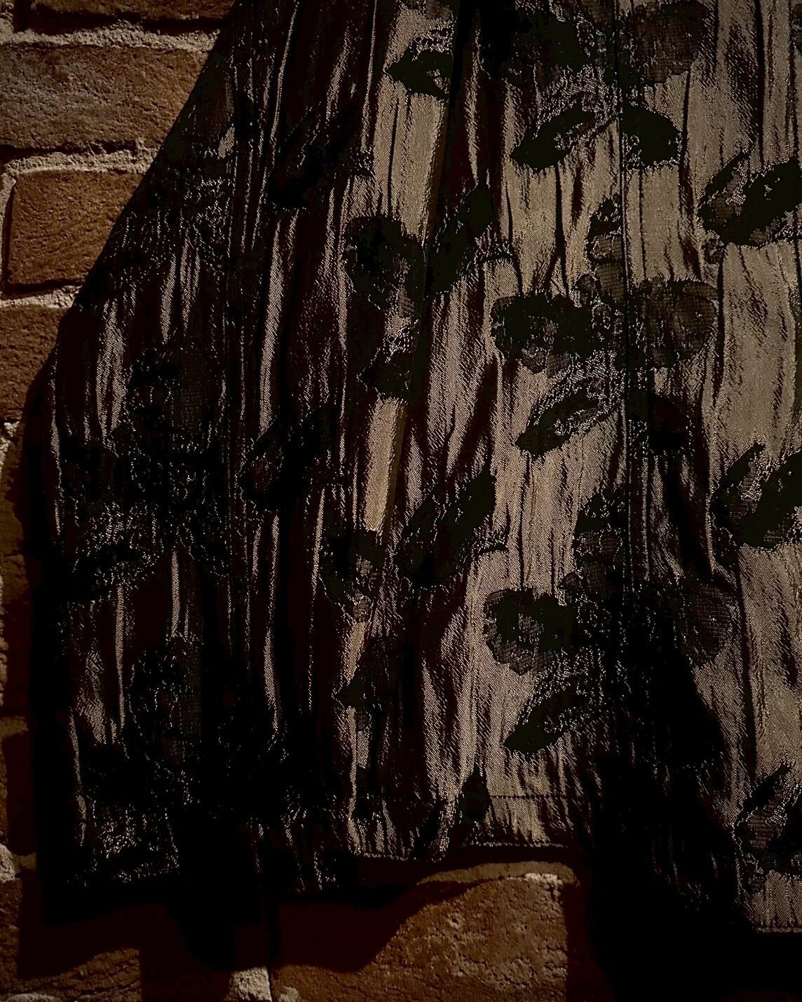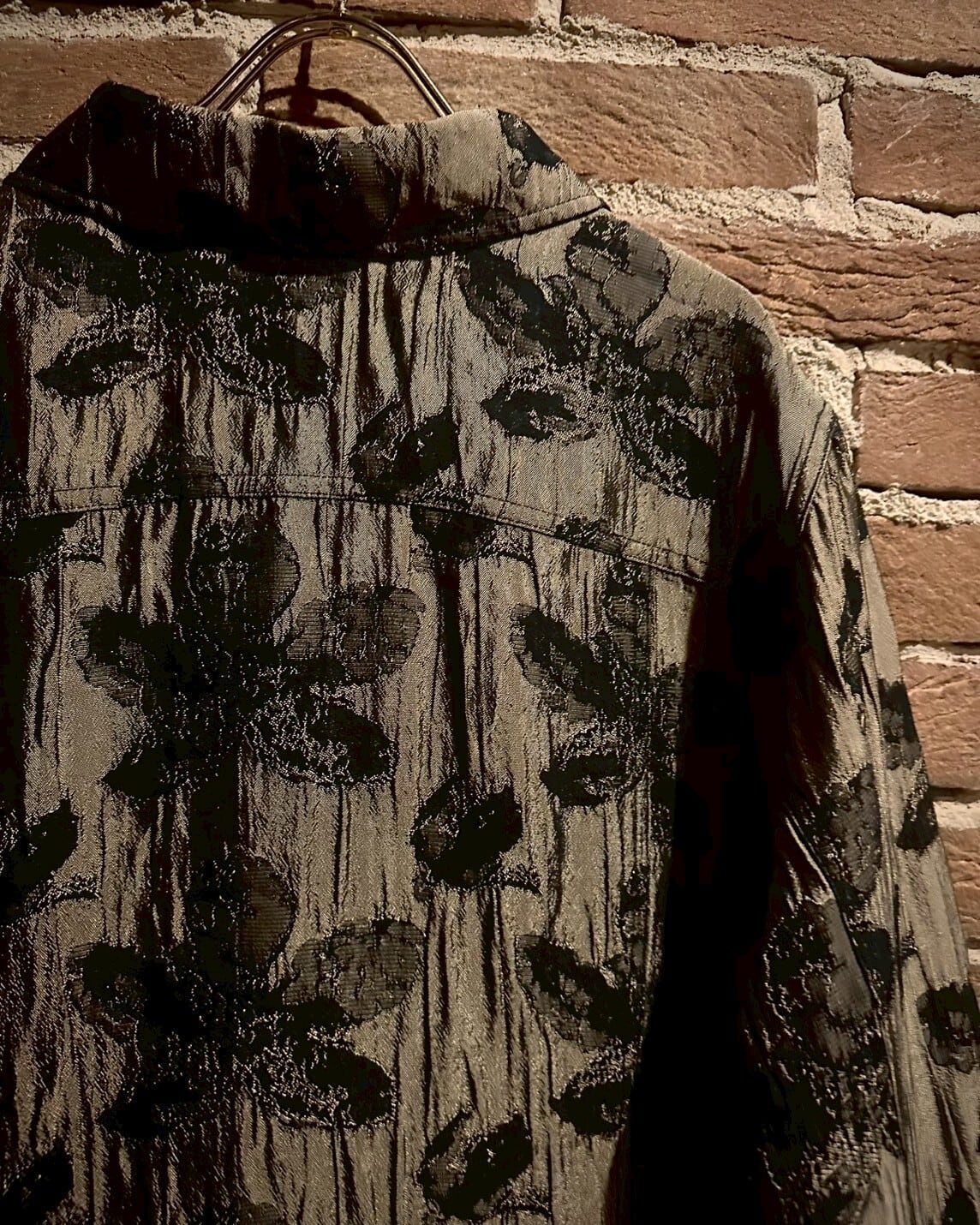 シワ加工が施されたゴールドのボディに、花をジャガード織りで表現したジャケット。