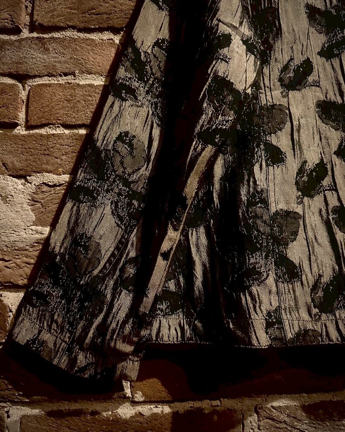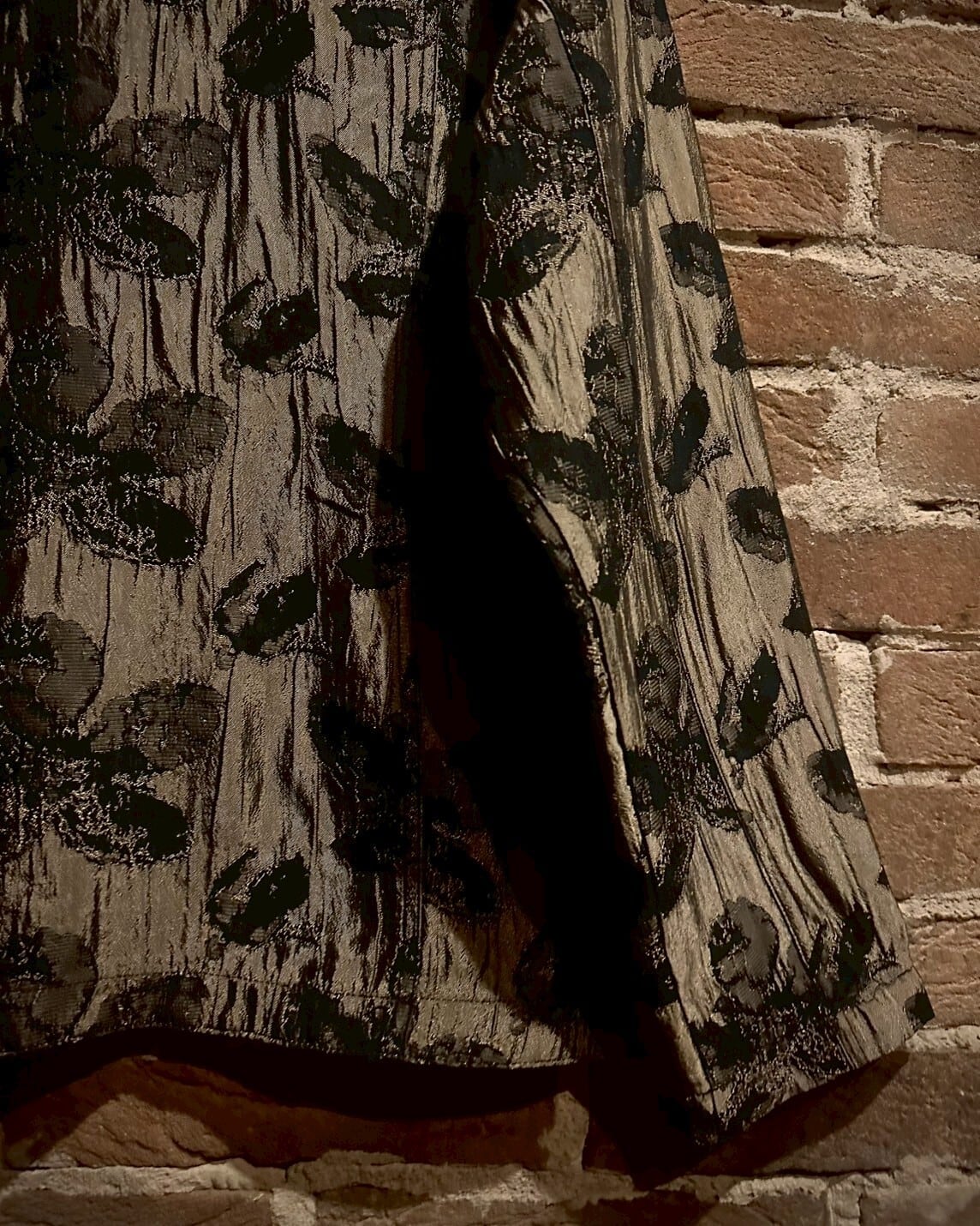 ゴールドの鈍い輝き、ジャガード織りの花の立体的な表情が存在感を抜群に放っており、今からの季節の主役のアウターとして大活躍必至ですね。