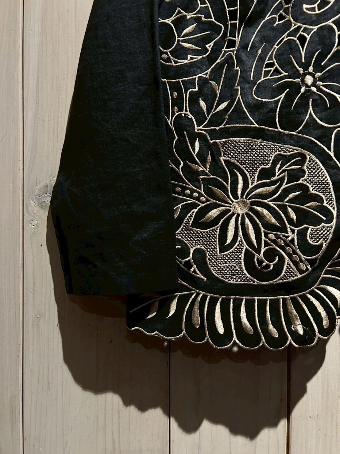 稀少価値の上がっているブラックリネンに、美しい花の刺繍を刻んだスペシャルな1着です。