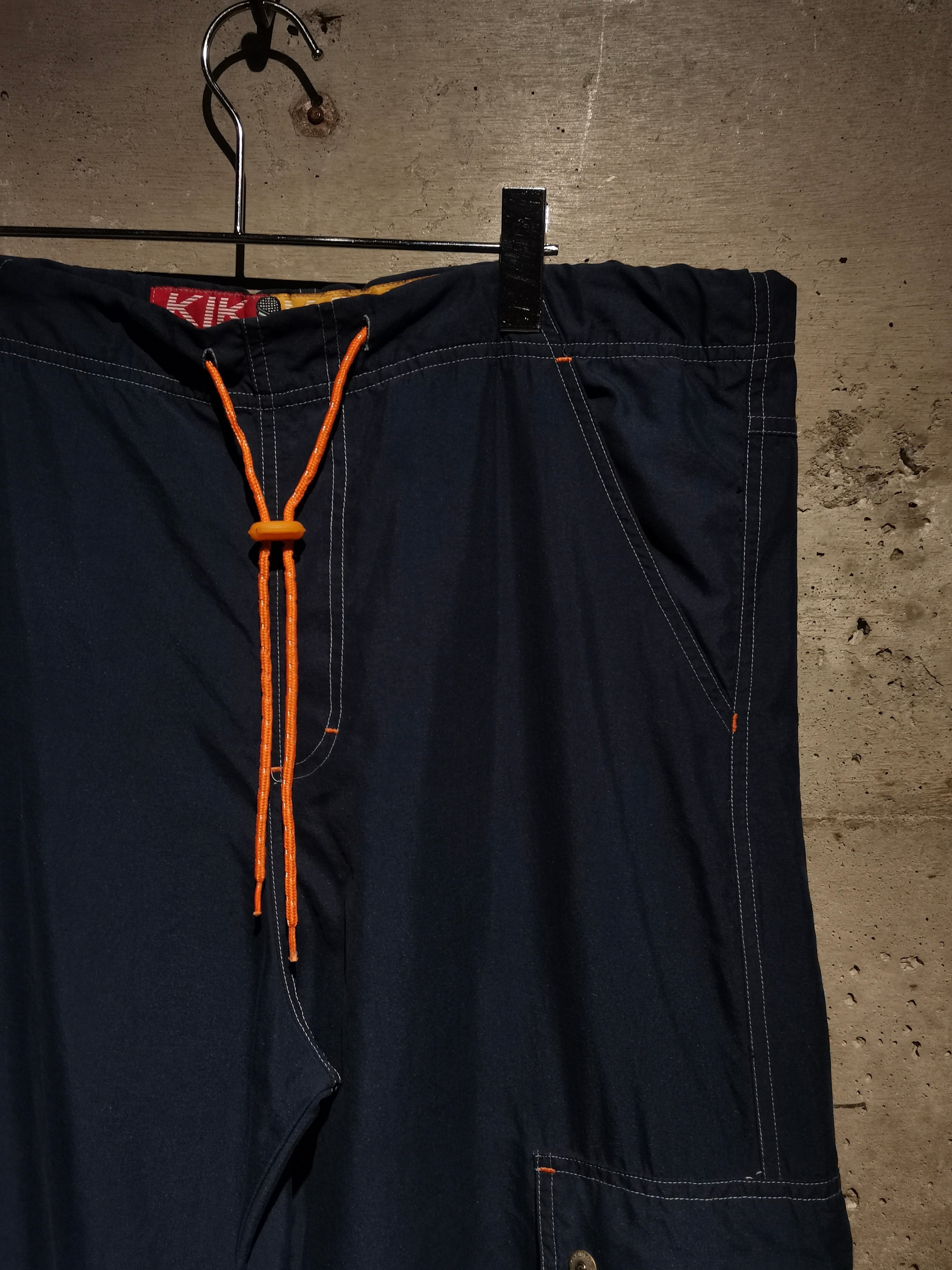 1992年にロサンゼルスにて創業され、当時のストリートシーンを代表するファッションブランド"KIK WEAR"より、程よく光沢感の乗ったナイロン素材が採用され、ブランドらしいストリートノリのワイドなシルエットとナイロンカーゴパンツが入荷。