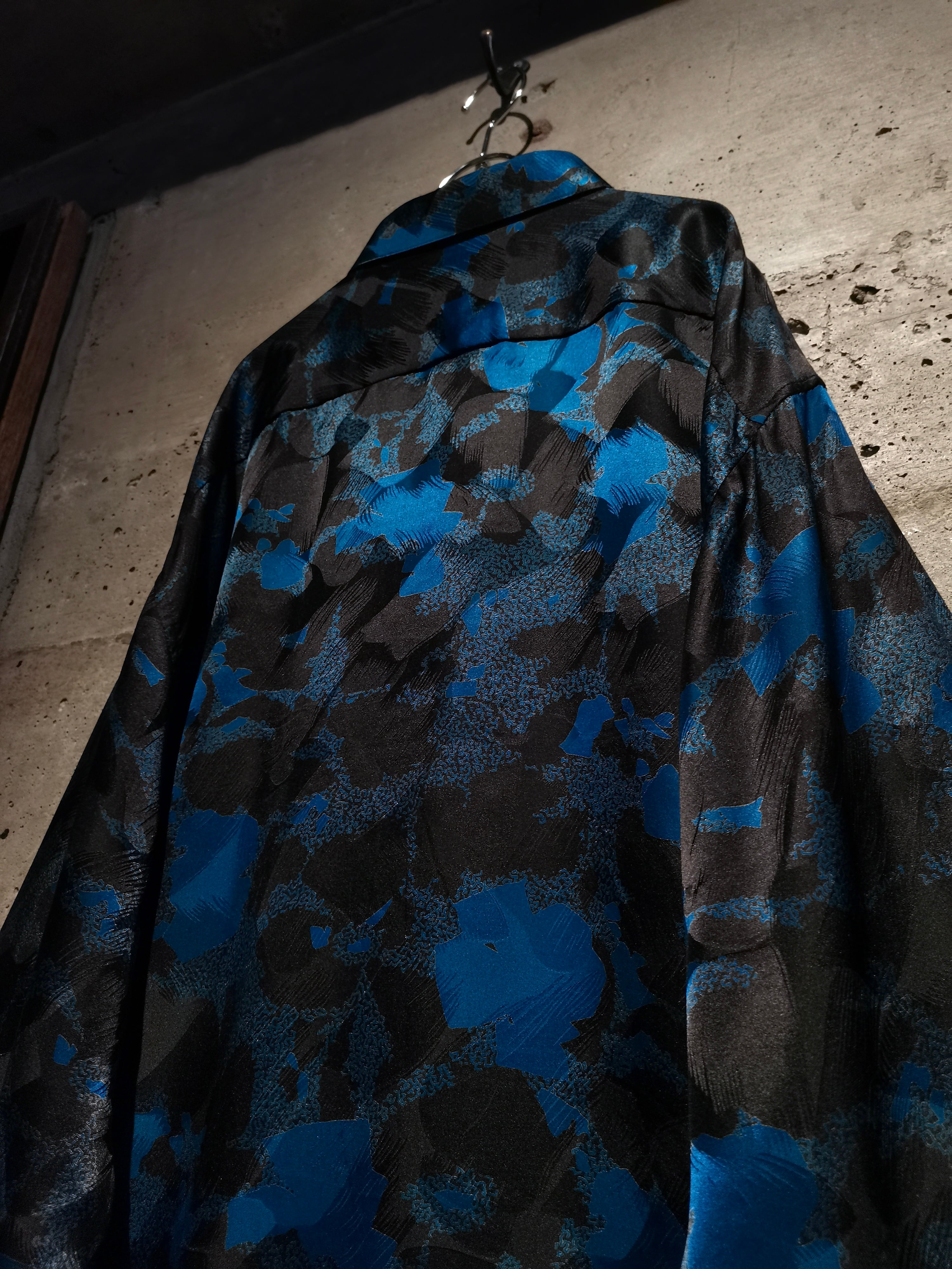 ハリ、光沢のある上質なシルクを用いたボディに、繊細な織りで抽象的かつアーティスティックな柄模様を載せた長袖シャツ。