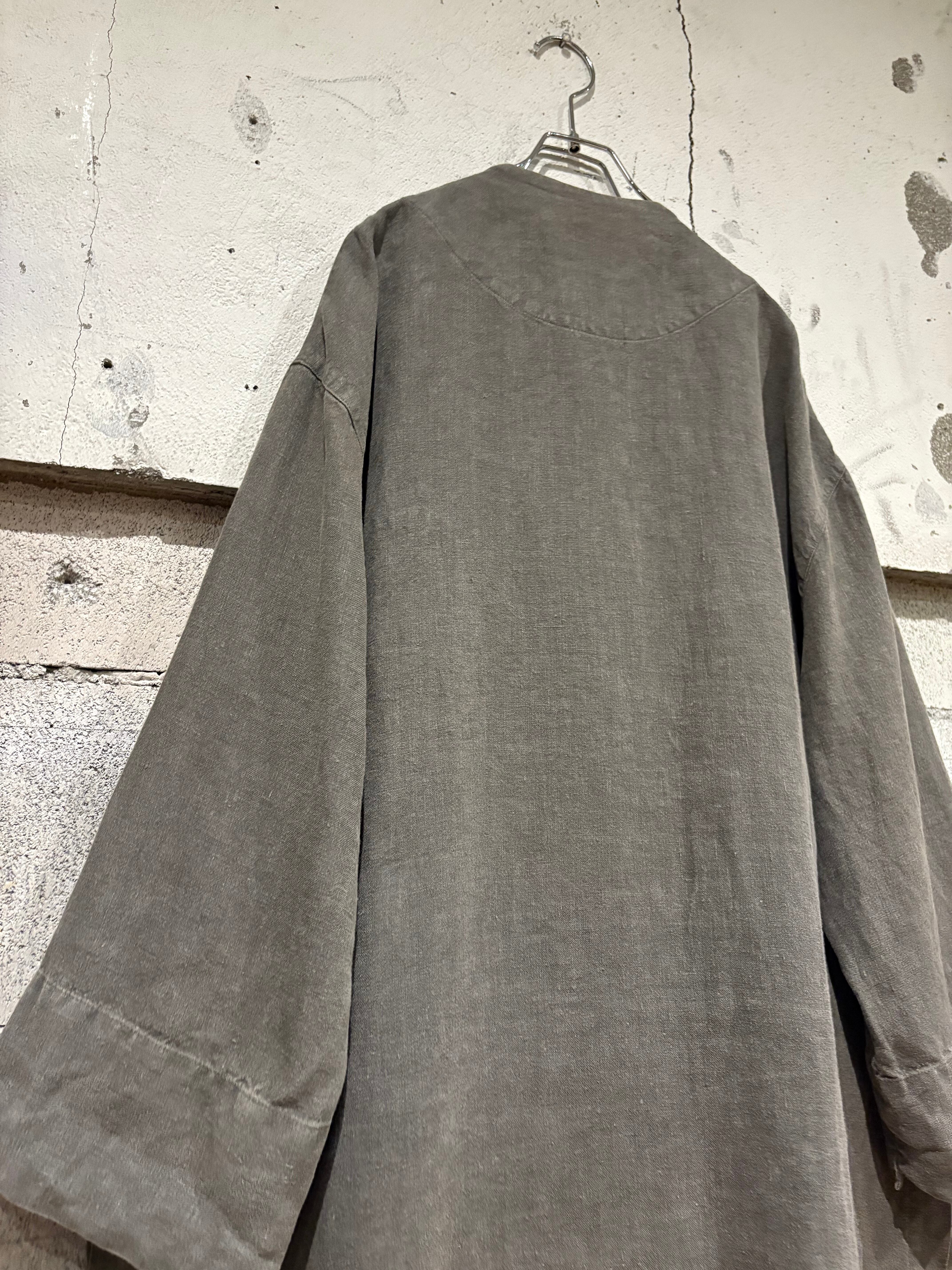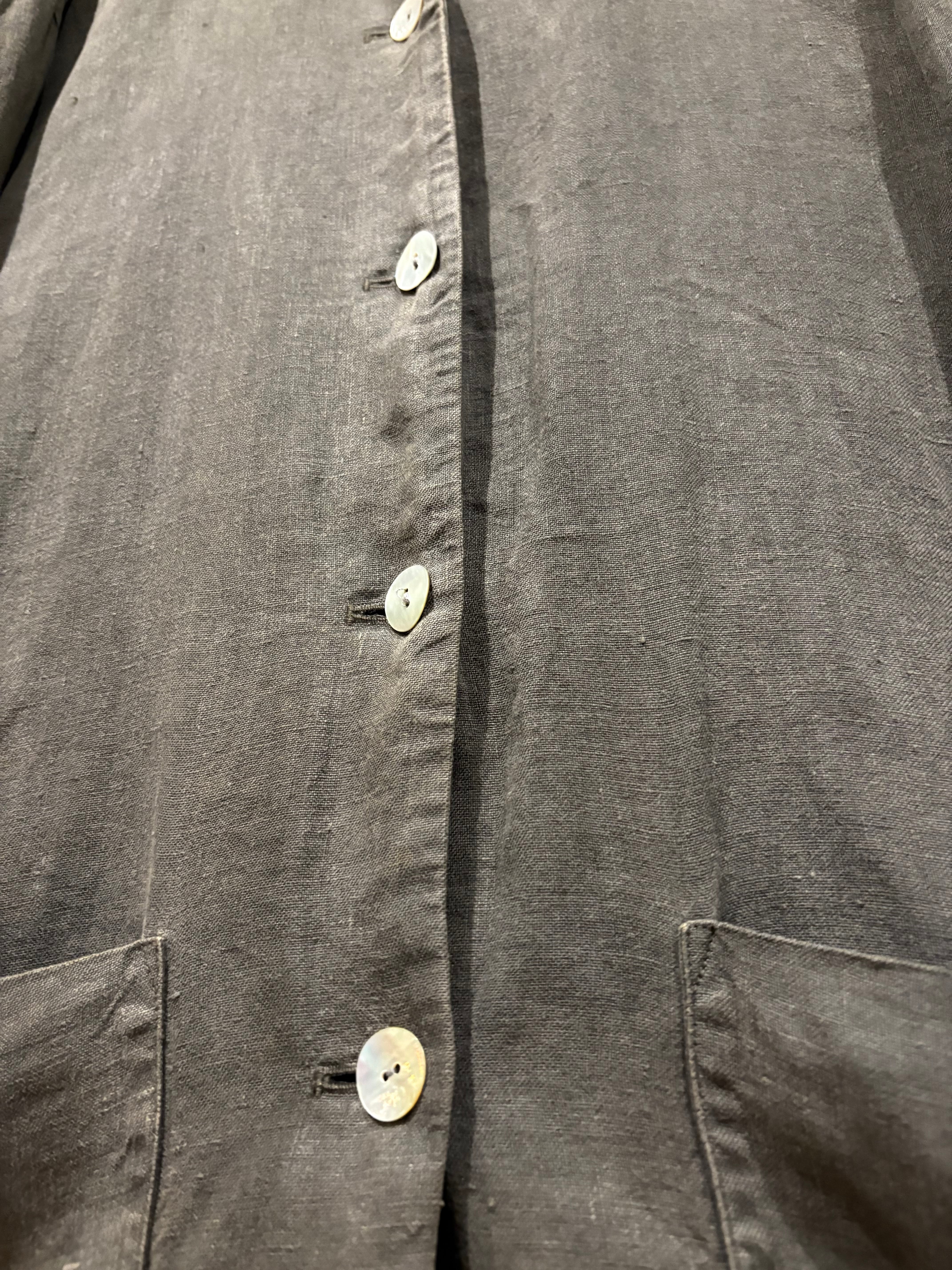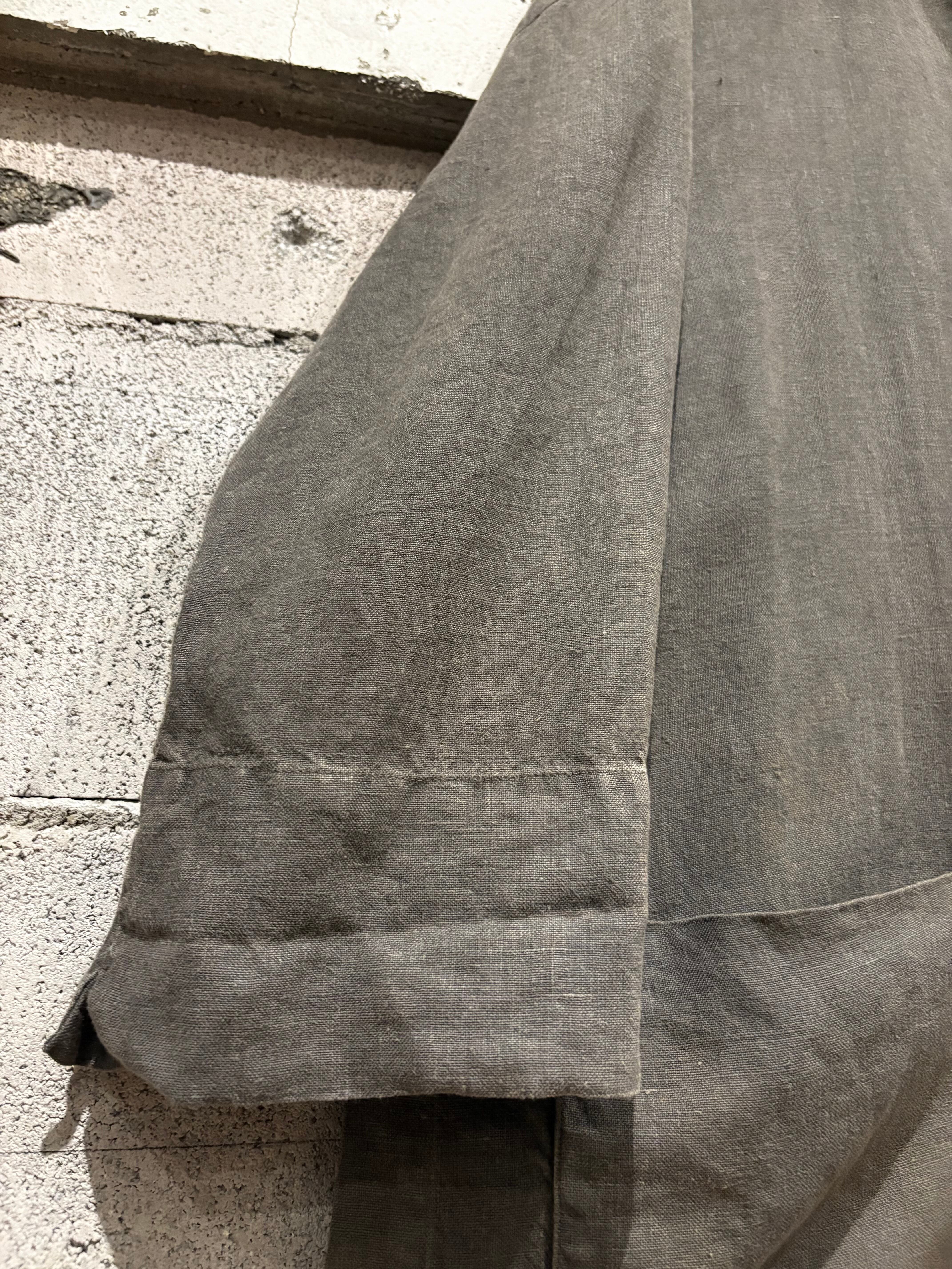 柔らかくコシのある上質なリネンを用いたボディが、経年変化によってフェードグレーに退廃したリネンジャケット。