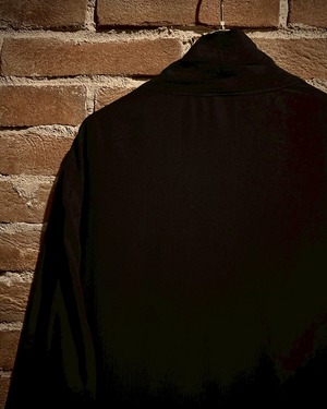 身幅、アームホールが広く採られており、かつボディにはレーヨンを用いているのでゆったりとしたサイズ感が、ドレープを生み出し、落ち感のあるシルエットも最高。深い陰影を生み、アイテムの雰囲気を底上げしてくれます。