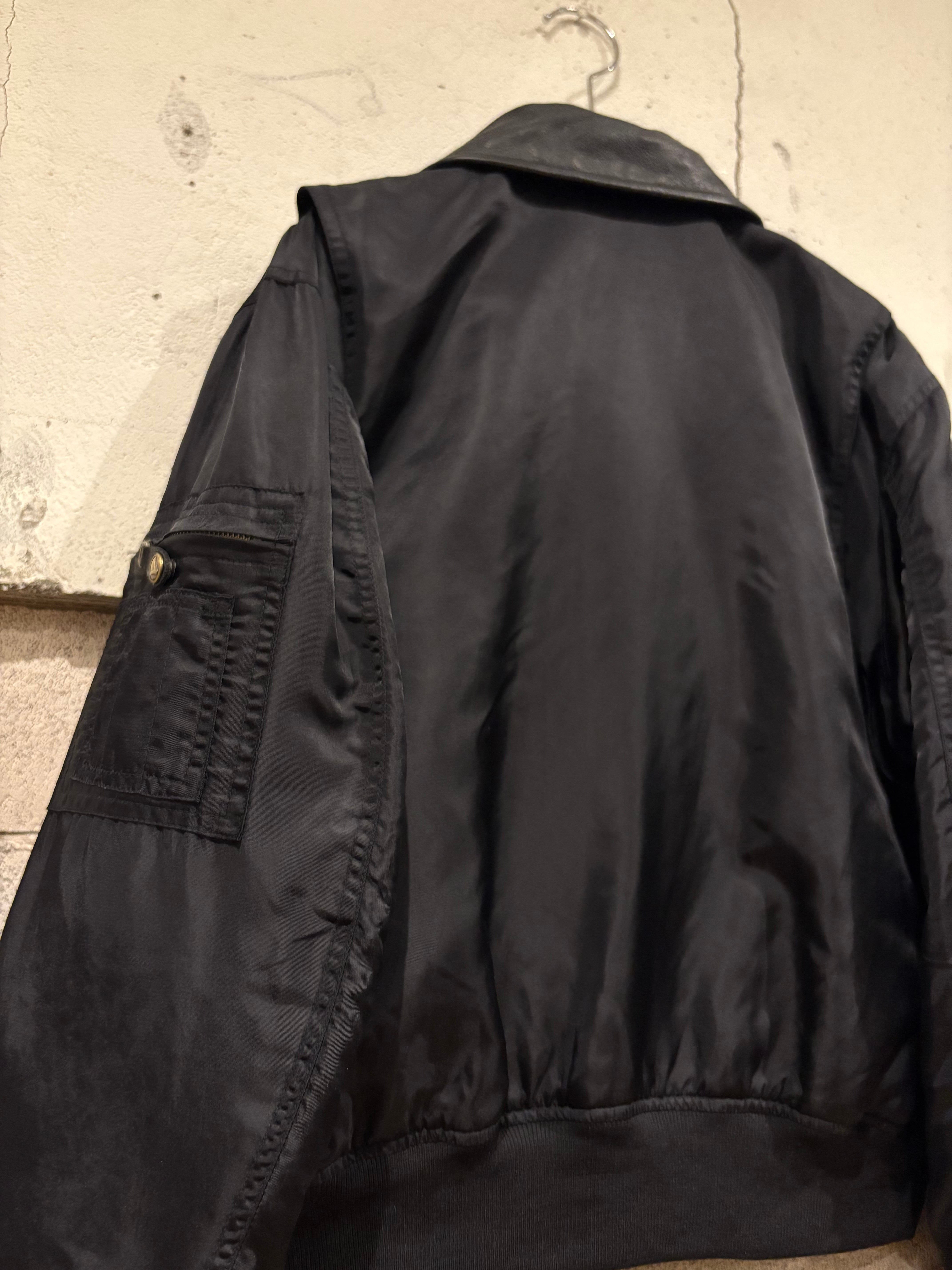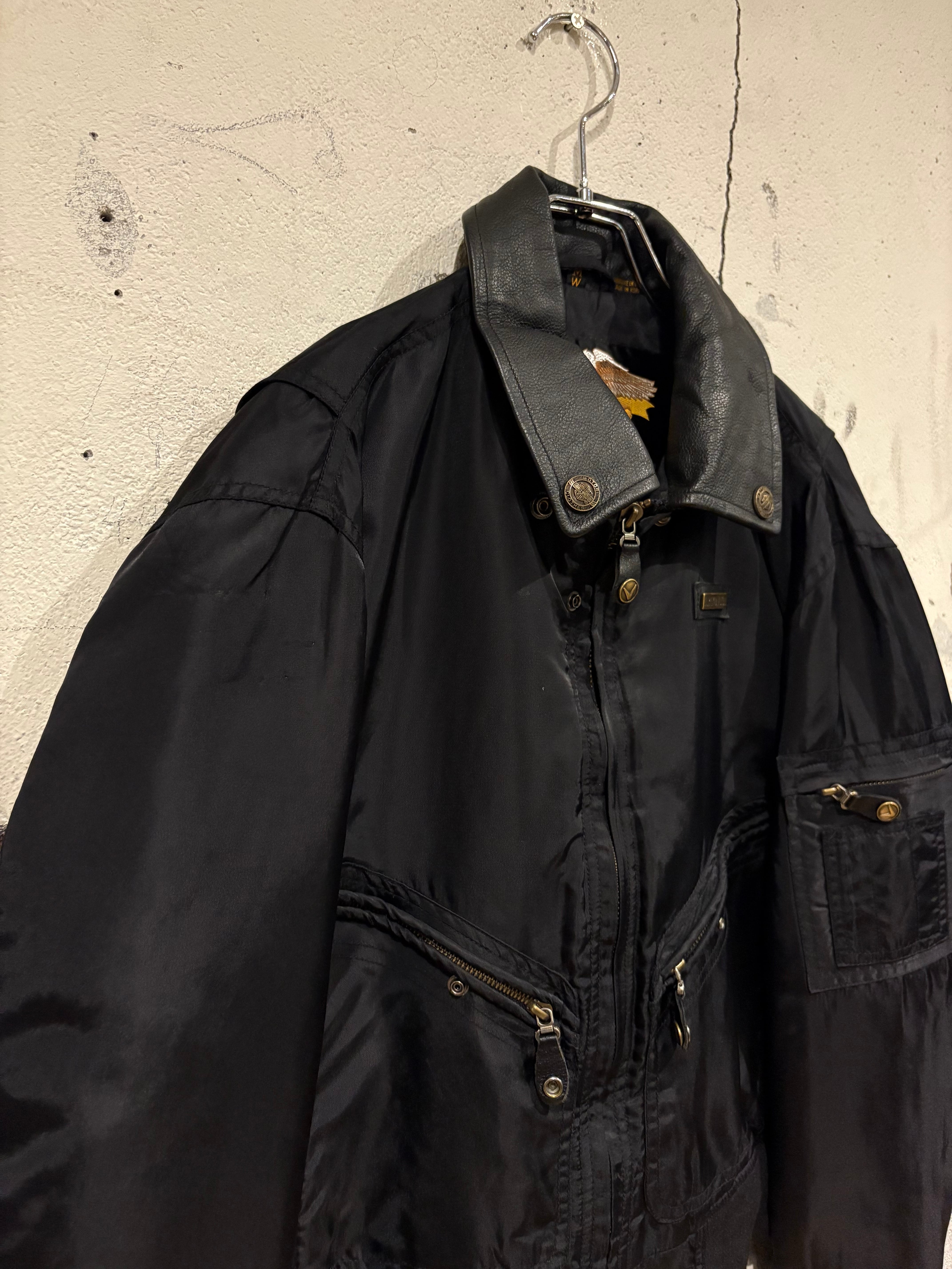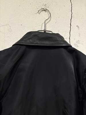 ハリとコシを持つタフな素材を用いたボディに、襟にレザーを切り替えたボンバージャケット。