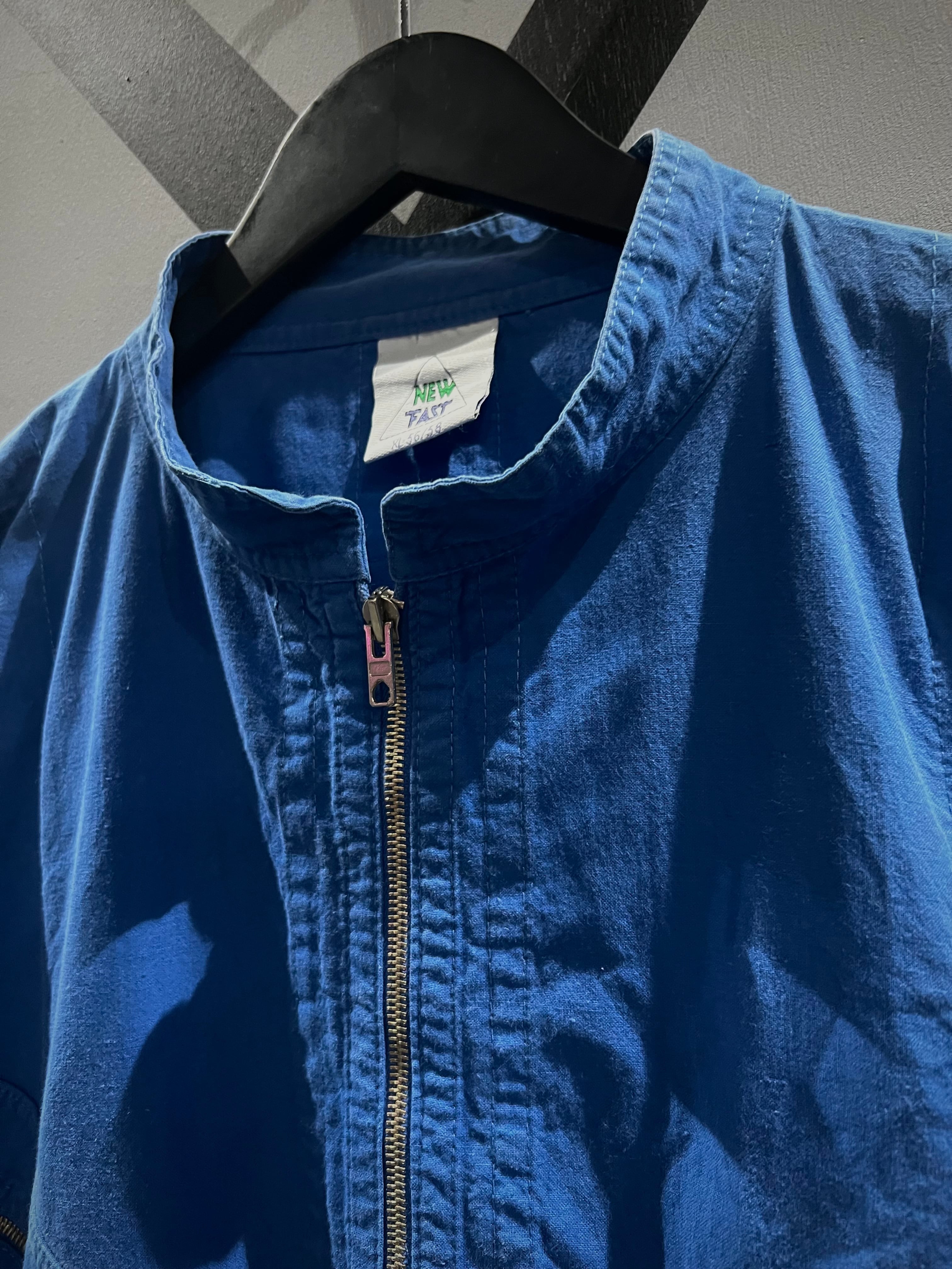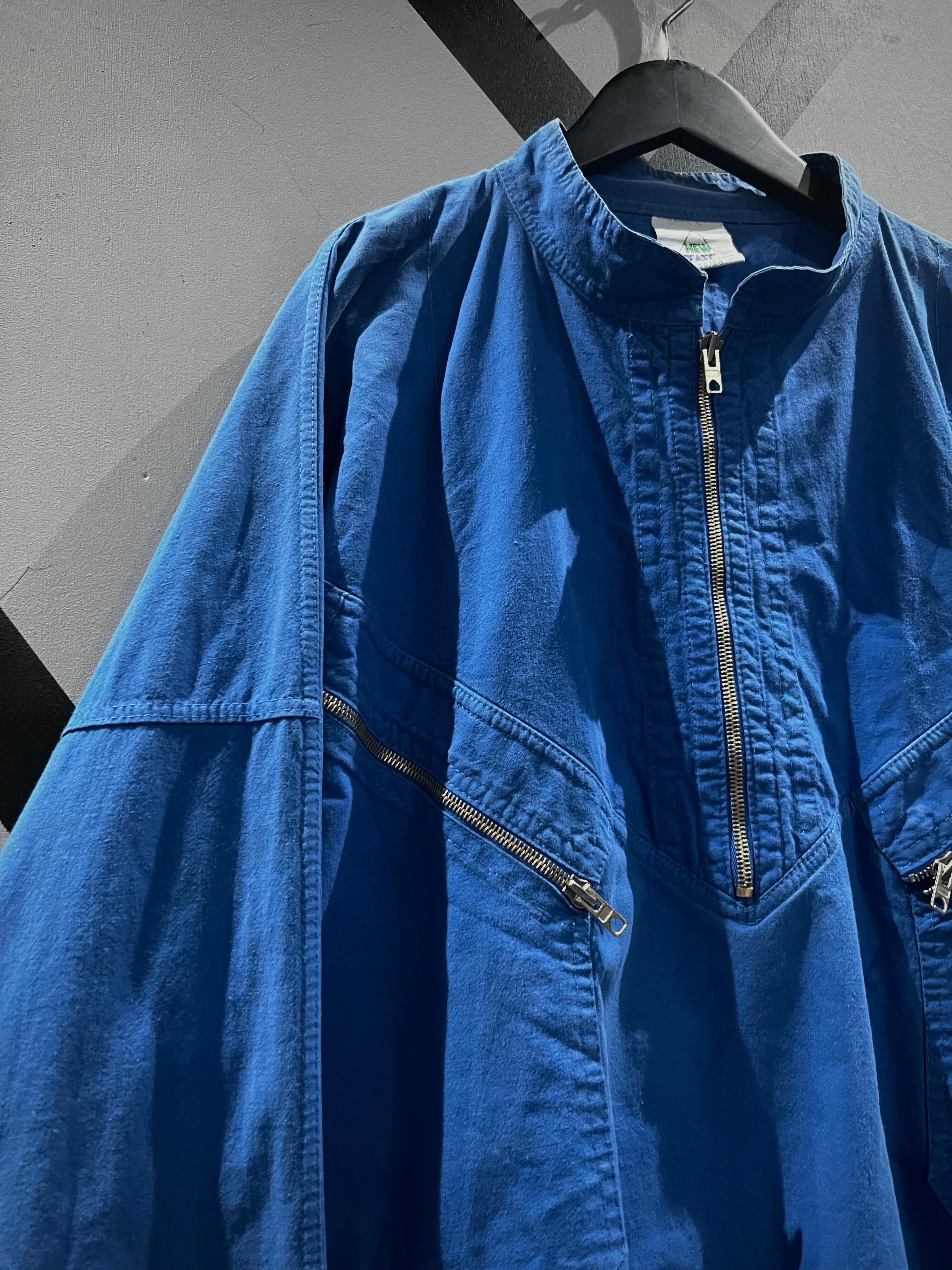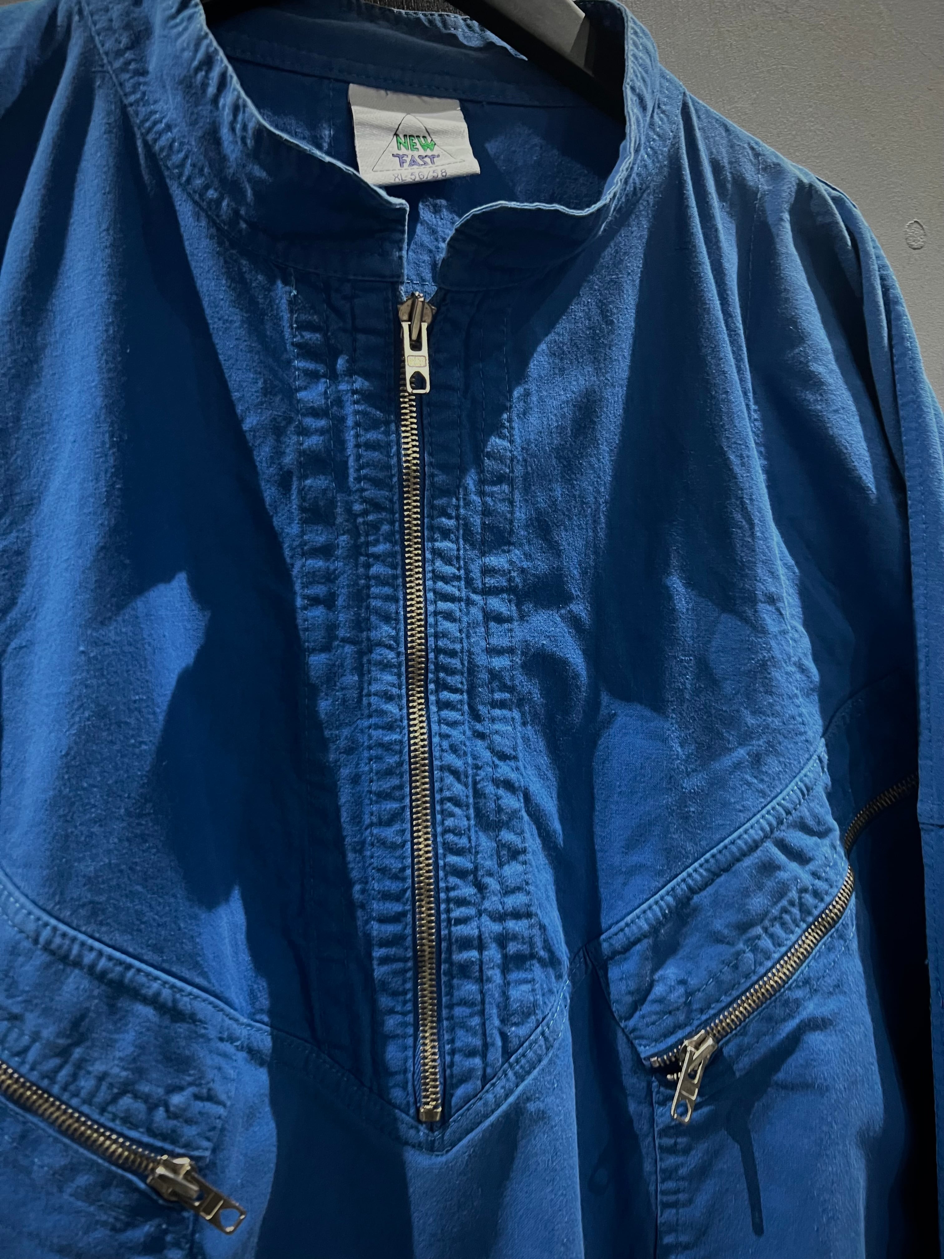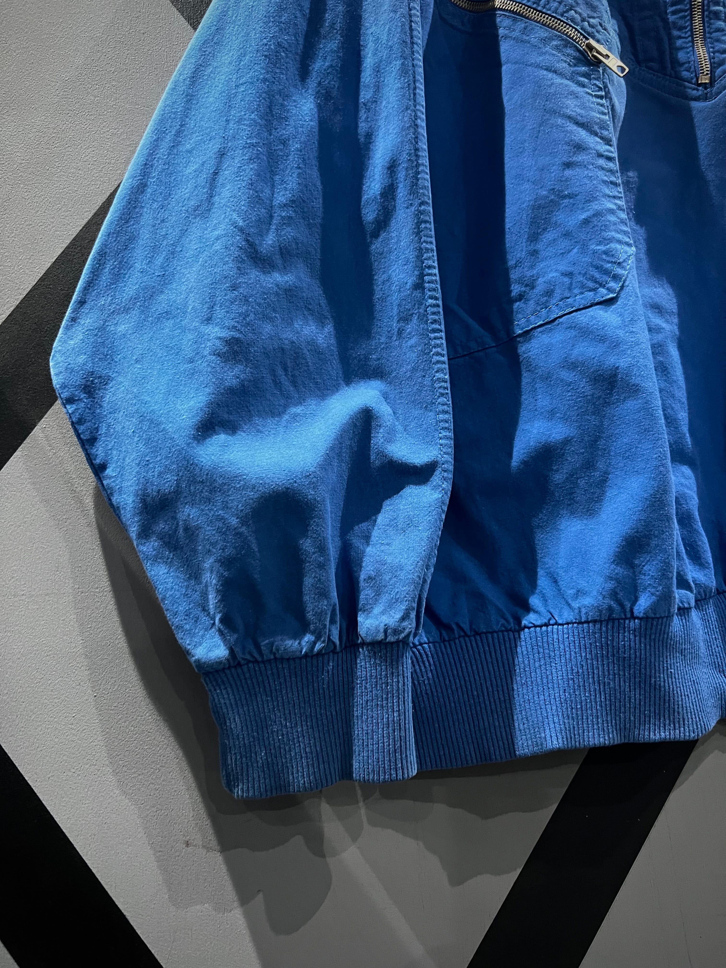 柔らかなコットンを用いた水色のボディに、ジップポケットのギミックを載せたプルオーバー。