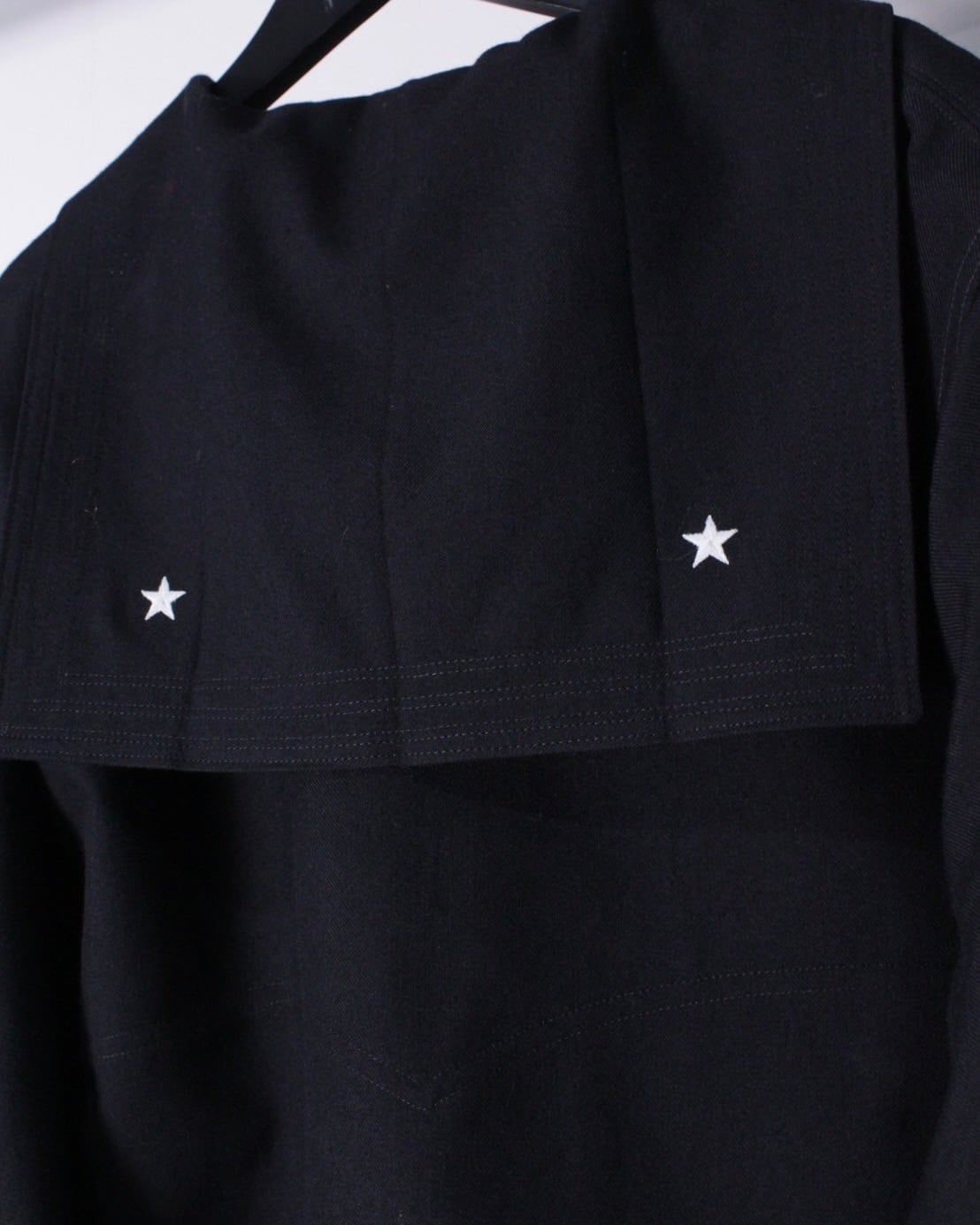 こちらはU.S NAVYのセーラー服。セーラー服特有の襟には3本線のストライプ、袖口にもストライプが施されたデザイン。背面には2つの星マークを刺繍で施したファッション的な抜け感も持ち合わせた1着。