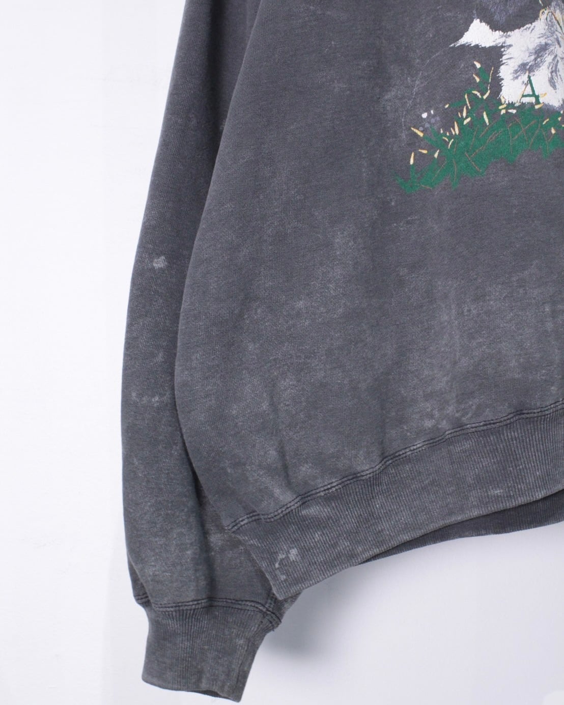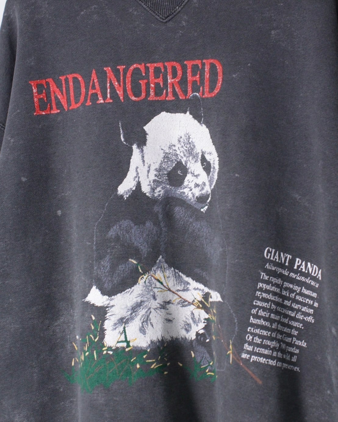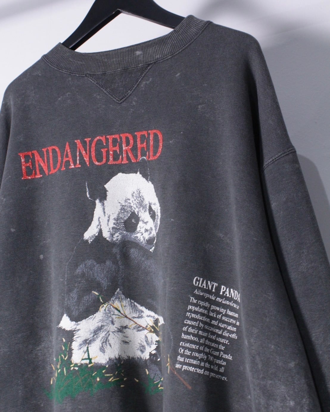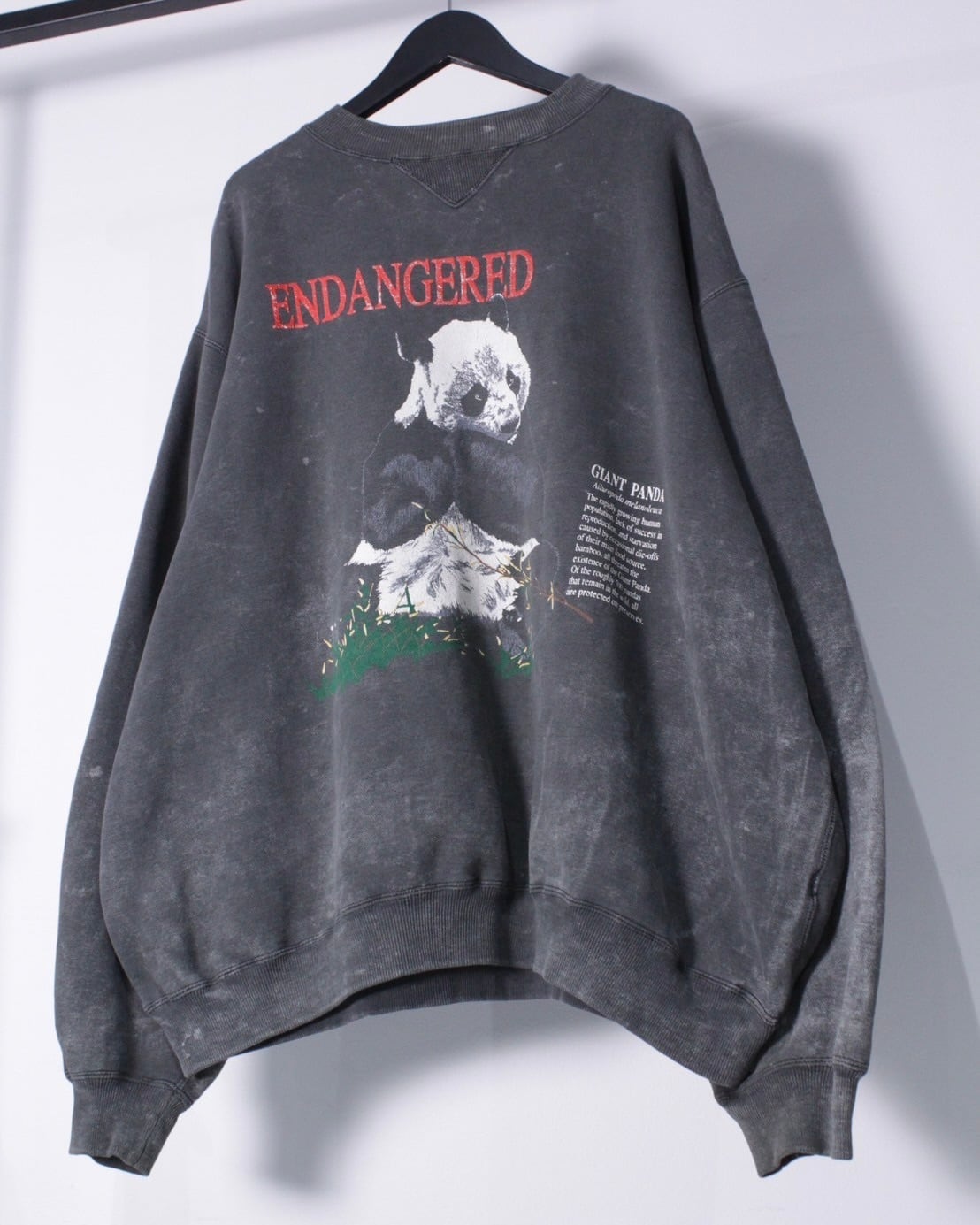肉感のあるフェードの効いたグレーのスウェットボディをベースに、リアルなタッチのジャイアントパンダをプリントしたスウェット。