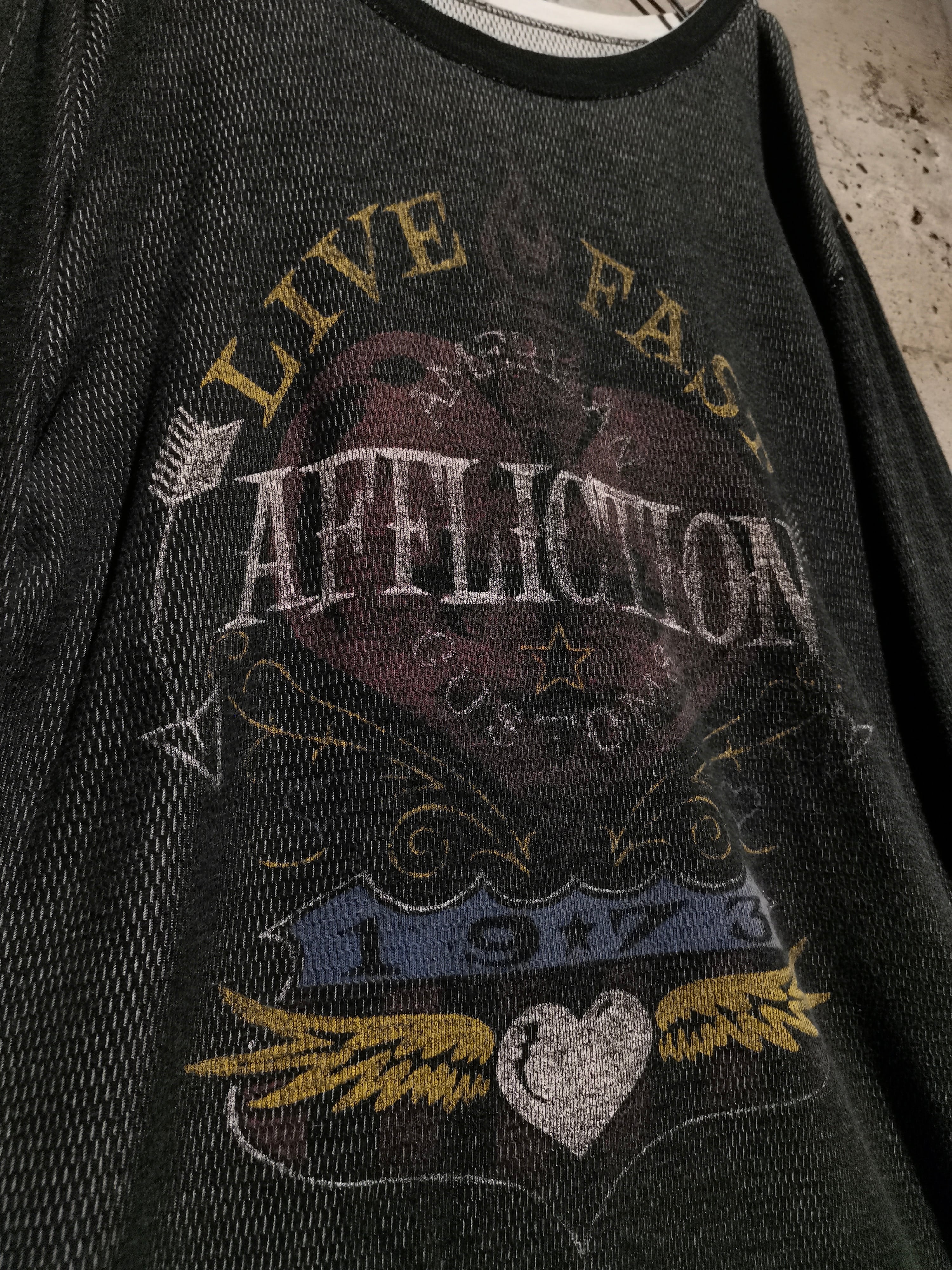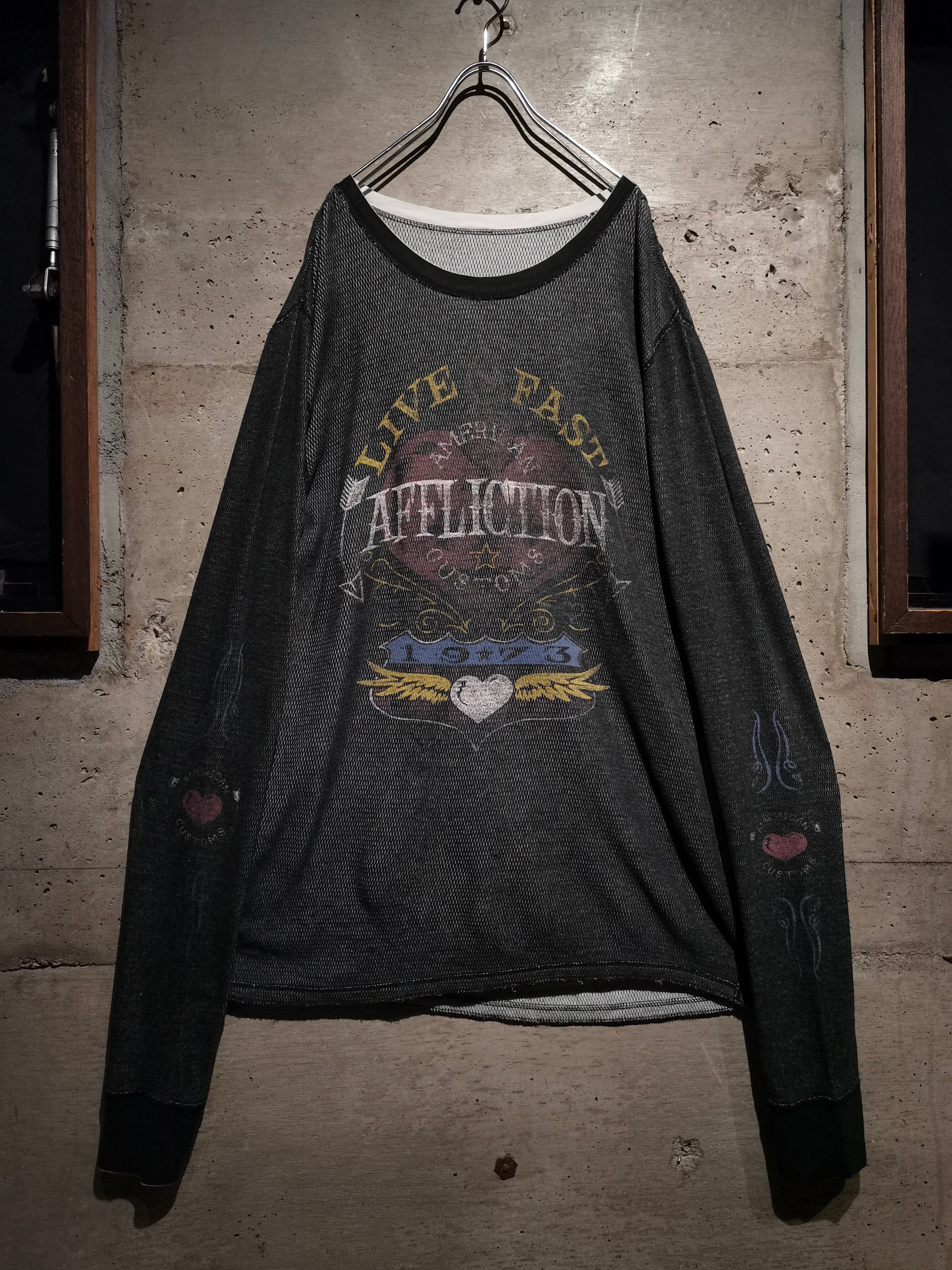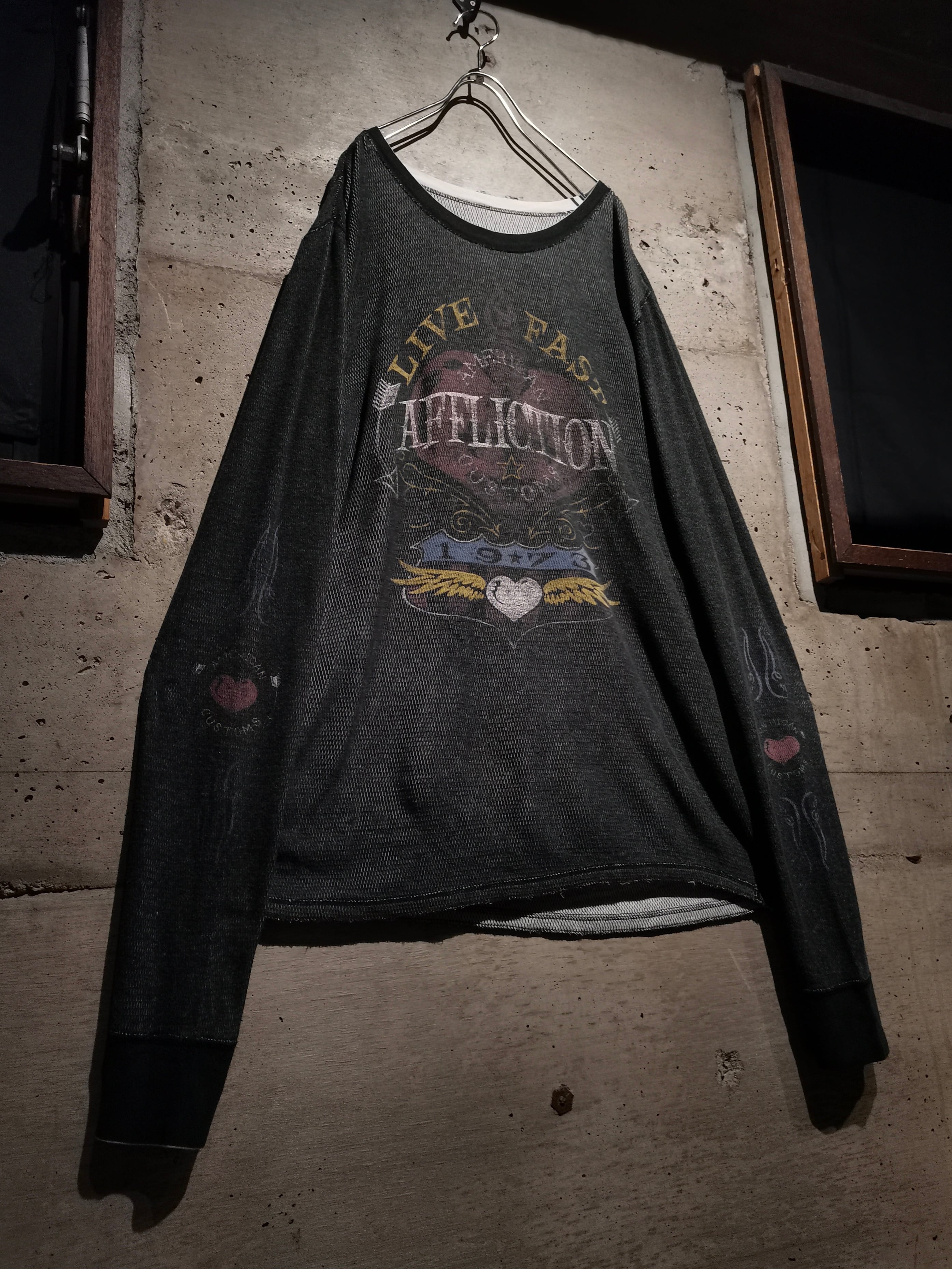 当店でも非常に気分で力を入れて店頭でも展開中のこの手のジャンル。"Affliction"のスペシャルかつ稀有なリバーシブル仕様のサーマルロンTです。