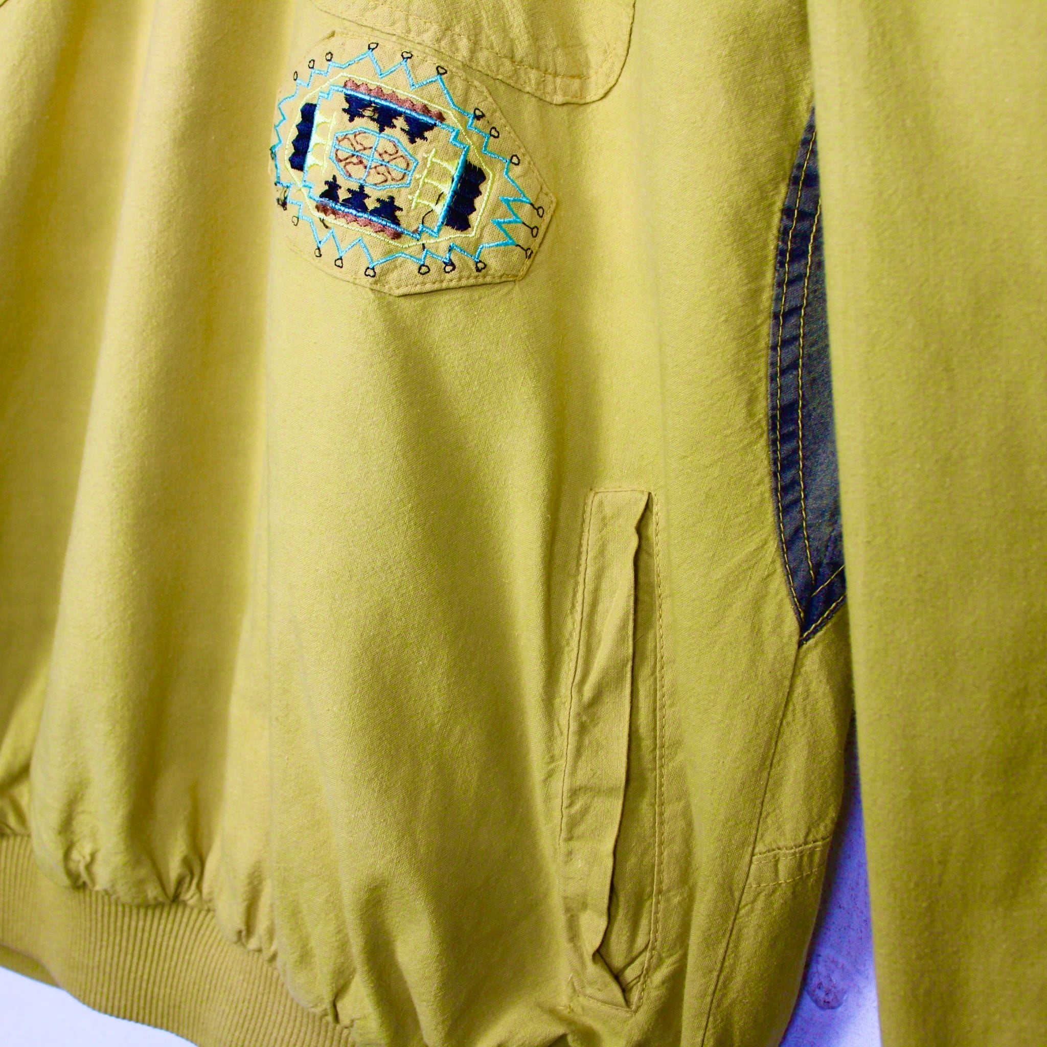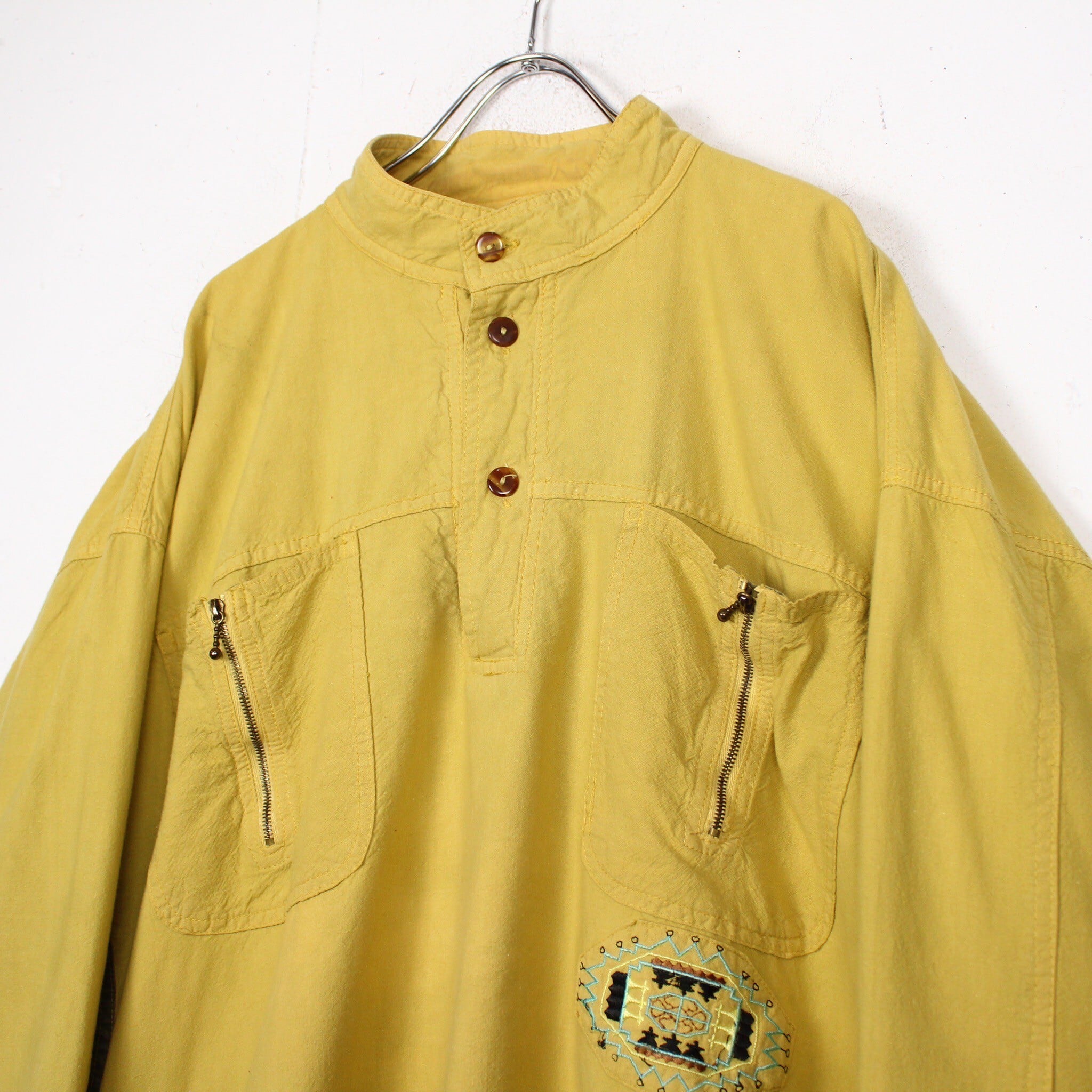 サラッと肌触りの良いコットン素材を用いた黄色のボディに、両胸にはジップが備わったパッチポケット、左腹部にはエスニックなパッチが施されたプルオーバーシャツ。