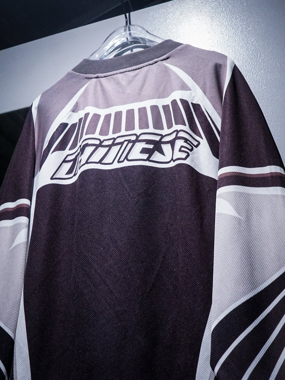 ボディ全体に曲線的なデザインを載せ、フロント中央にブランドロゴを配したレーシングロンT。