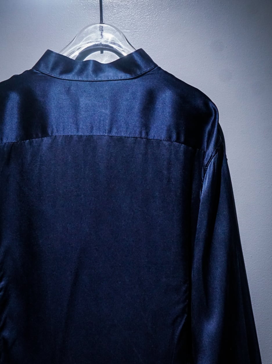 鈍い光沢を帯びた"極上"のシルク素材をボディに用いたマオカラーシャツ。