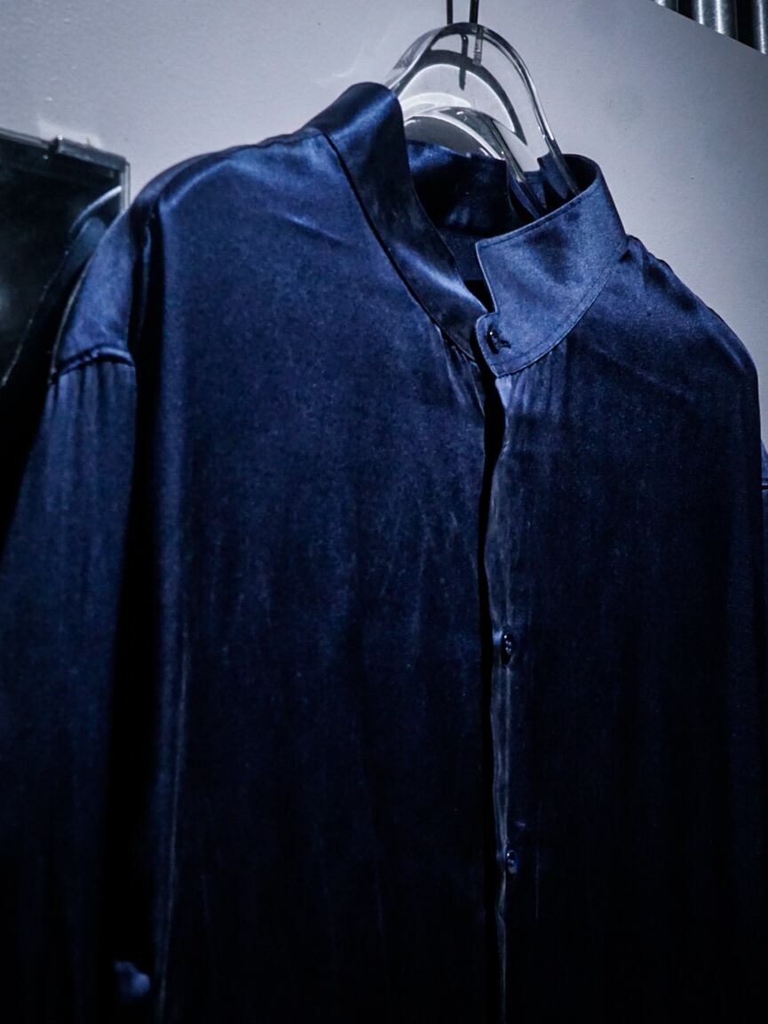無駄を削ぎ落としたミニマルなデザインに極上シルクの掛け合わせに、首周りのマオカラーの仕様が全体の雰囲気を更に底上げ。