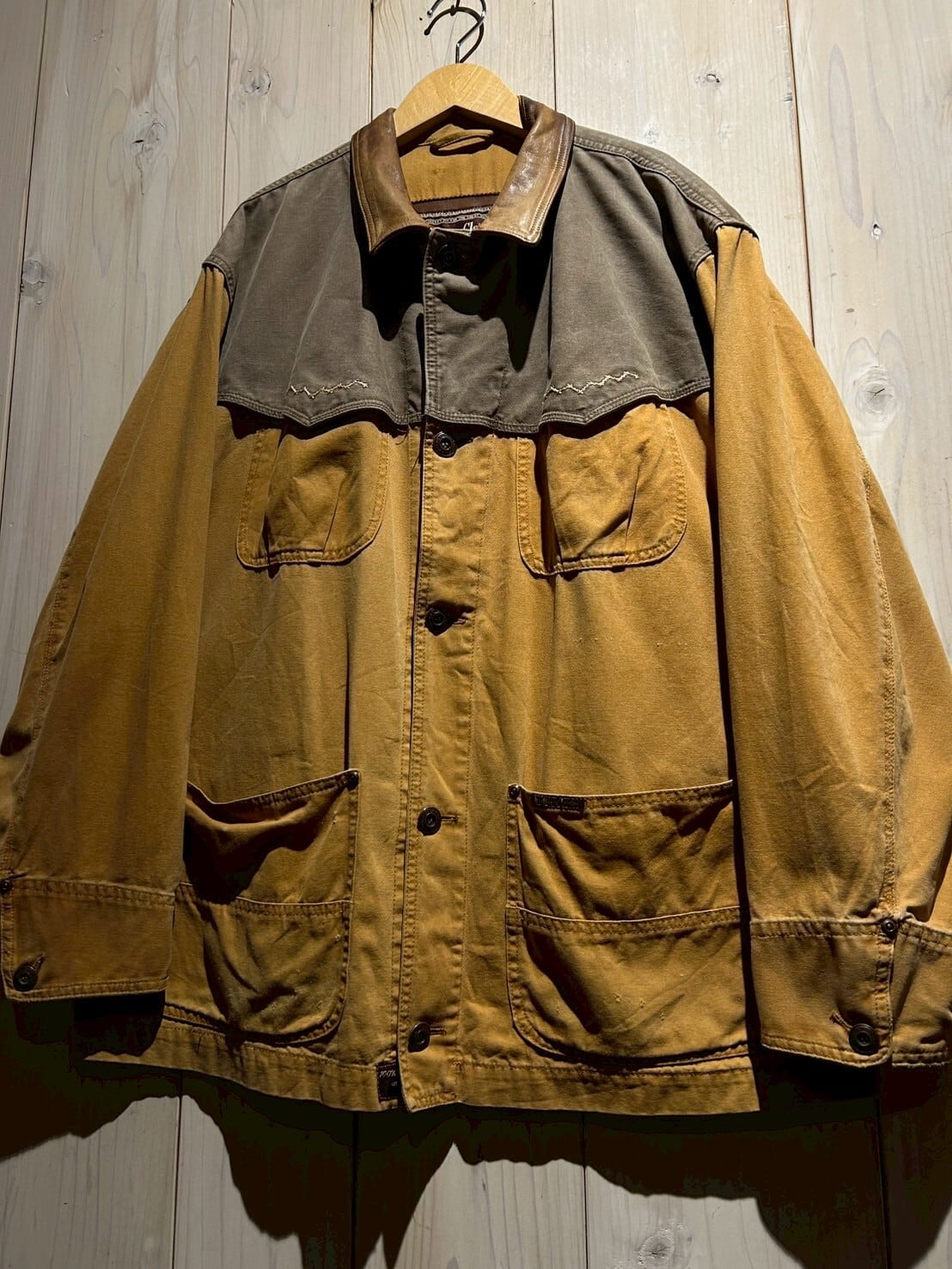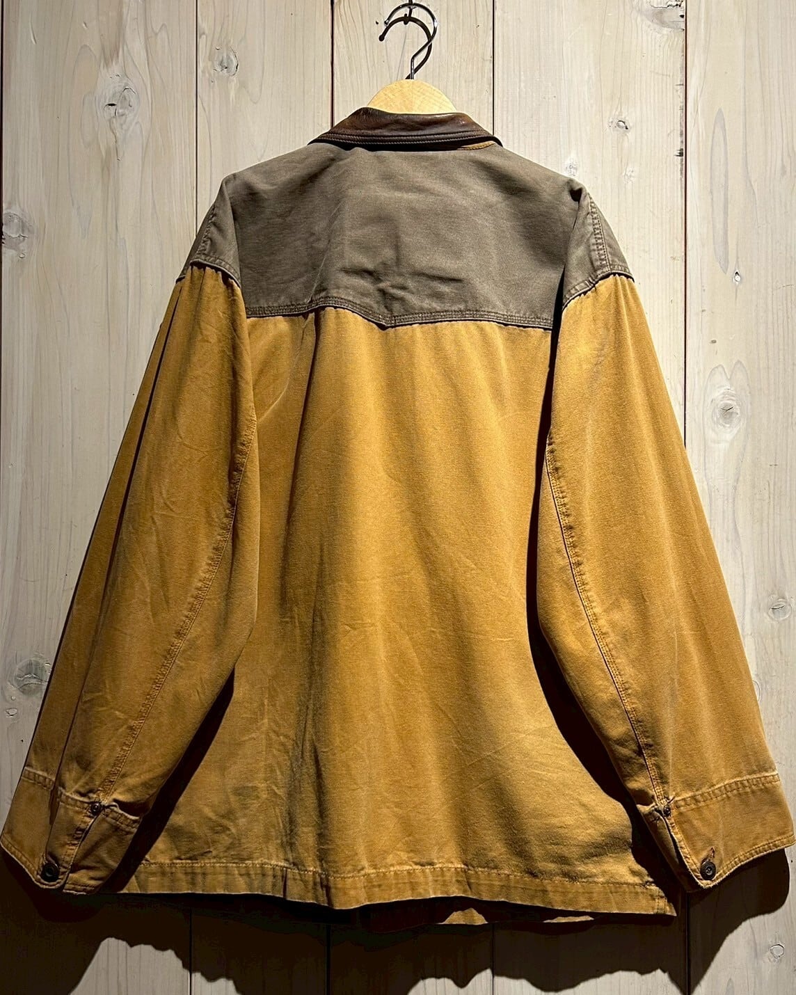 サラッとした柔らかく、しなやかなマスタードイエローのコットン素材のボディに、ヨーク部分にはブラウンの素材を切り替えたジャケット。