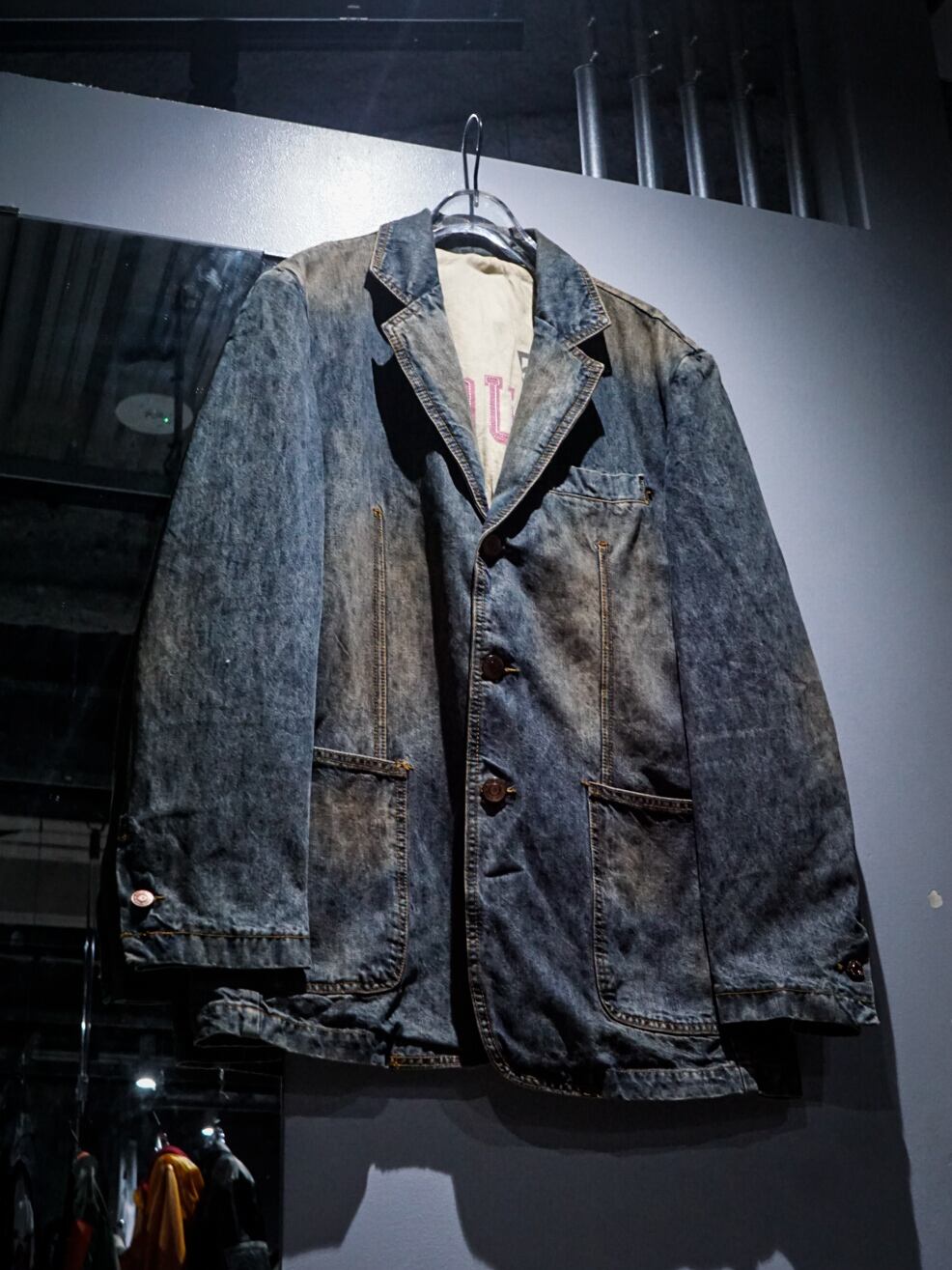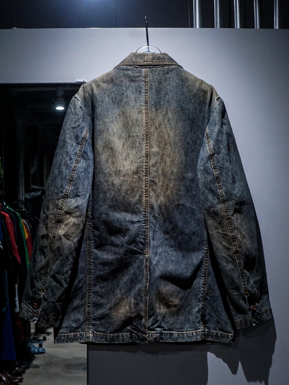 テーラードジャケットでは定番且つ王道のシングルブレストをベースに、程よくフェード加工を施したデニム素材がフォーマルでありながら、カジュアルな雰囲気を放つ絶妙なバランス感が素晴らしい、、、