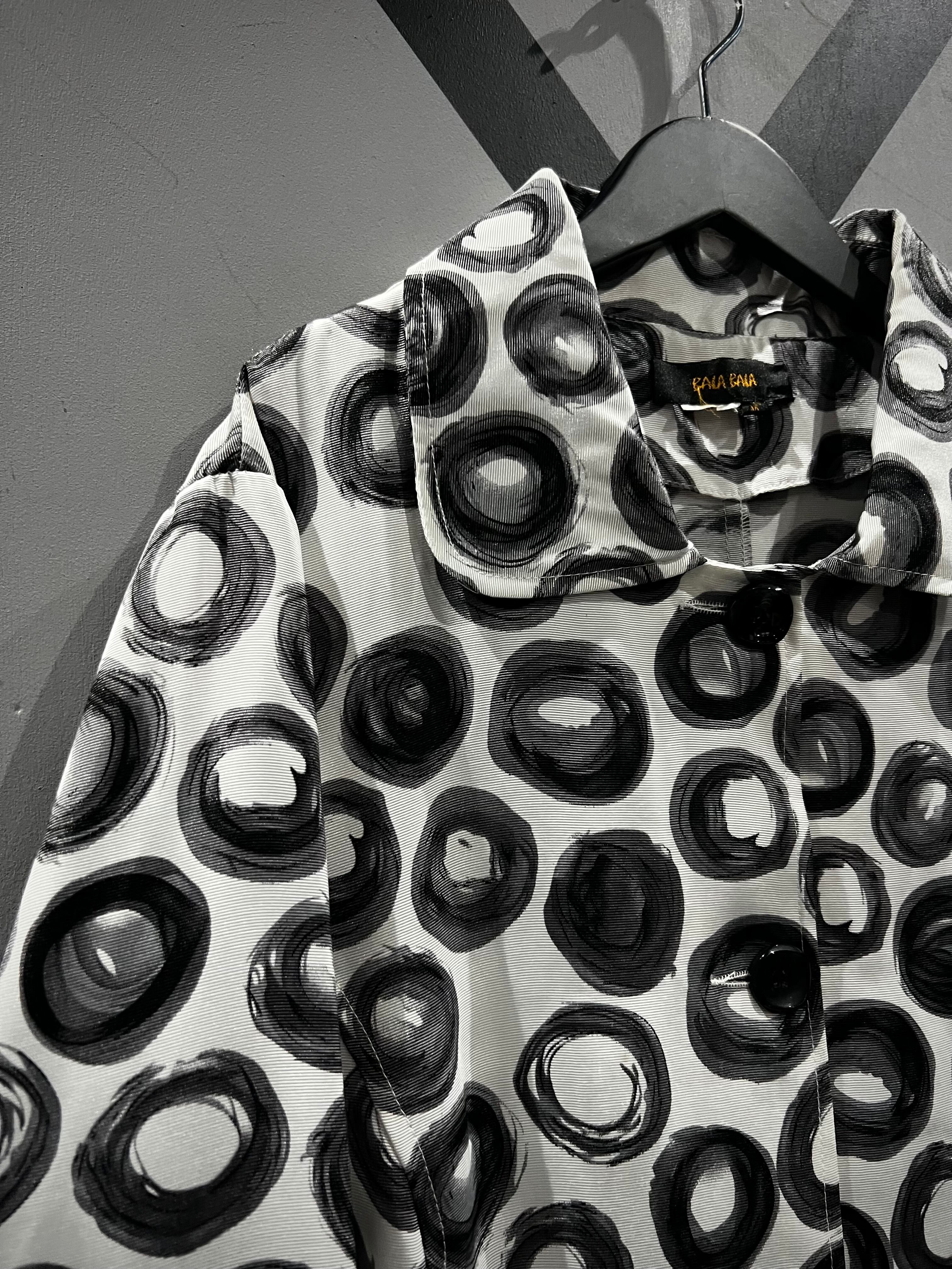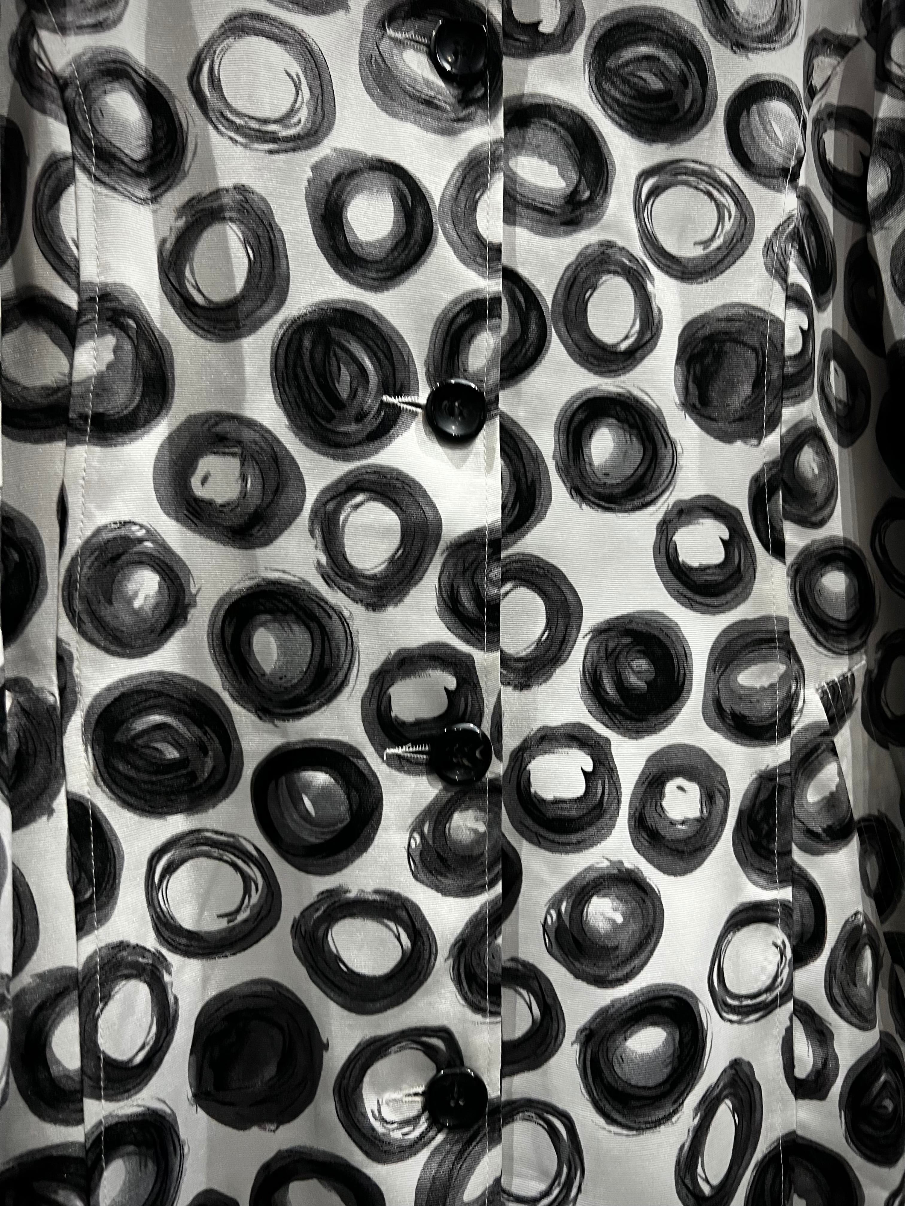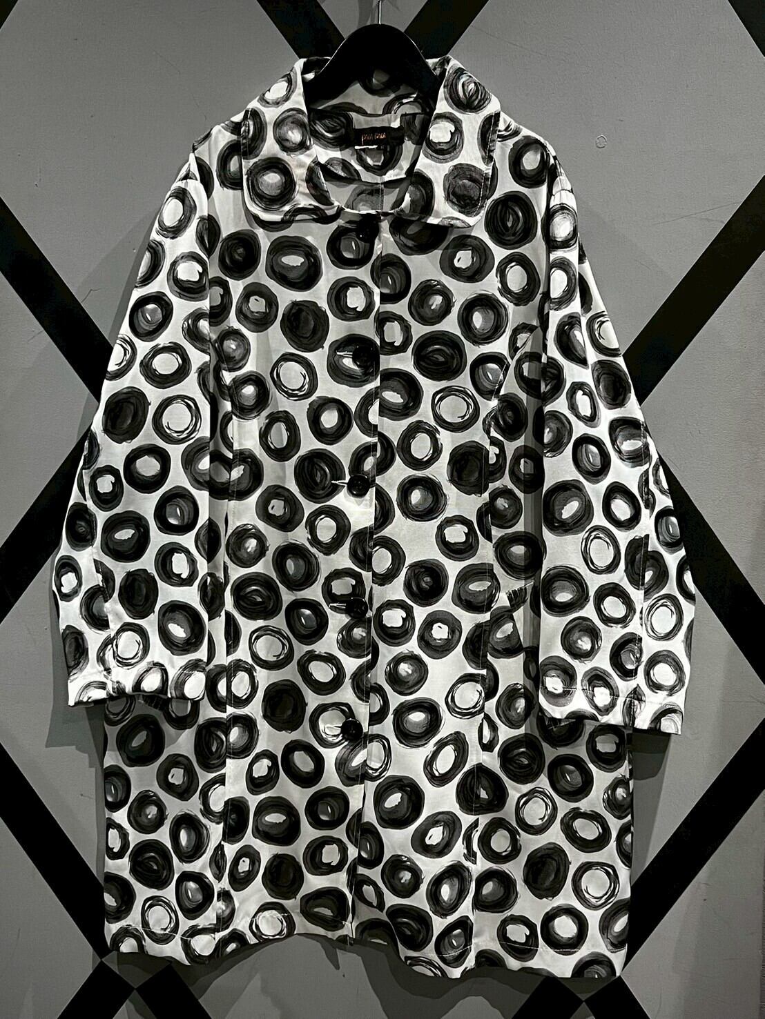 ホワイトのボディをベースに、手書き調のドットを全体的に載せたハーフコート。