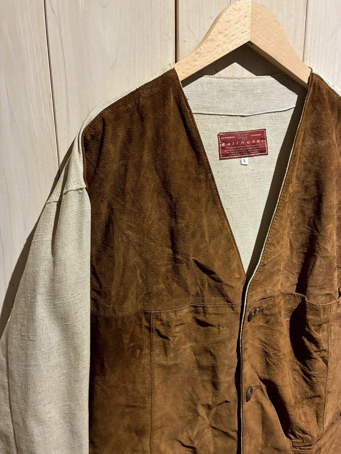 起毛感のあるスエードレザーが素材間のコントラストを際立たせており、異素材の切り替えモノでもかなり古着好きの皆様に刺さるのではないでしょうか。