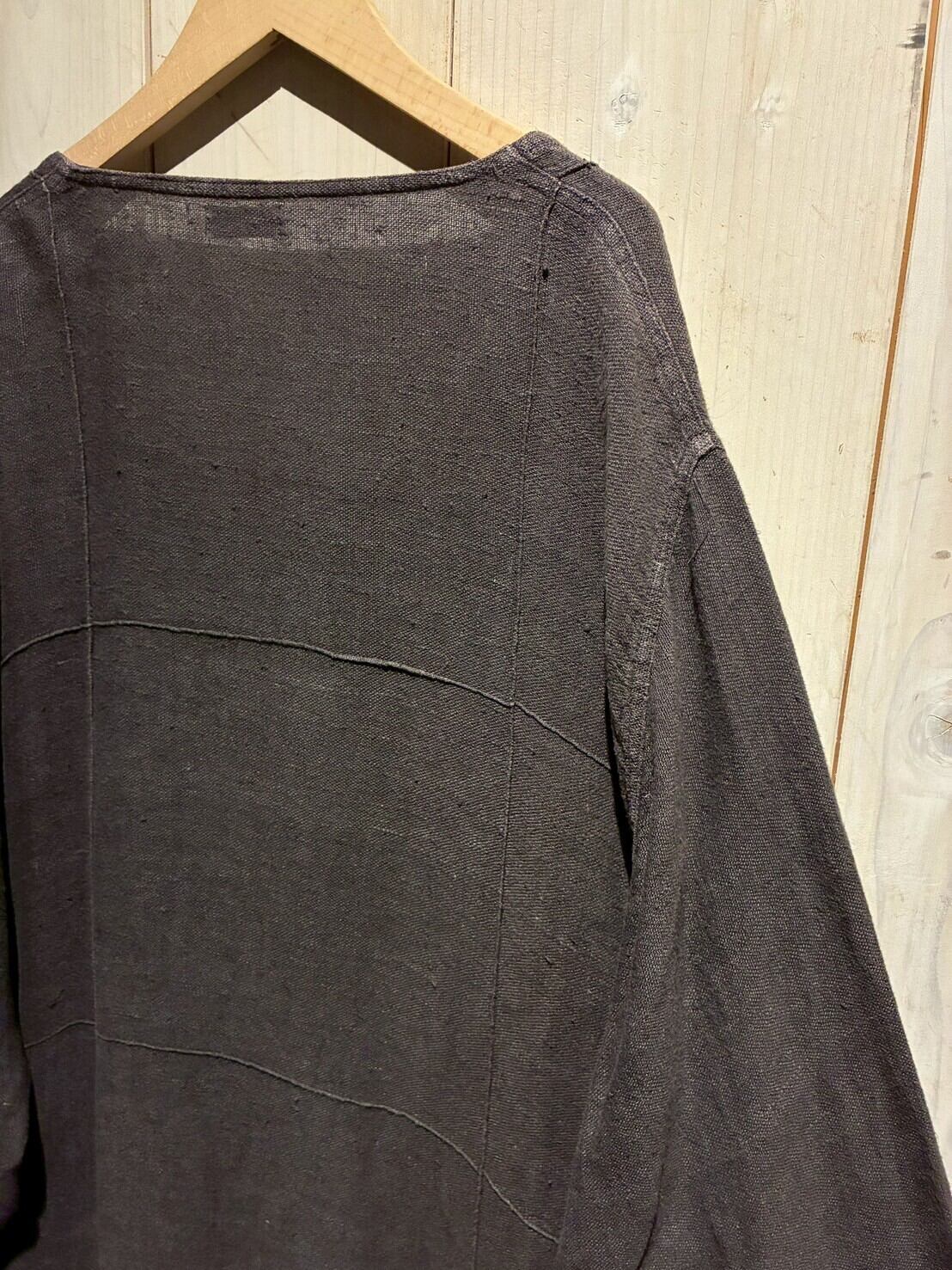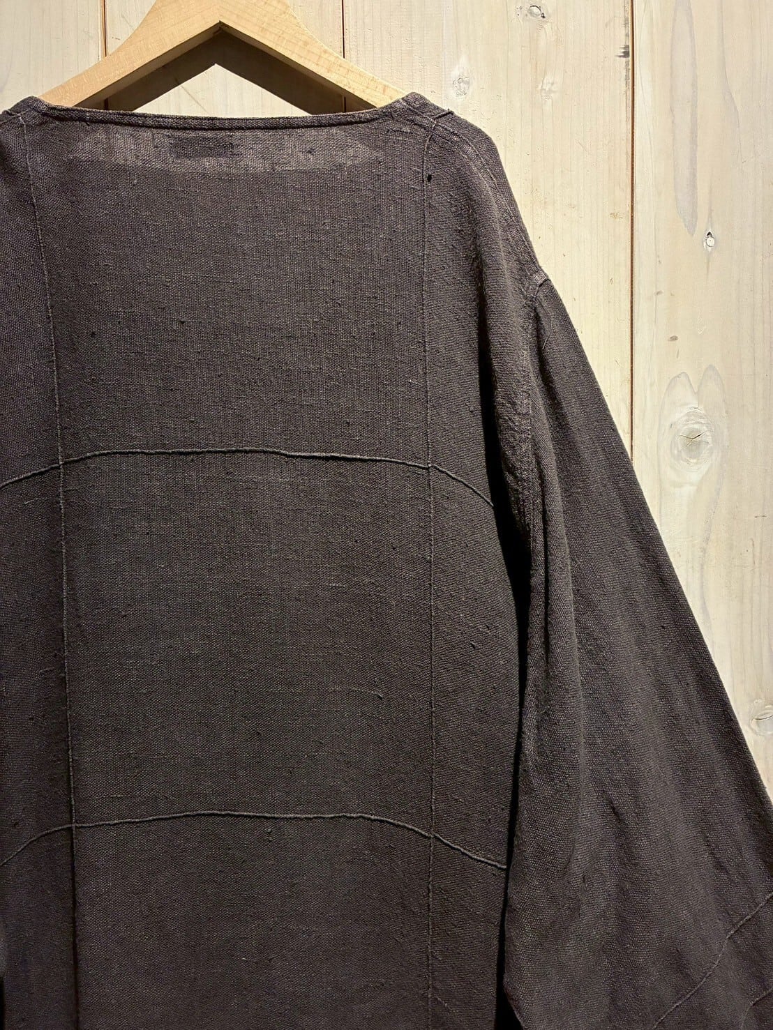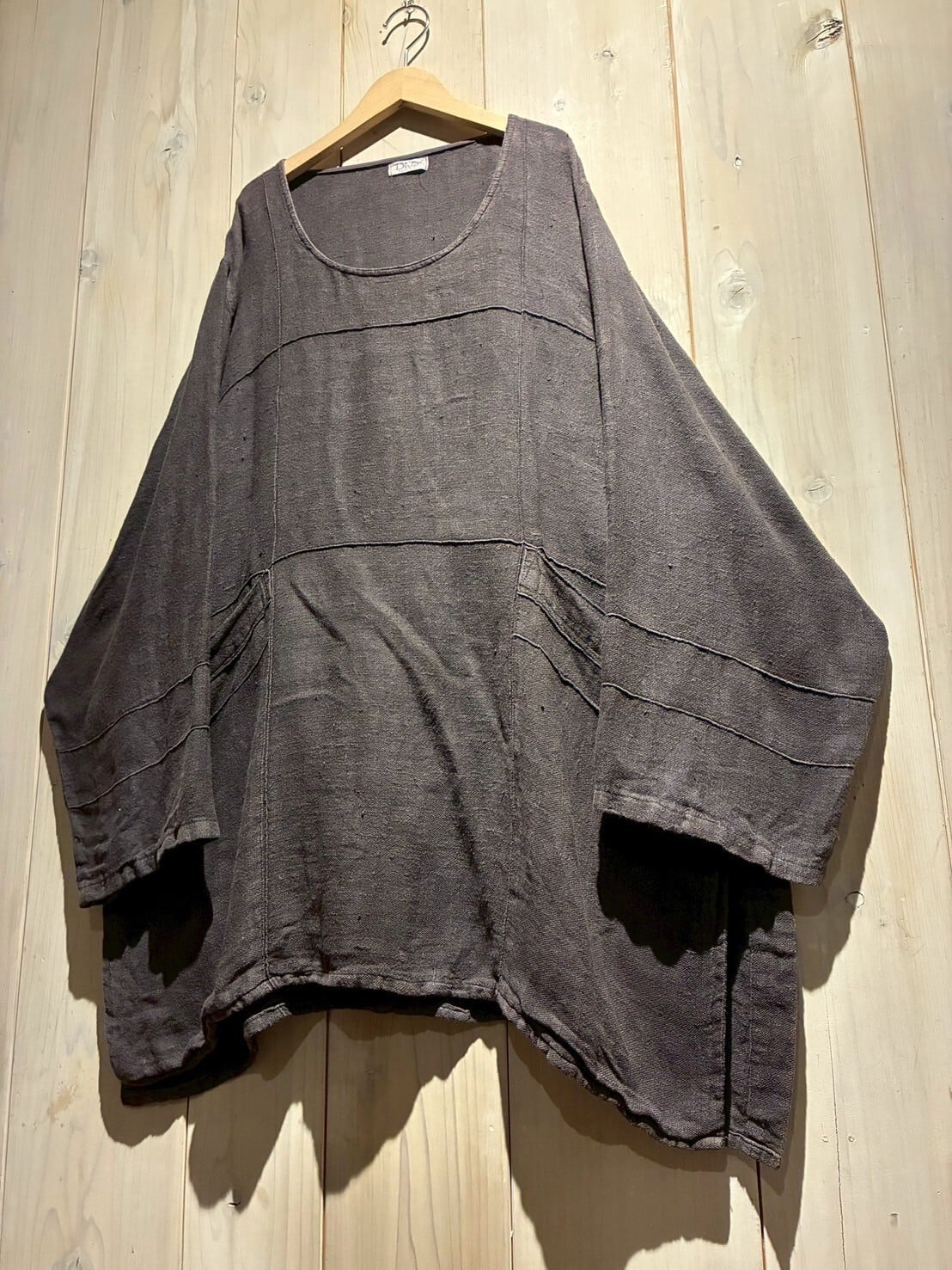 柔らかなリネン素材、肩の落ちるルーズなサイジングで生まれゆくドレープが着用時の満足度をグッと底上げ。すっぽりと被るプルオーバー型で、一枚着としてはもちろん、シャツやロンTとのレイヤードもオススメです◎
