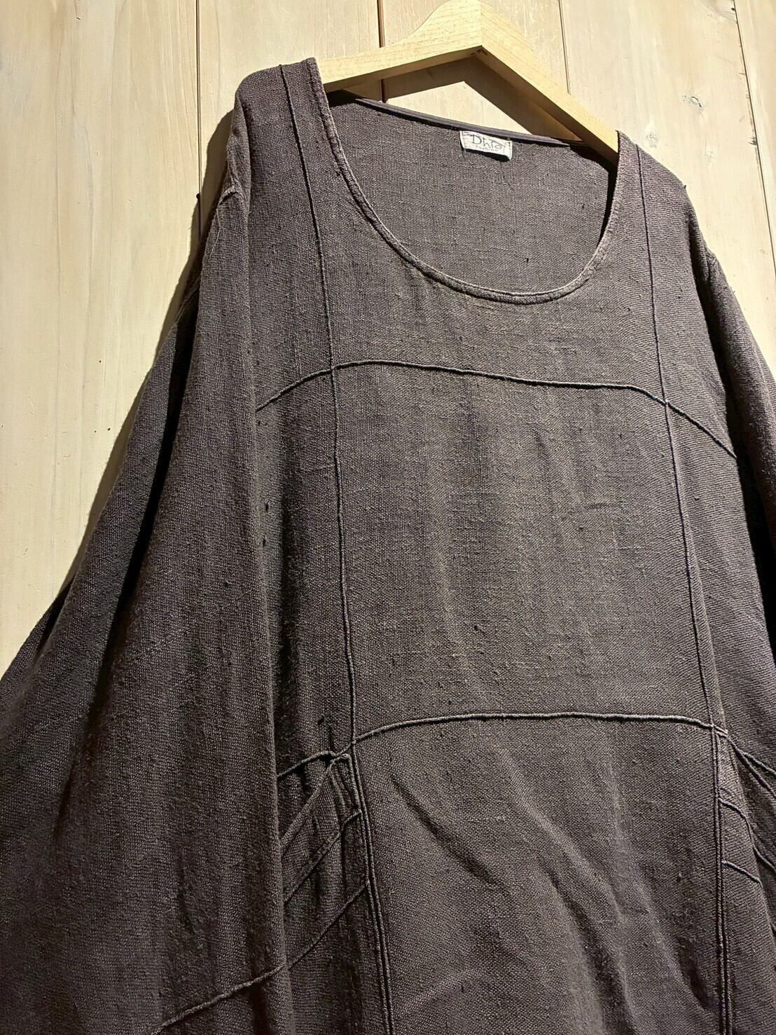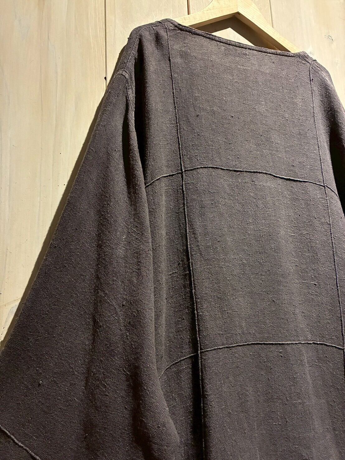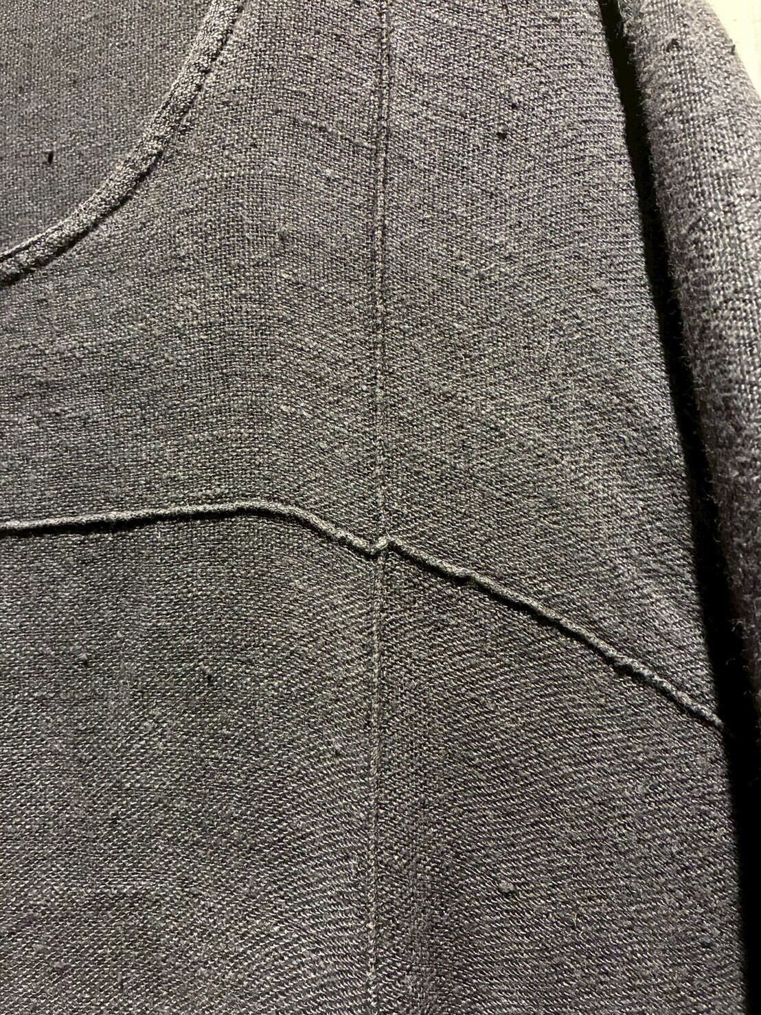 柔らかなリネン素材、肩の落ちるルーズなサイジングで生まれゆくドレープが着用時の満足度をグッと底上げ。すっぽりと被るプルオーバー型で、一枚着としてはもちろん、シャツやロンTとのレイヤードもオススメです◎