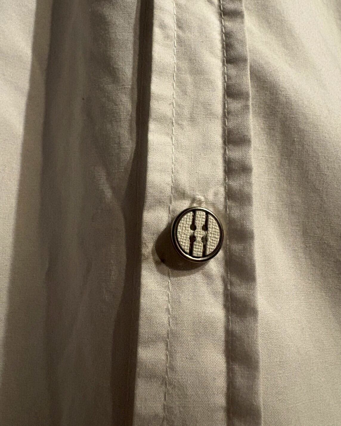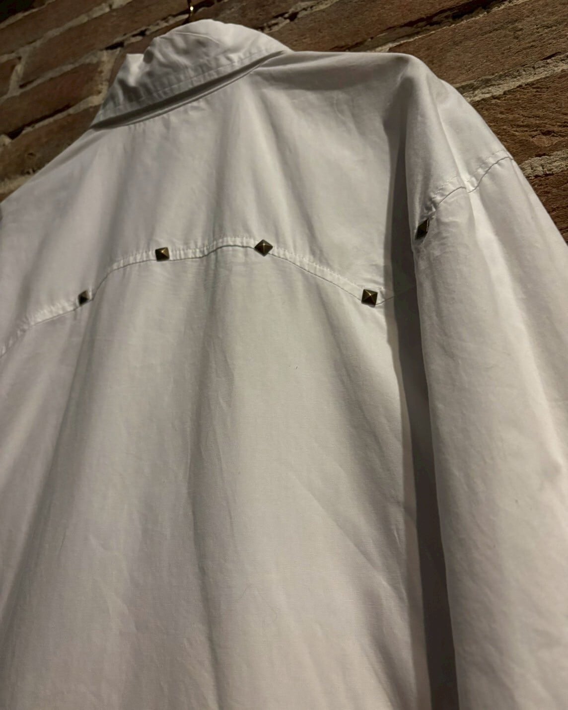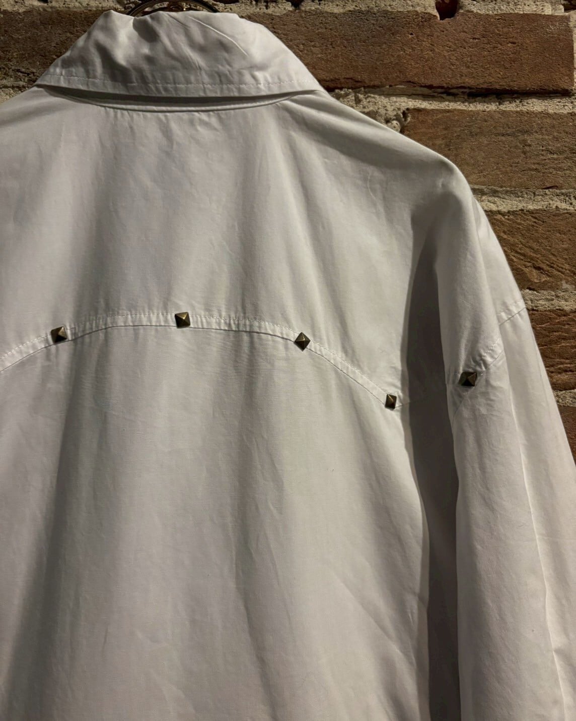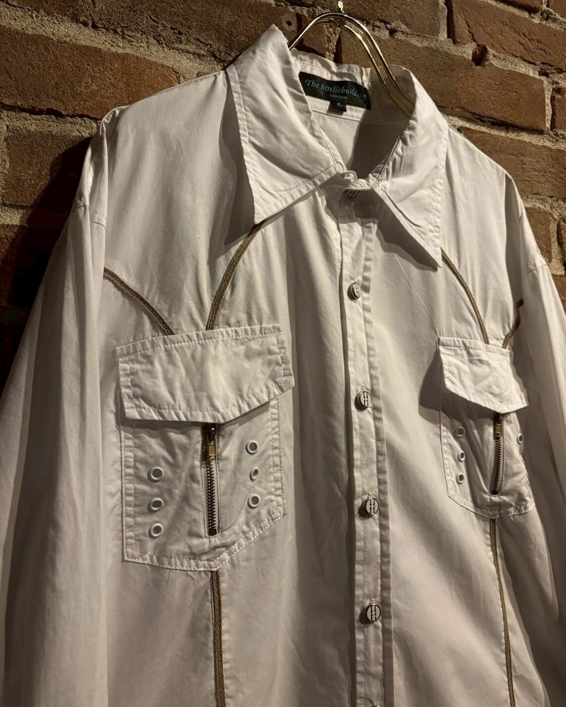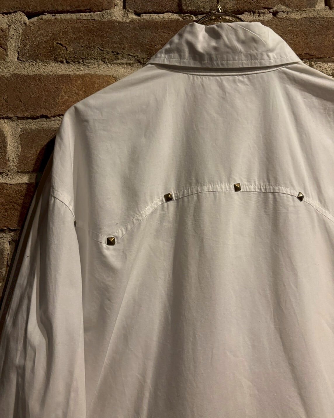 ホワイトのボディをベースに、フロントにウエスタン風にテープを走らせた長袖シャツ。