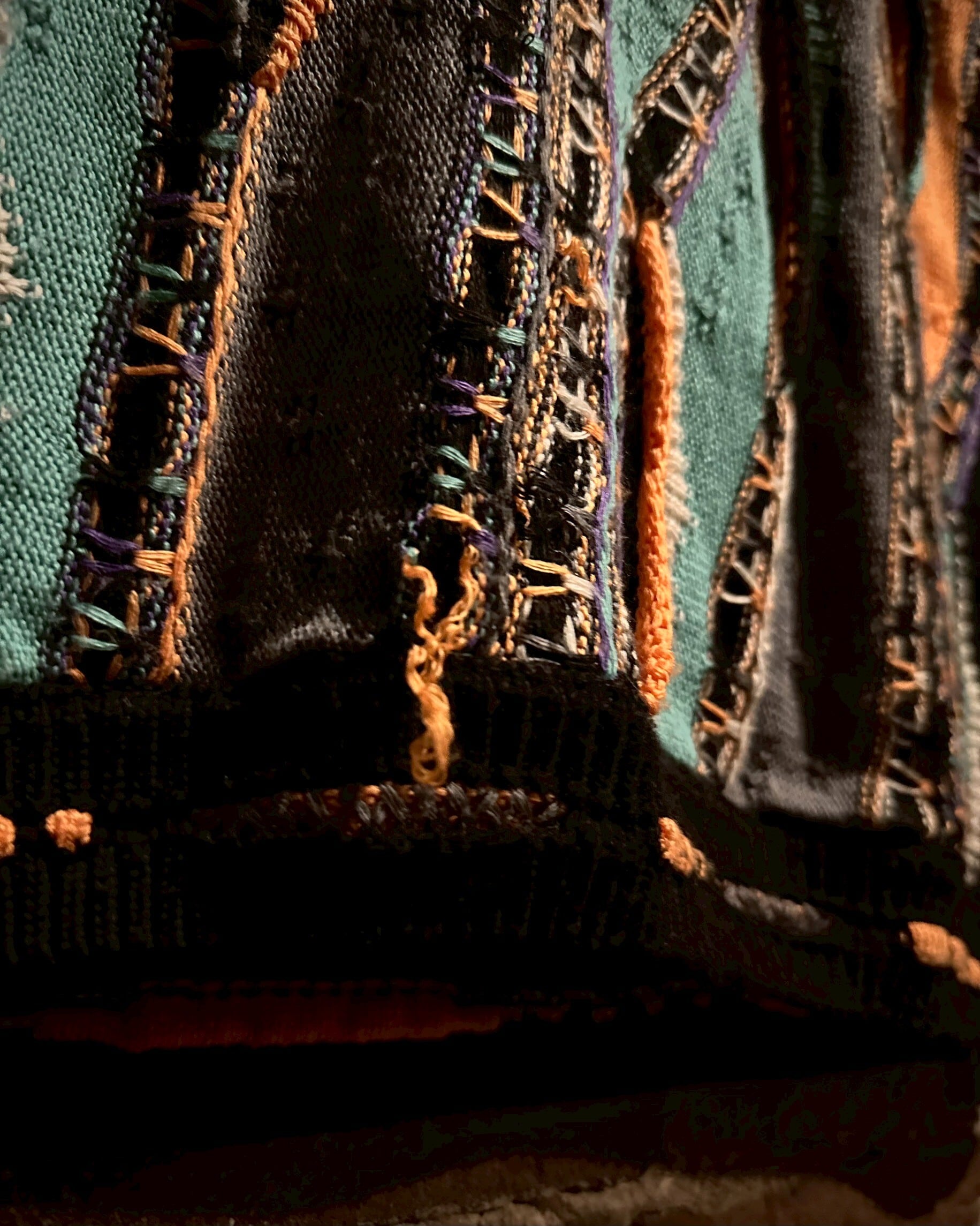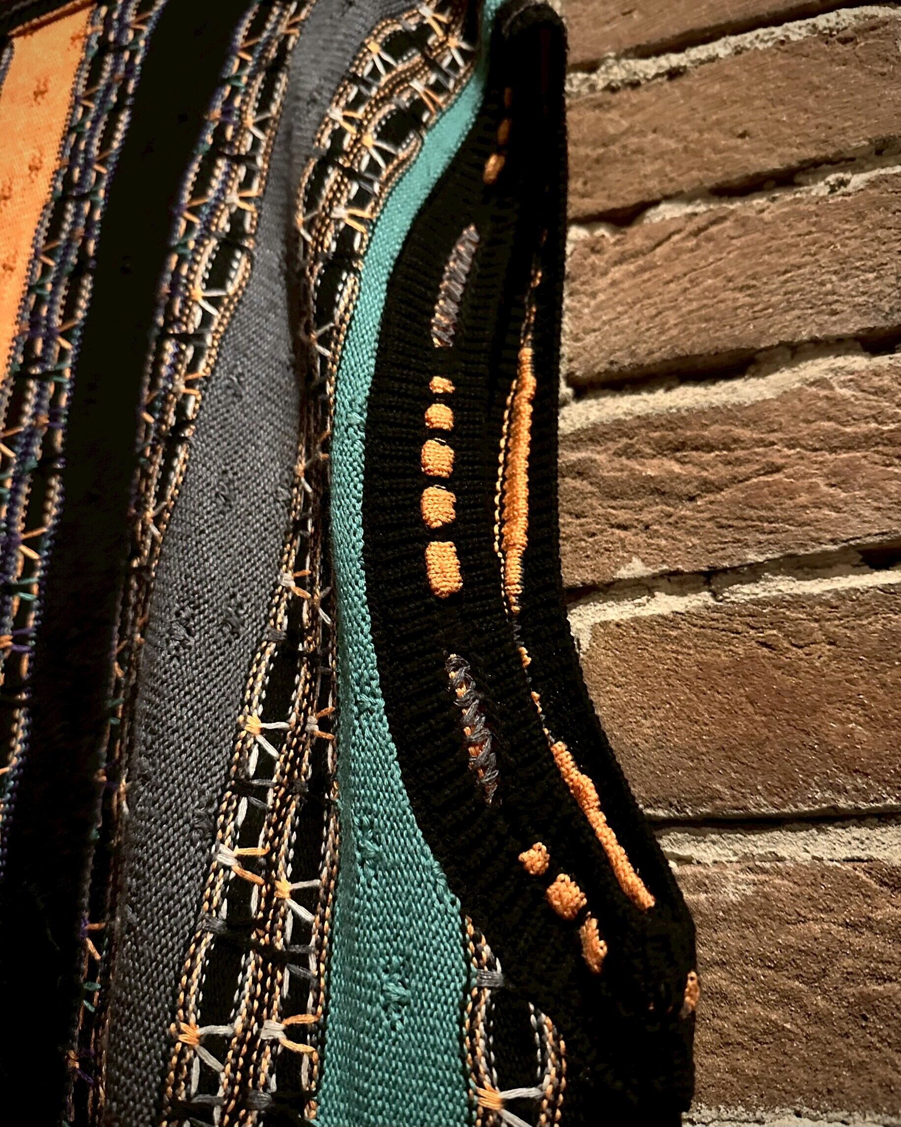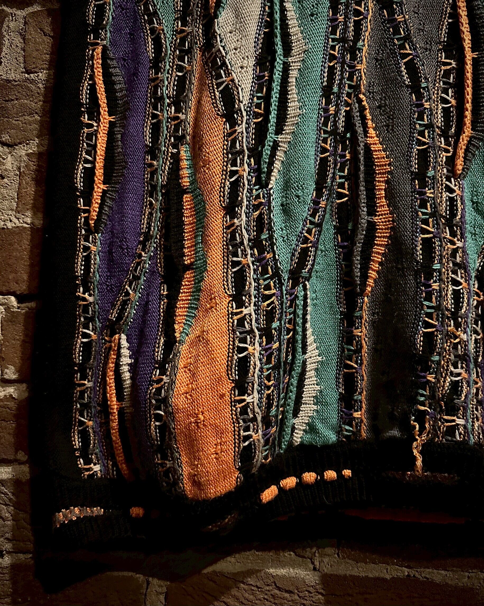 繊細なニッティングによって生まれたうねりの効いた立体感が美しい3Dニットの逸品。独特の畝りの上にステッチを走らせ、より奥行きを感じる見映えへと昇華。