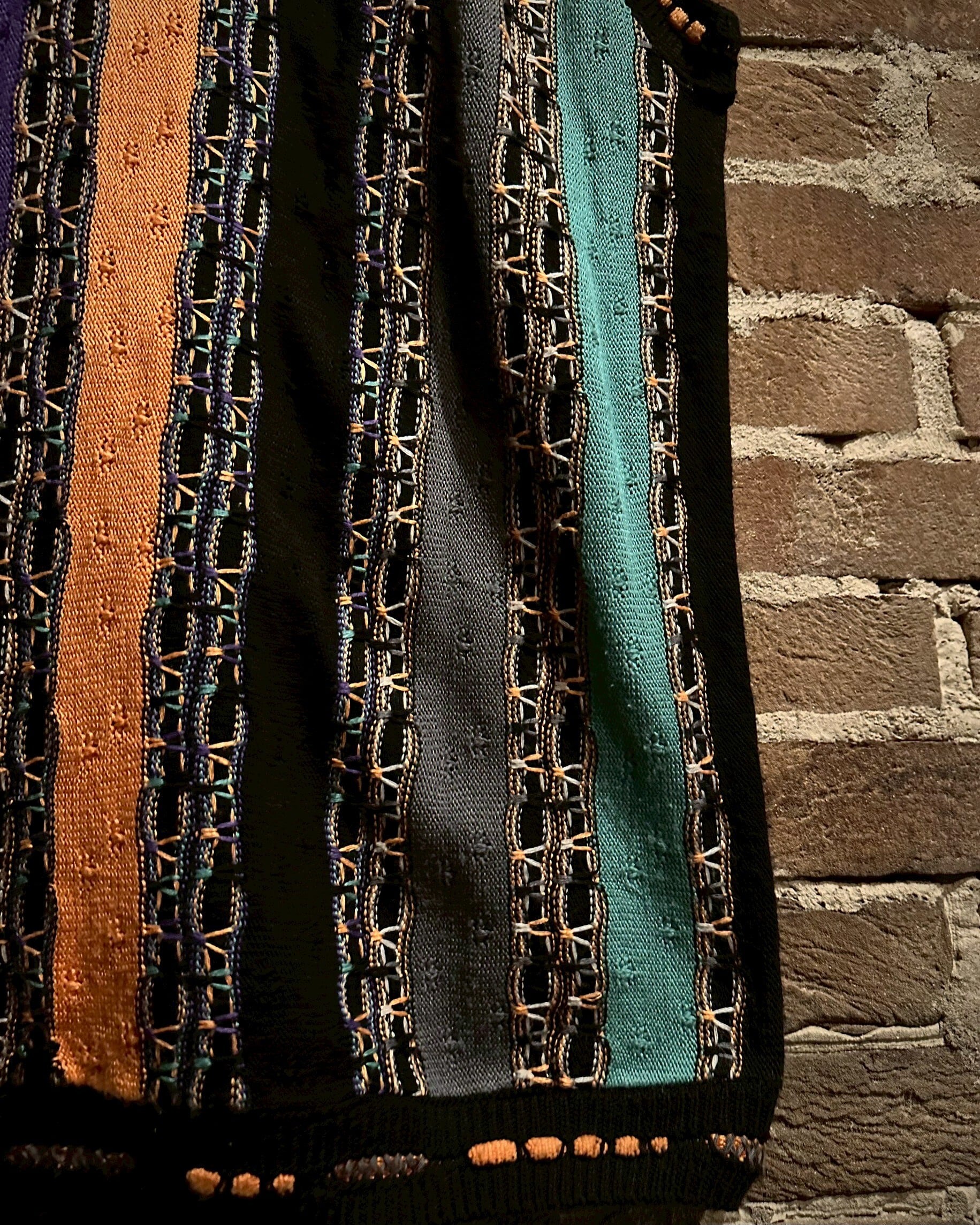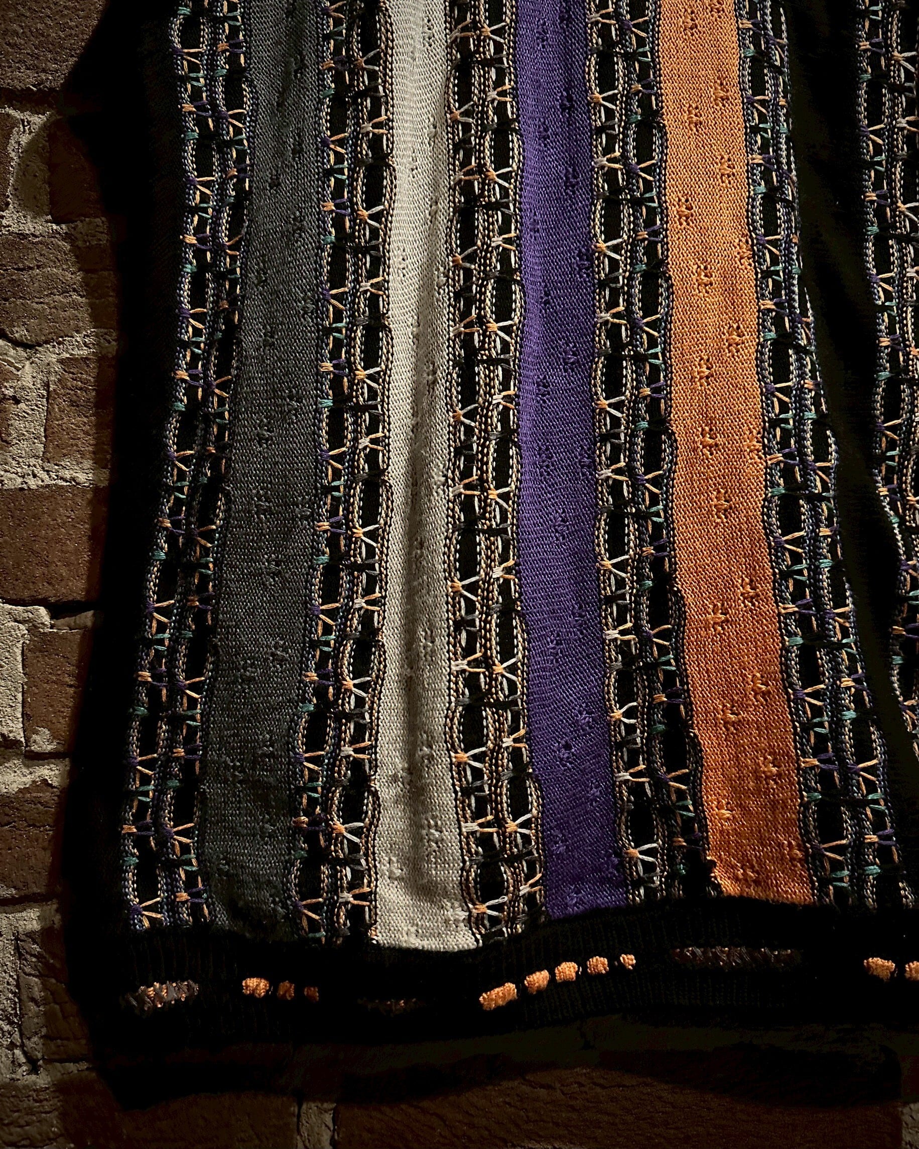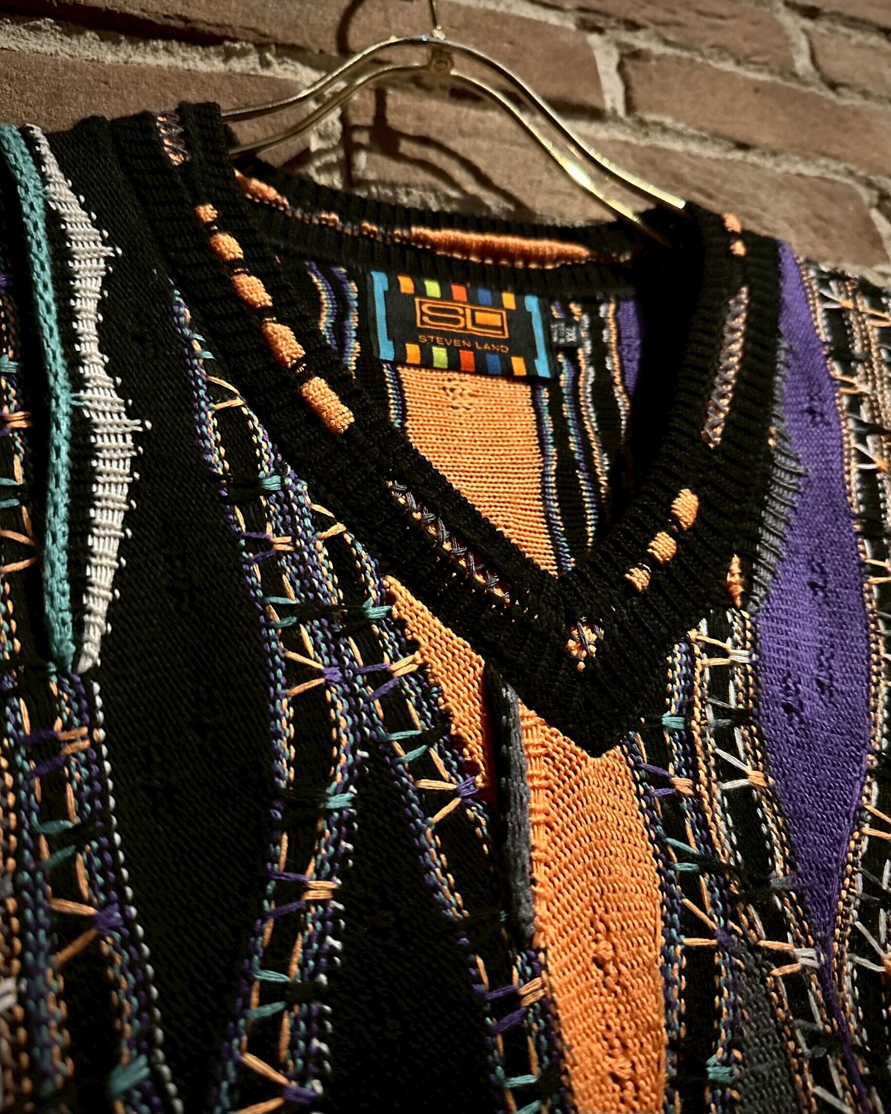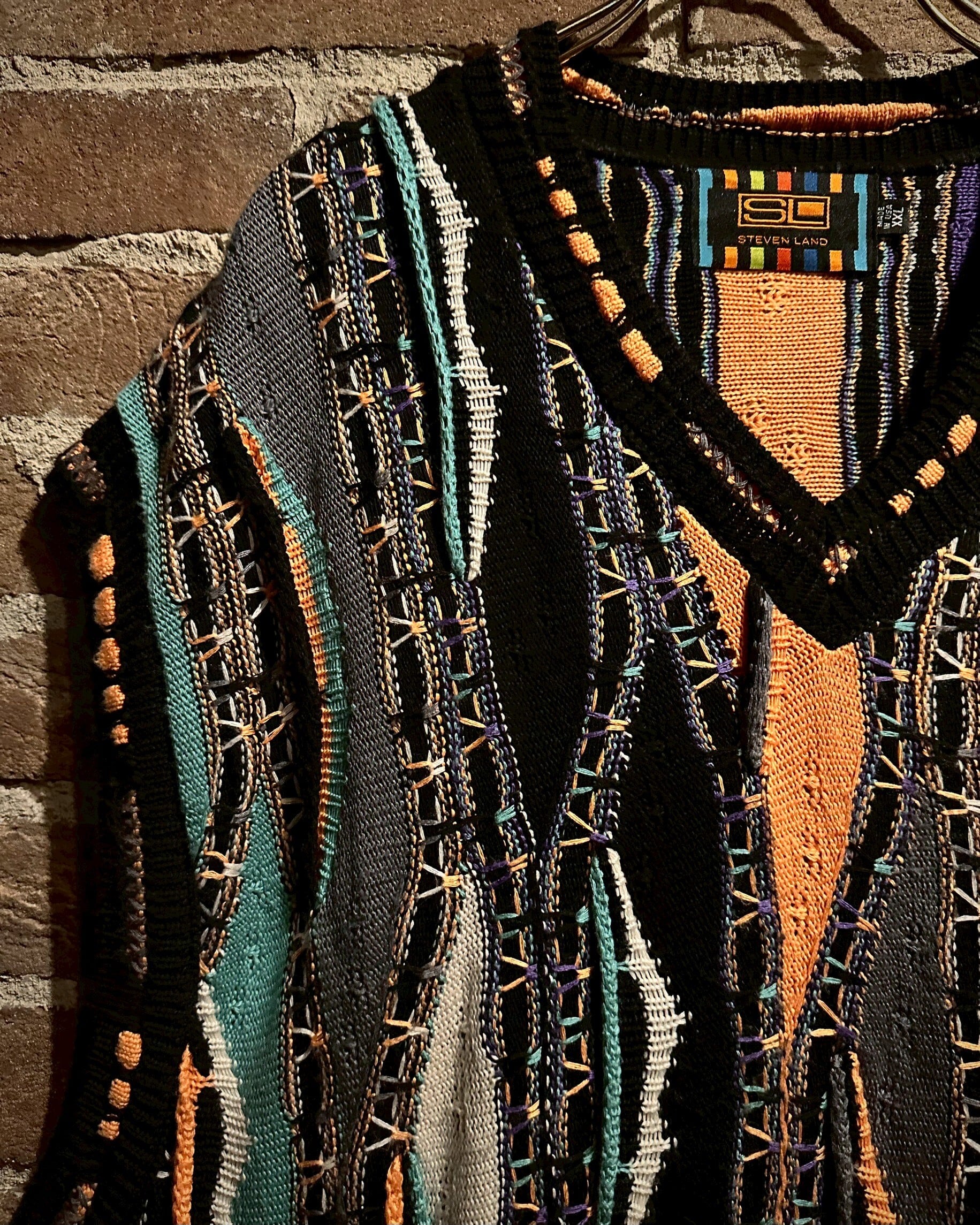 昨今高騰化が著しい、Cakaグループの代名詞の一つでもある3Dニットより、サイケデリックな配色バランスが素晴らしいニットベストをご紹介致します。