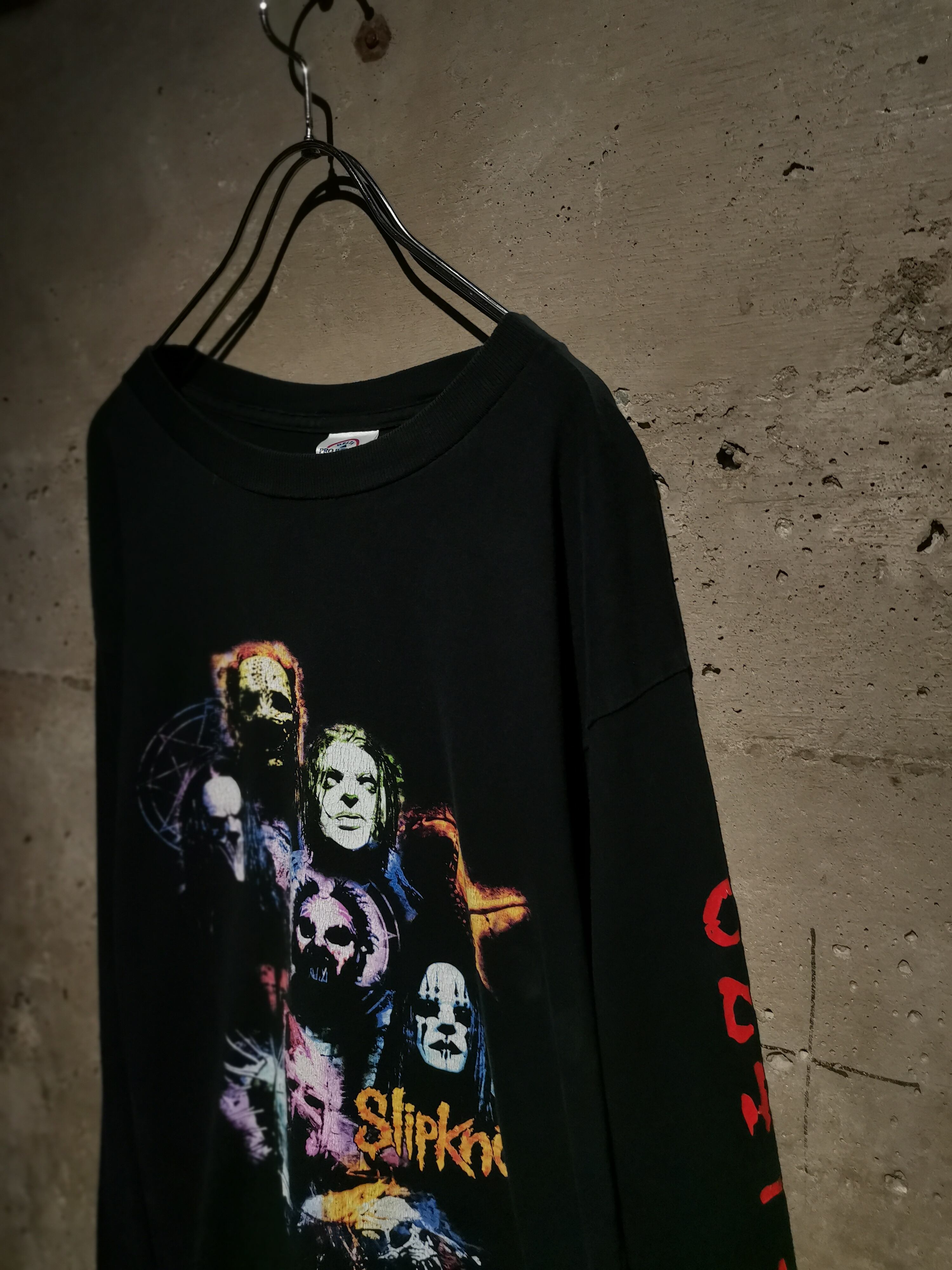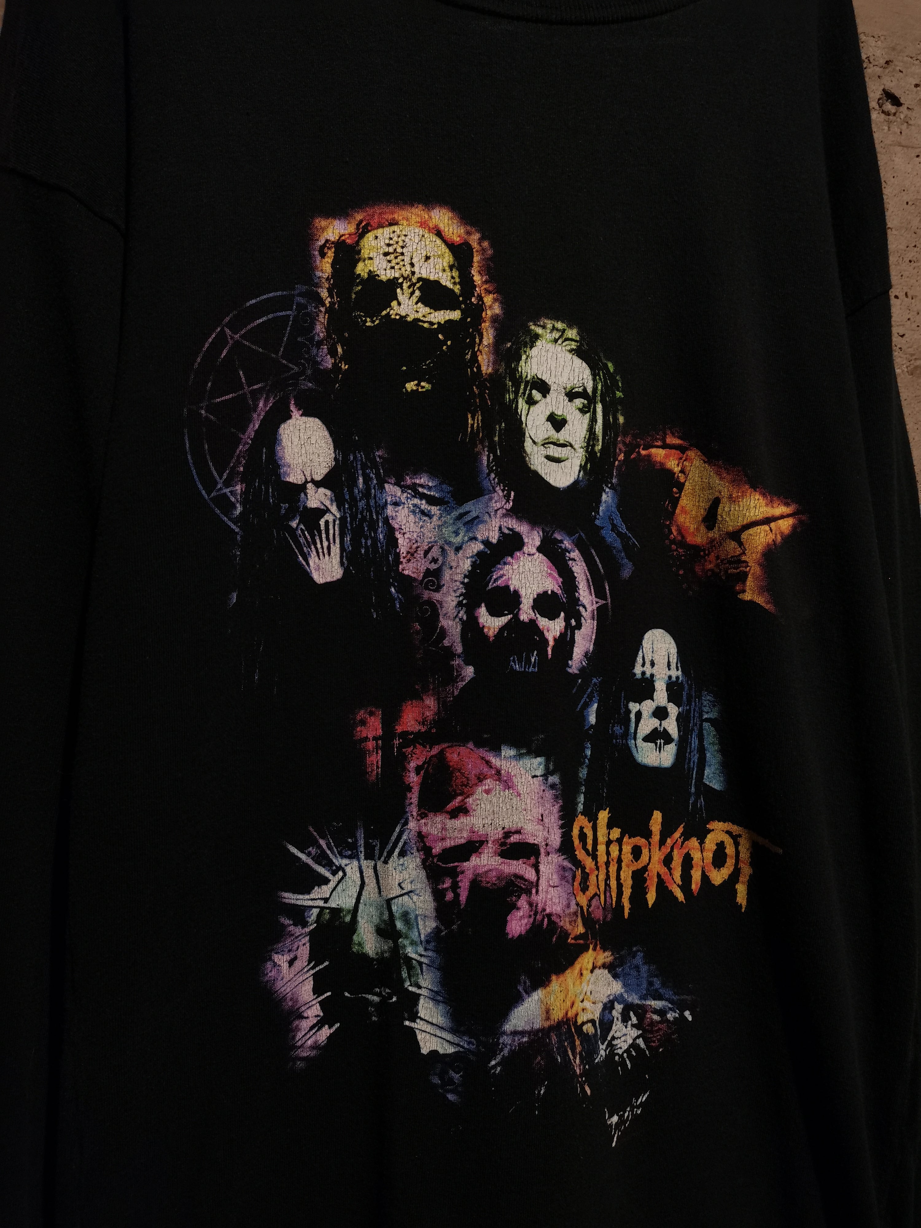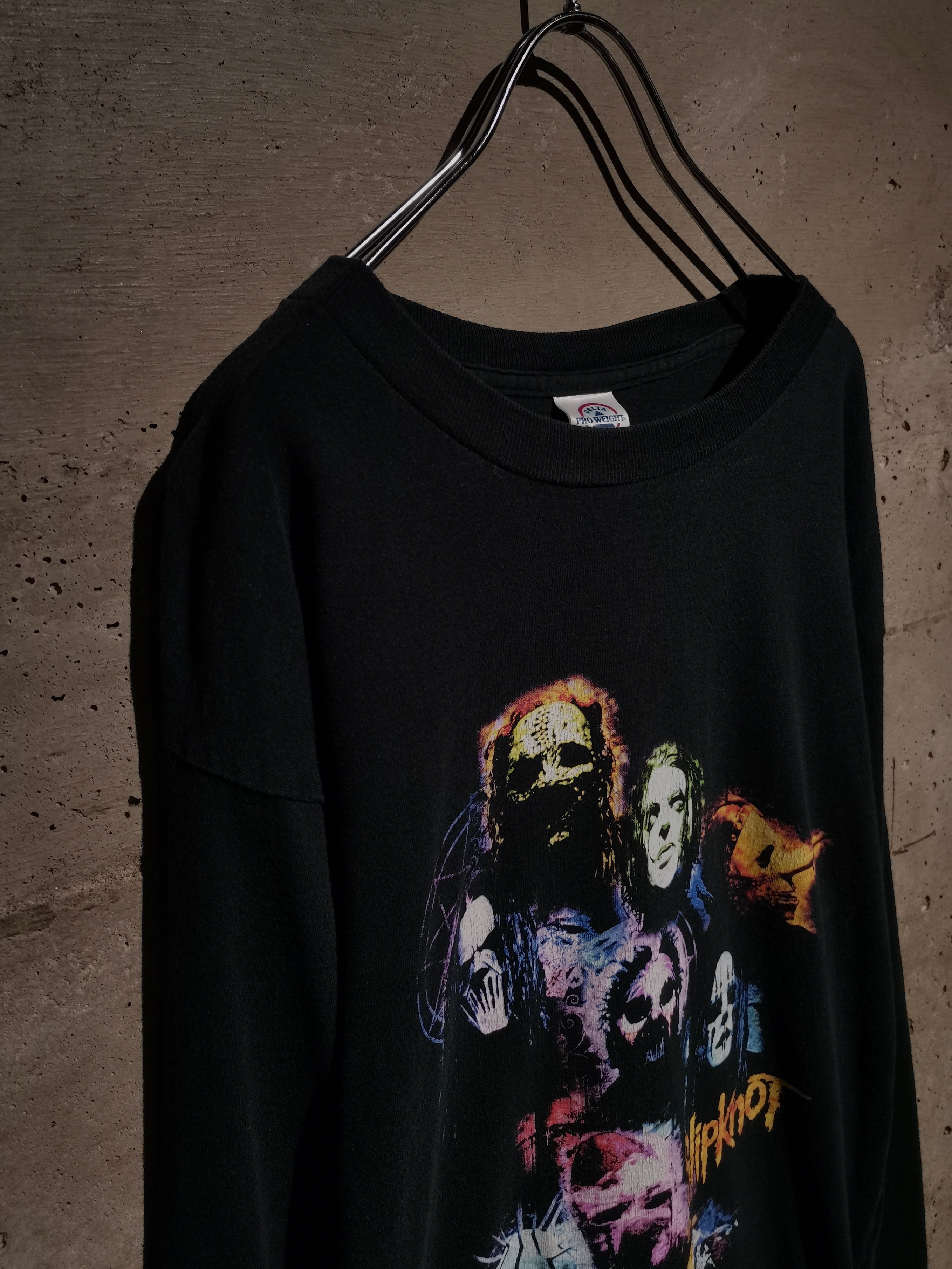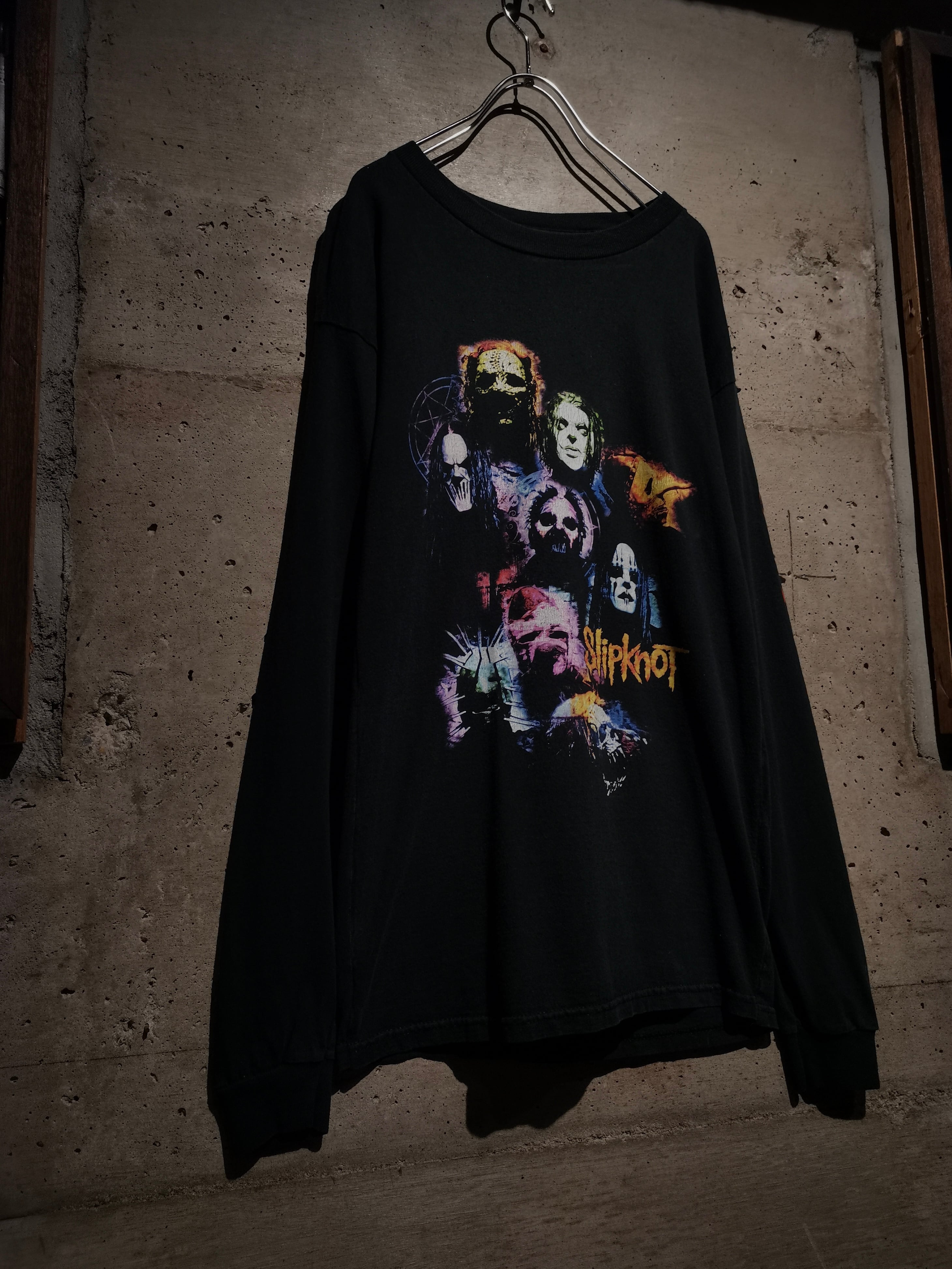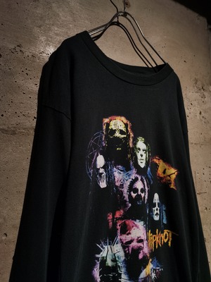 ヴィンテージTシャツでもトップクラスの人気を誇り、メンバー各々が異なる個性的なマスクを被ったパフォーマンスが有名な"SlipKnot"のロンT。