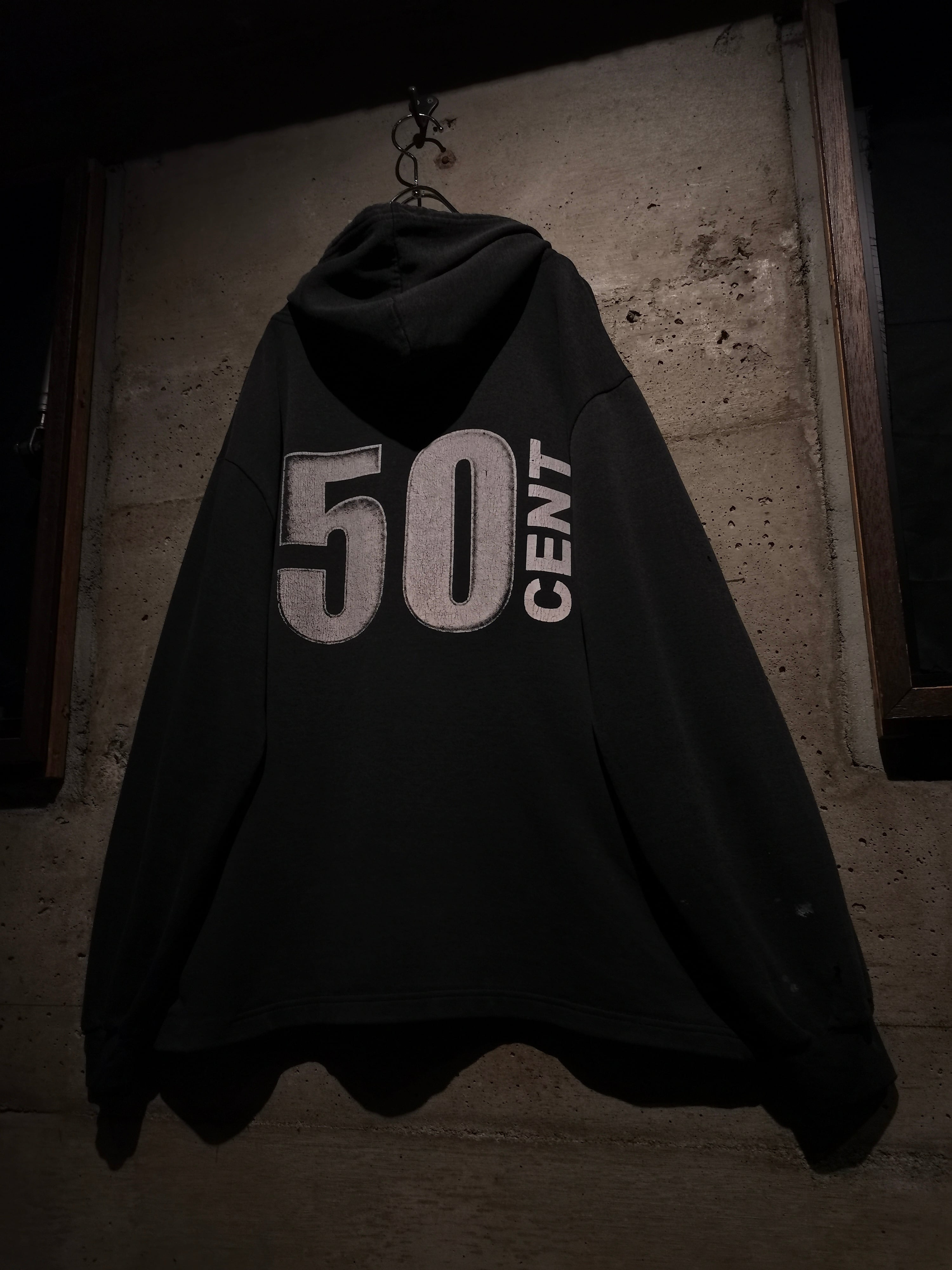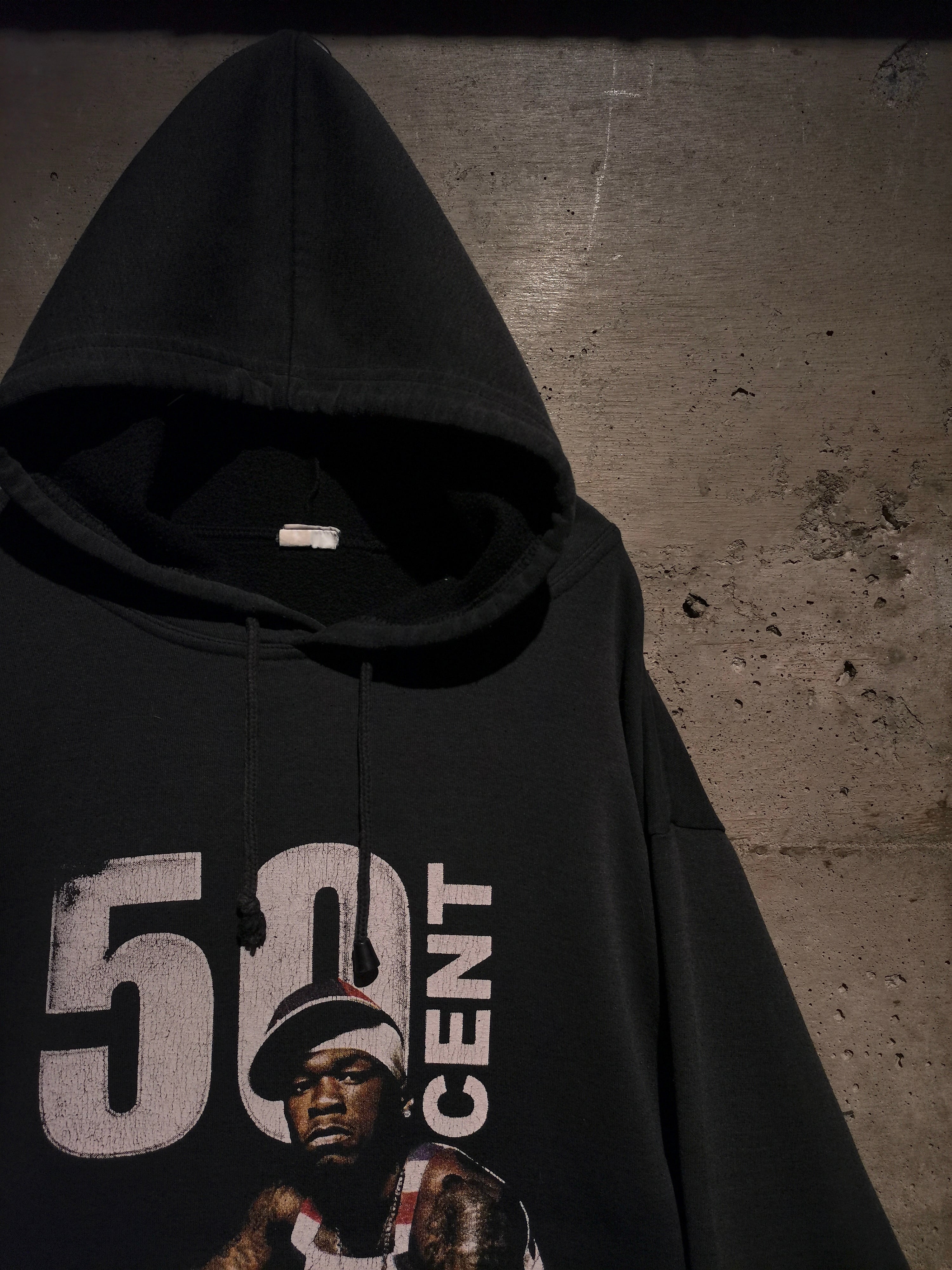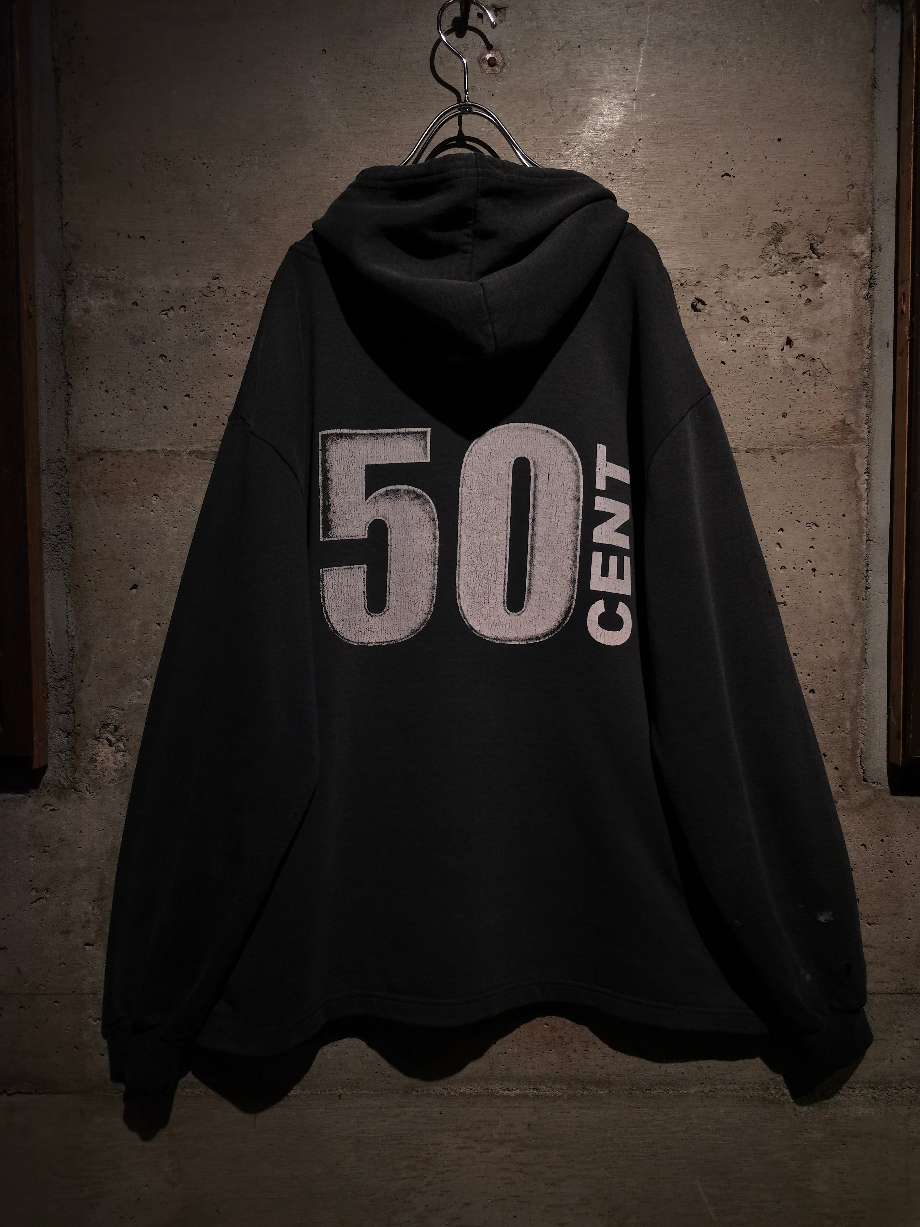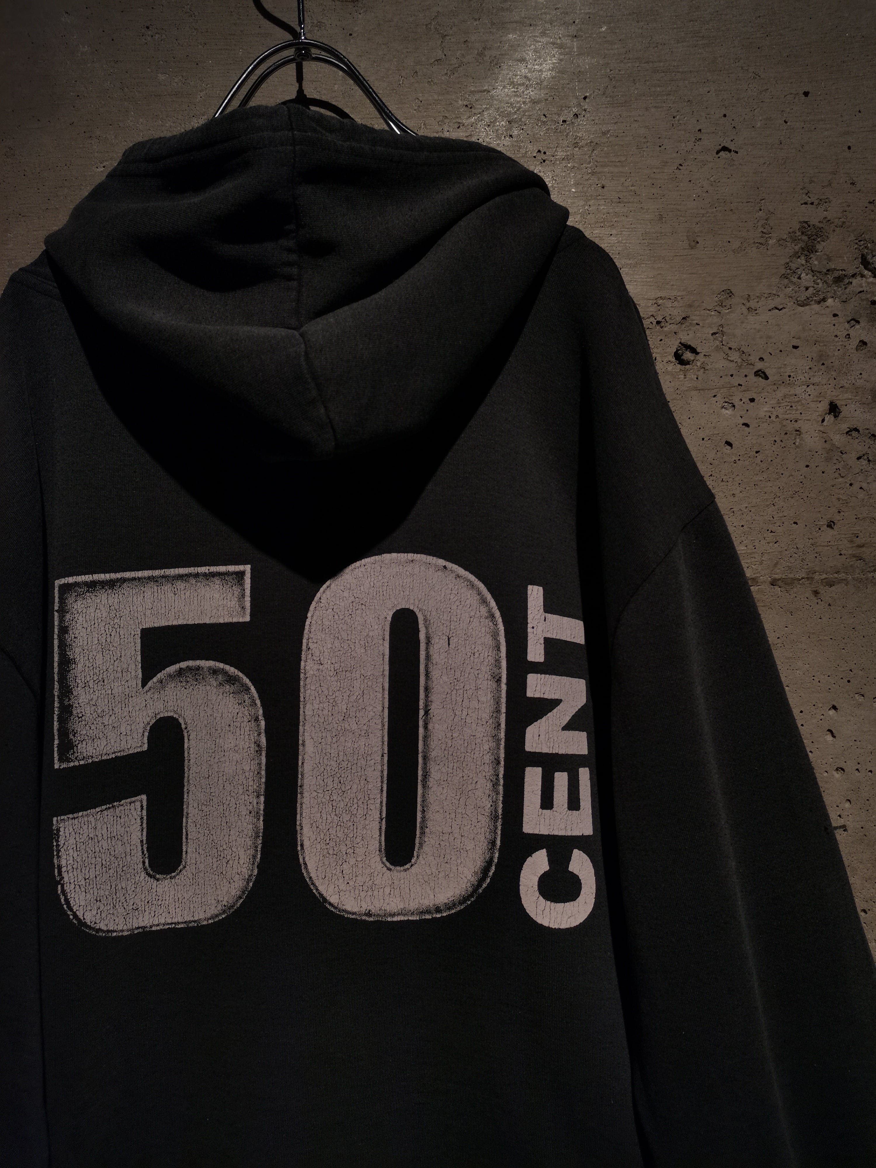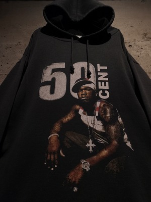 2000年代を代表するラッパー"50 Cent"がプリントで載せられた、90〜00'sのユーロブートのプルオーバーフーディ。