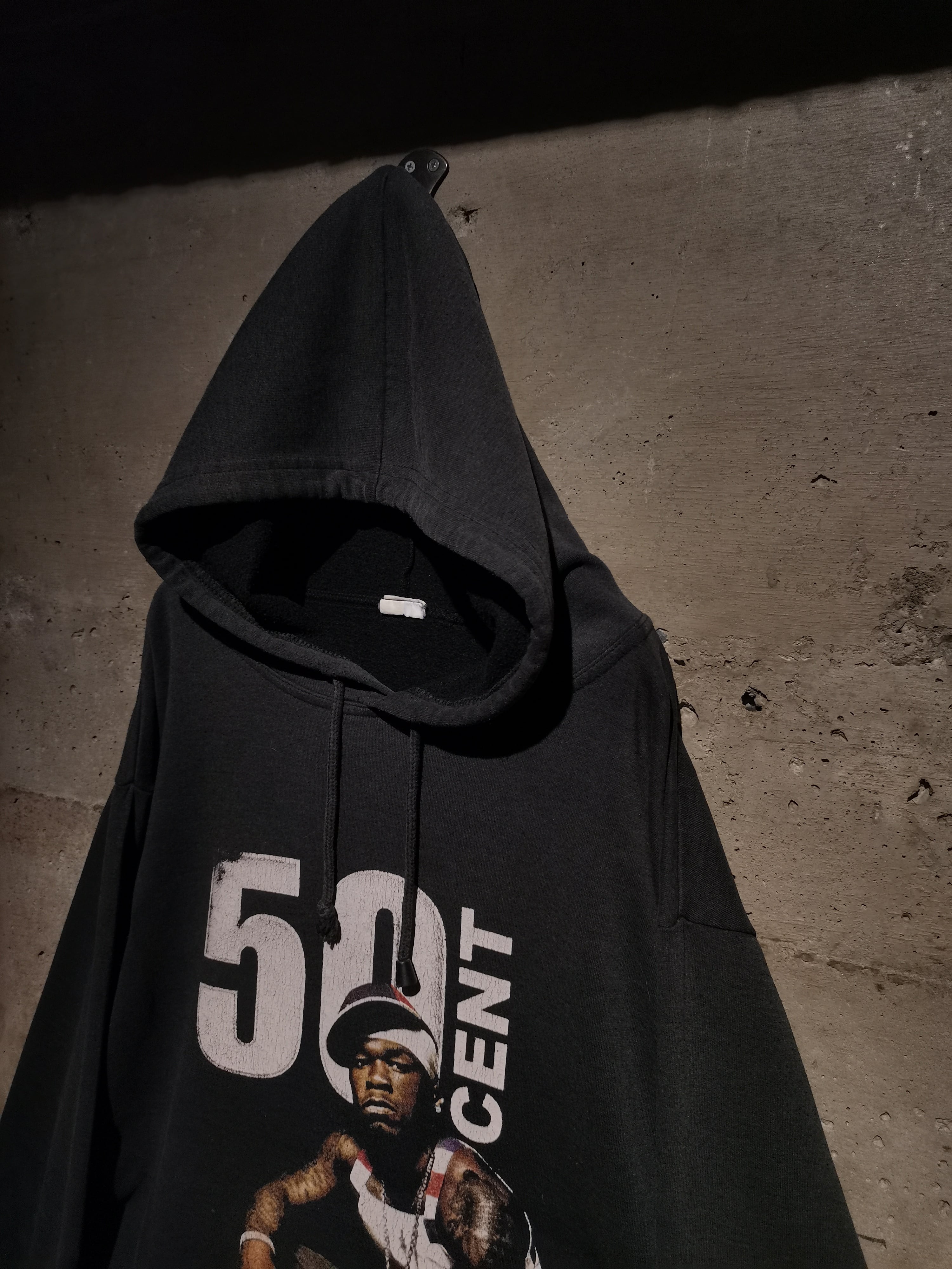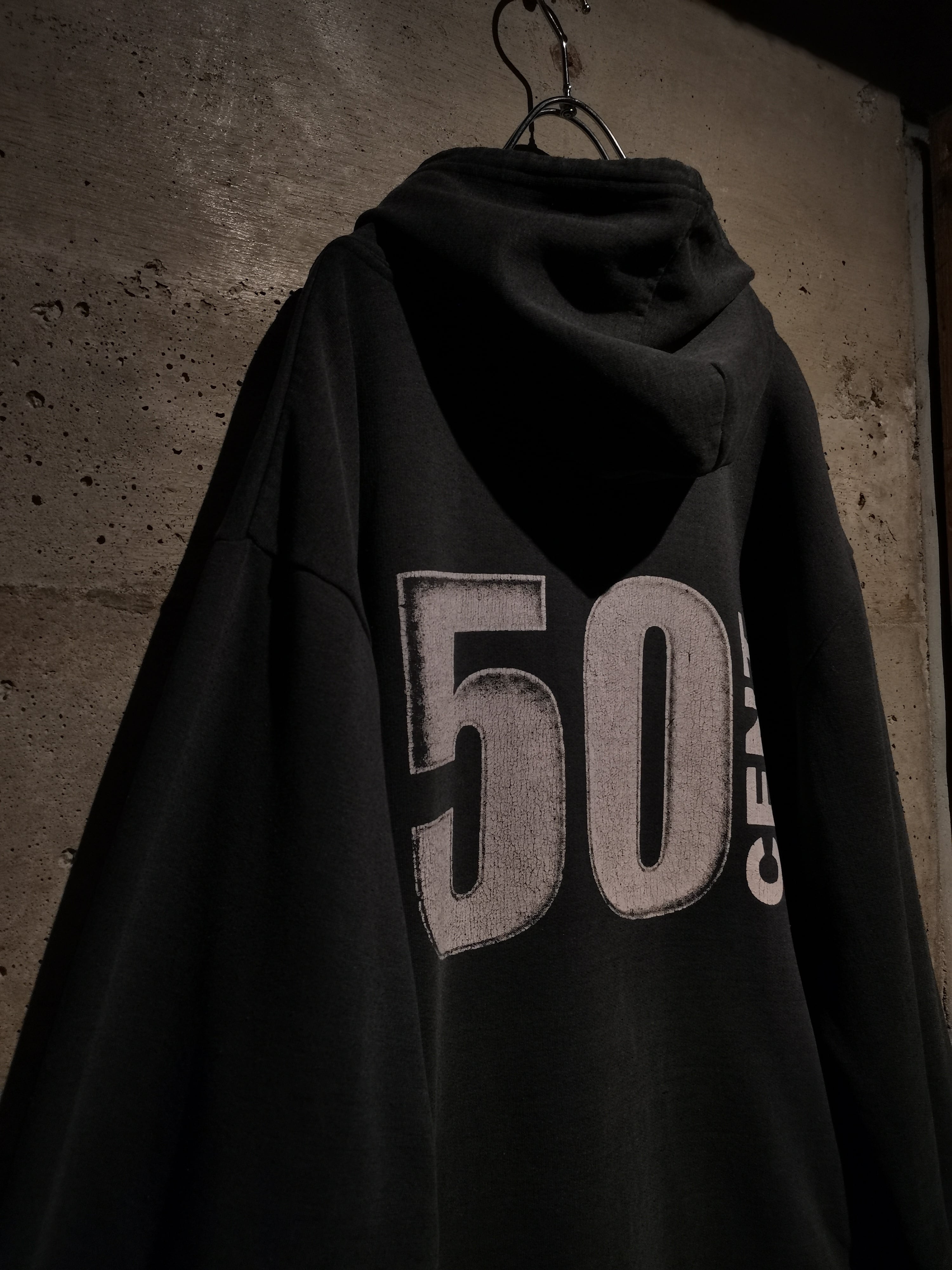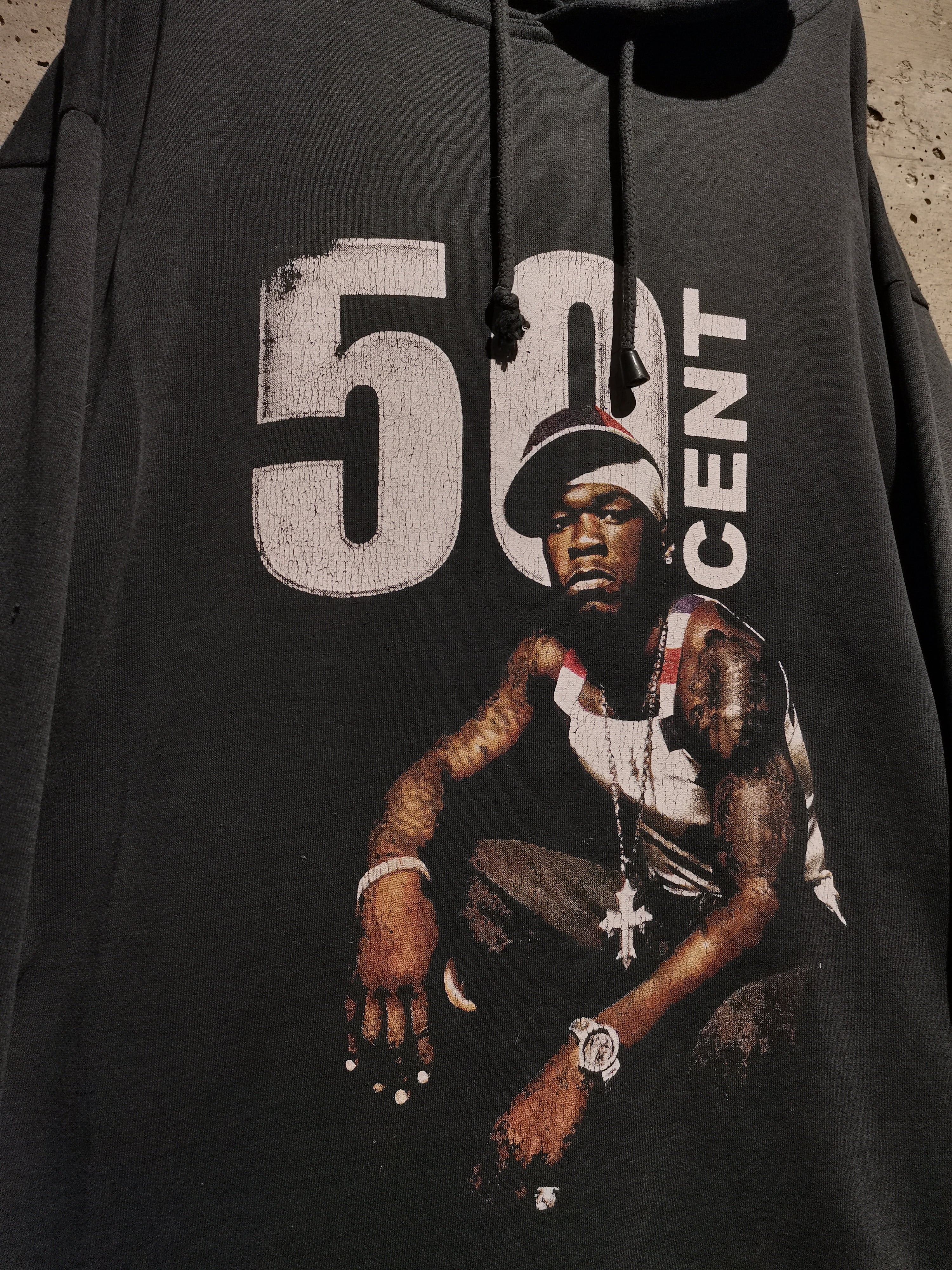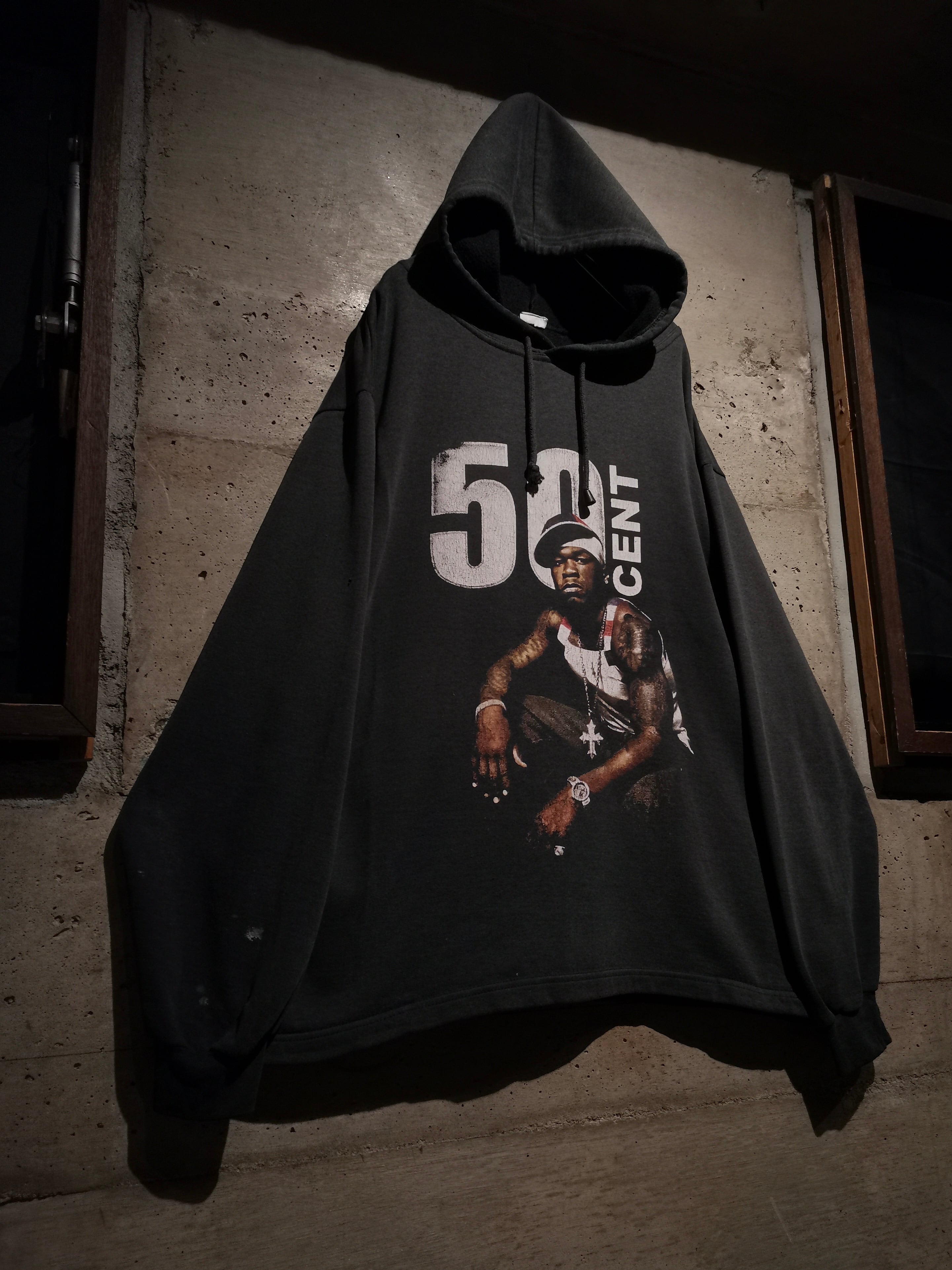 2000年代を代表するラッパー"50 Cent"がプリントで載せられた、90〜00'sのユーロブートのプルオーバーフーディ。