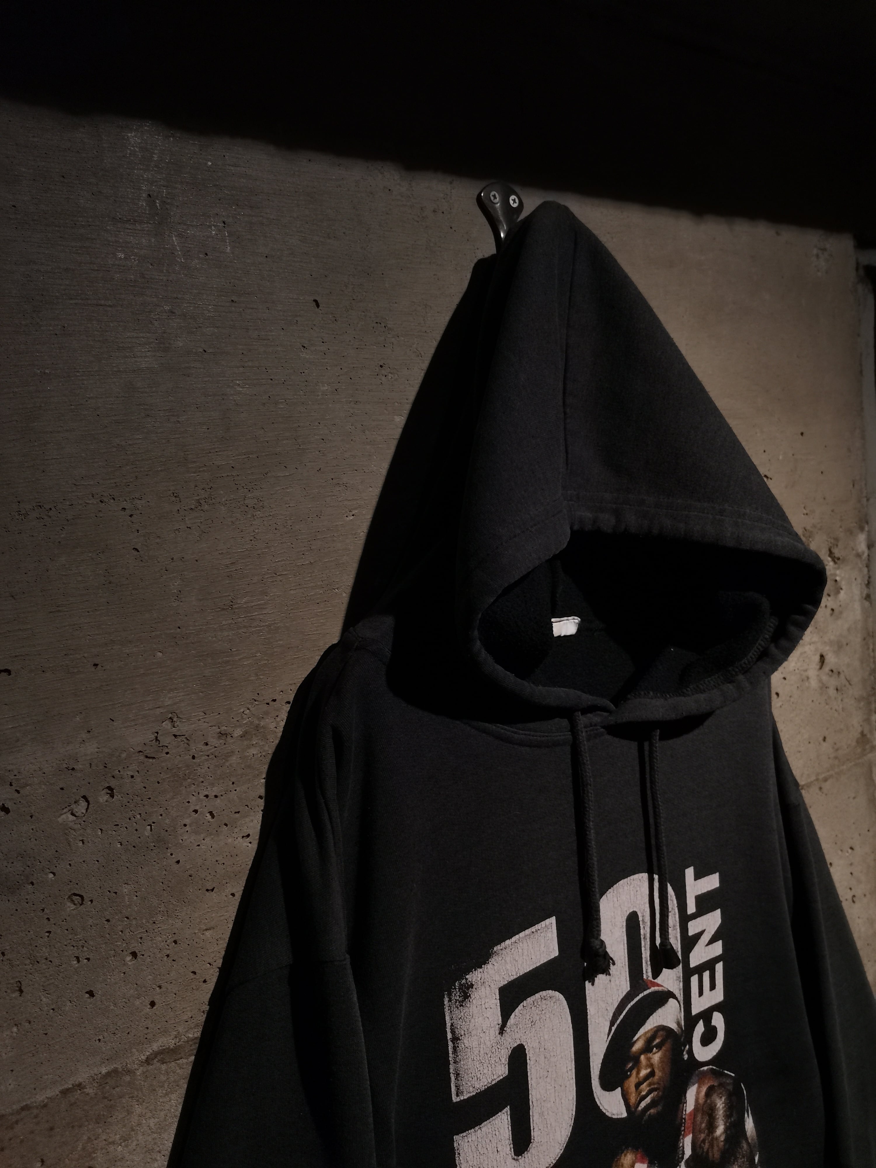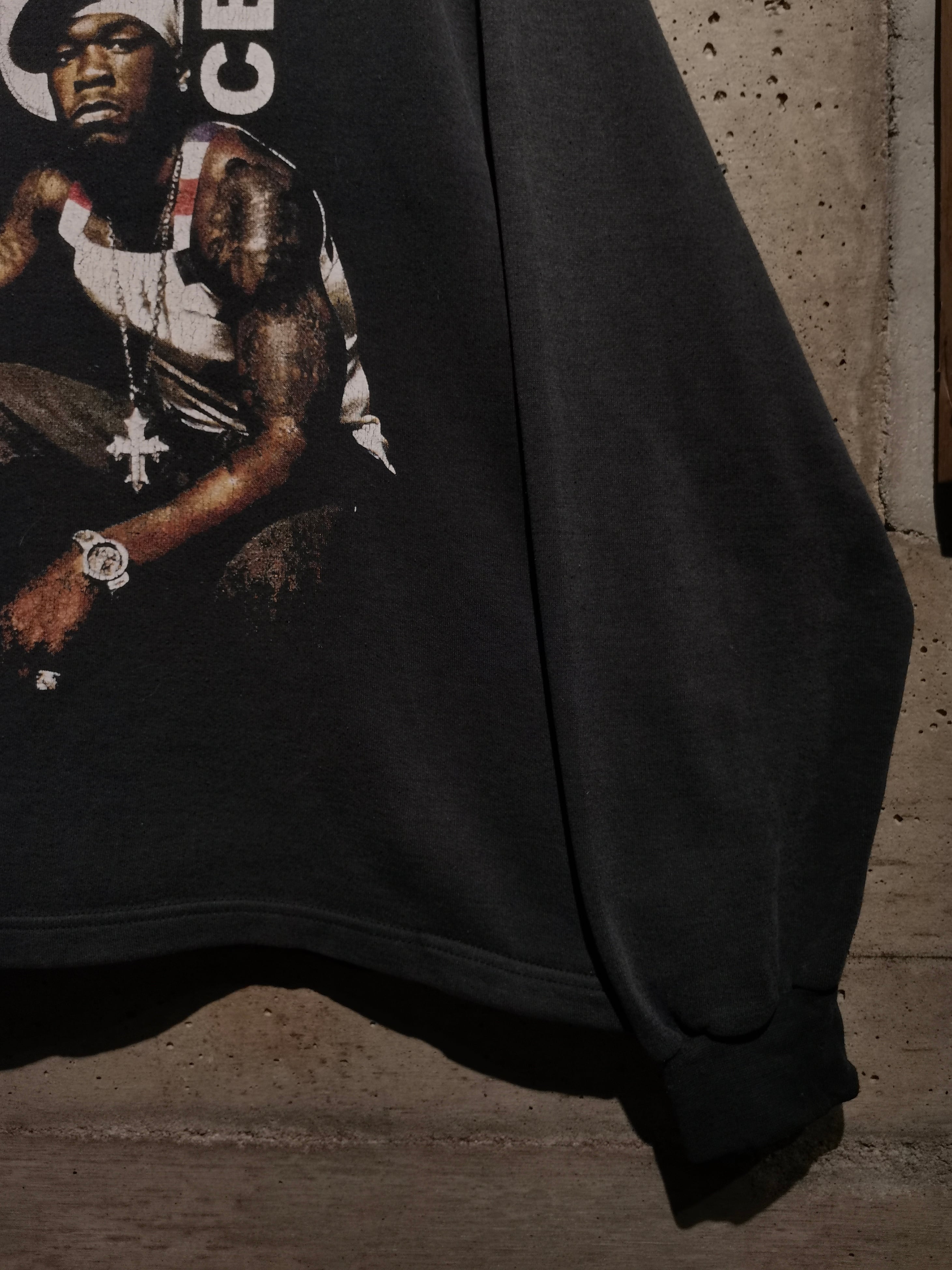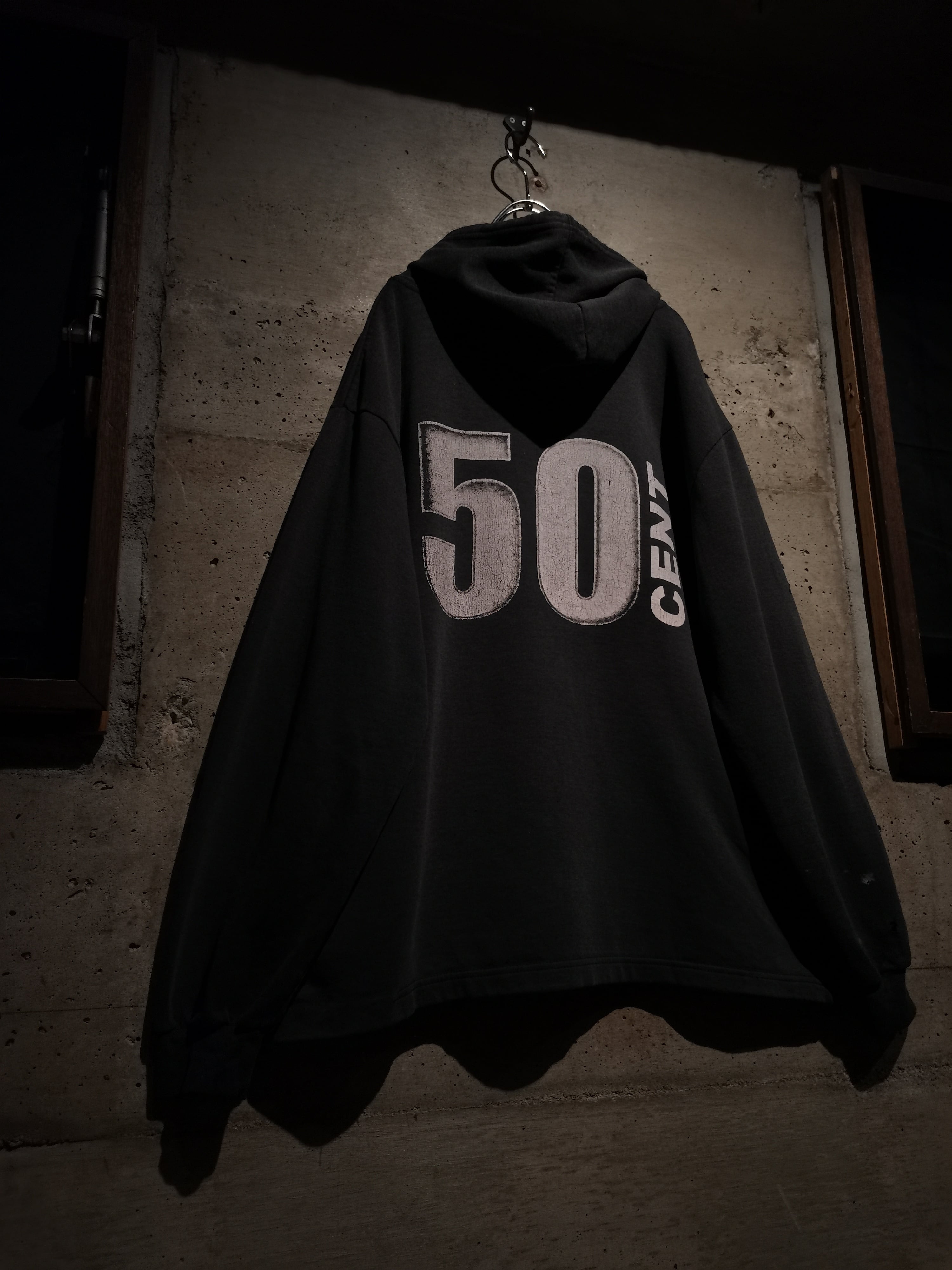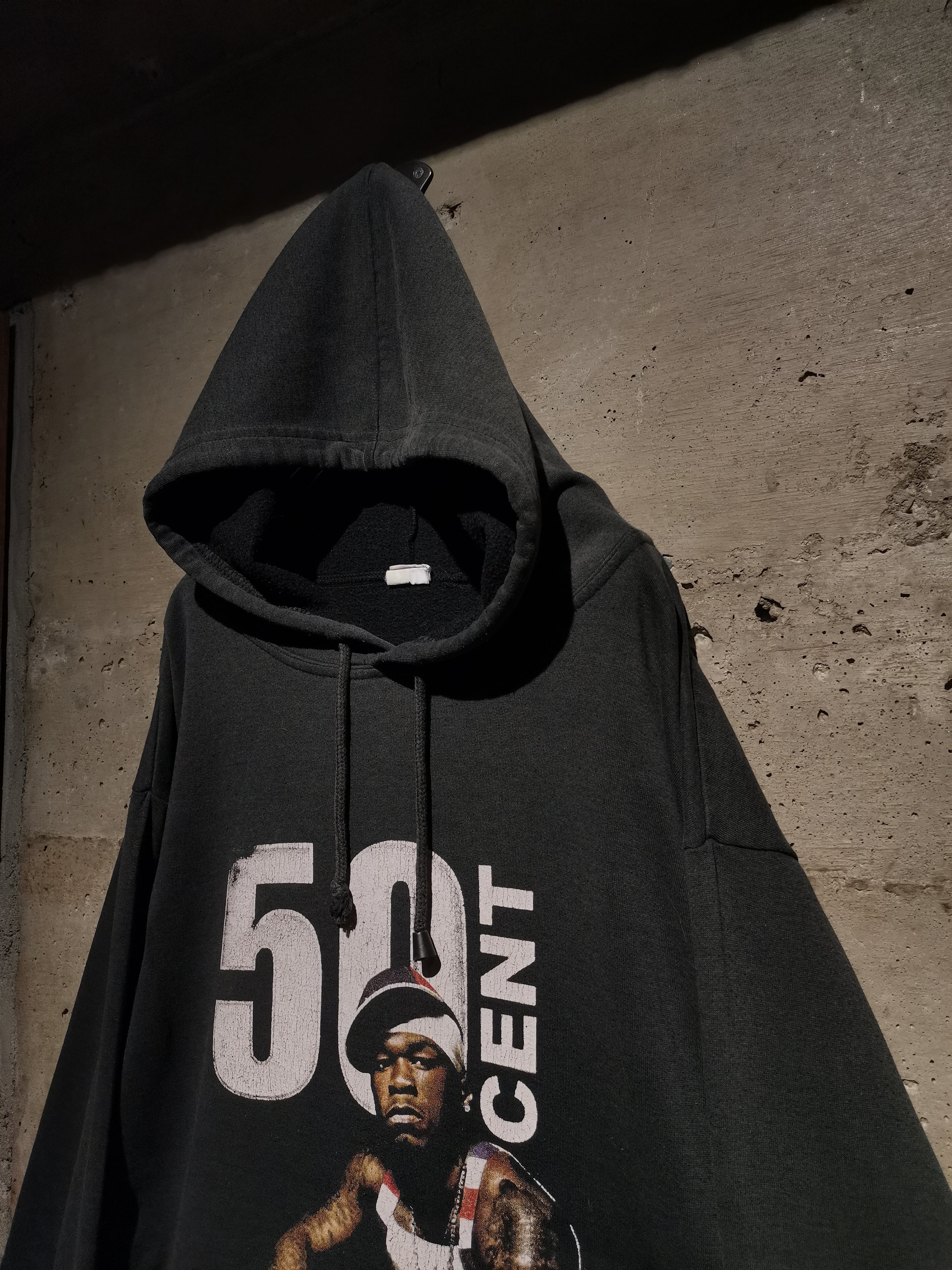 2000年代を代表するラッパー"50 Cent"がプリントで載せられた、90〜00'sのユーロブートのプルオーバーフーディ。