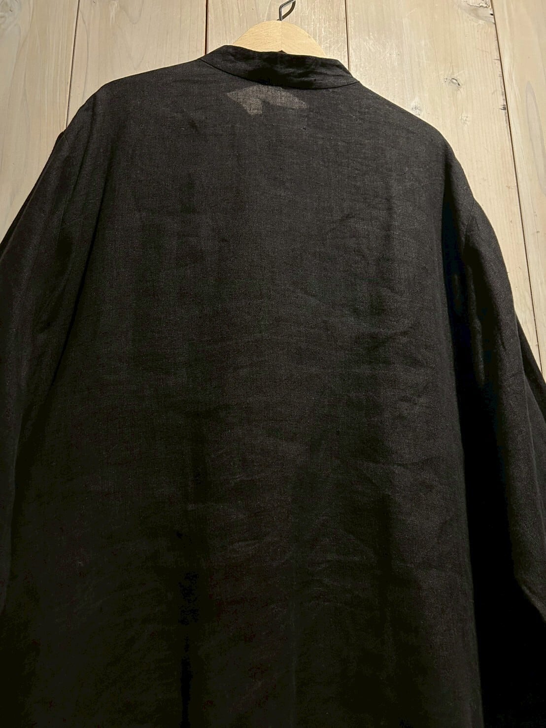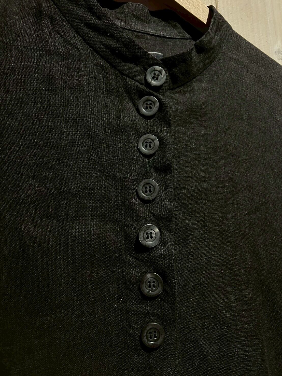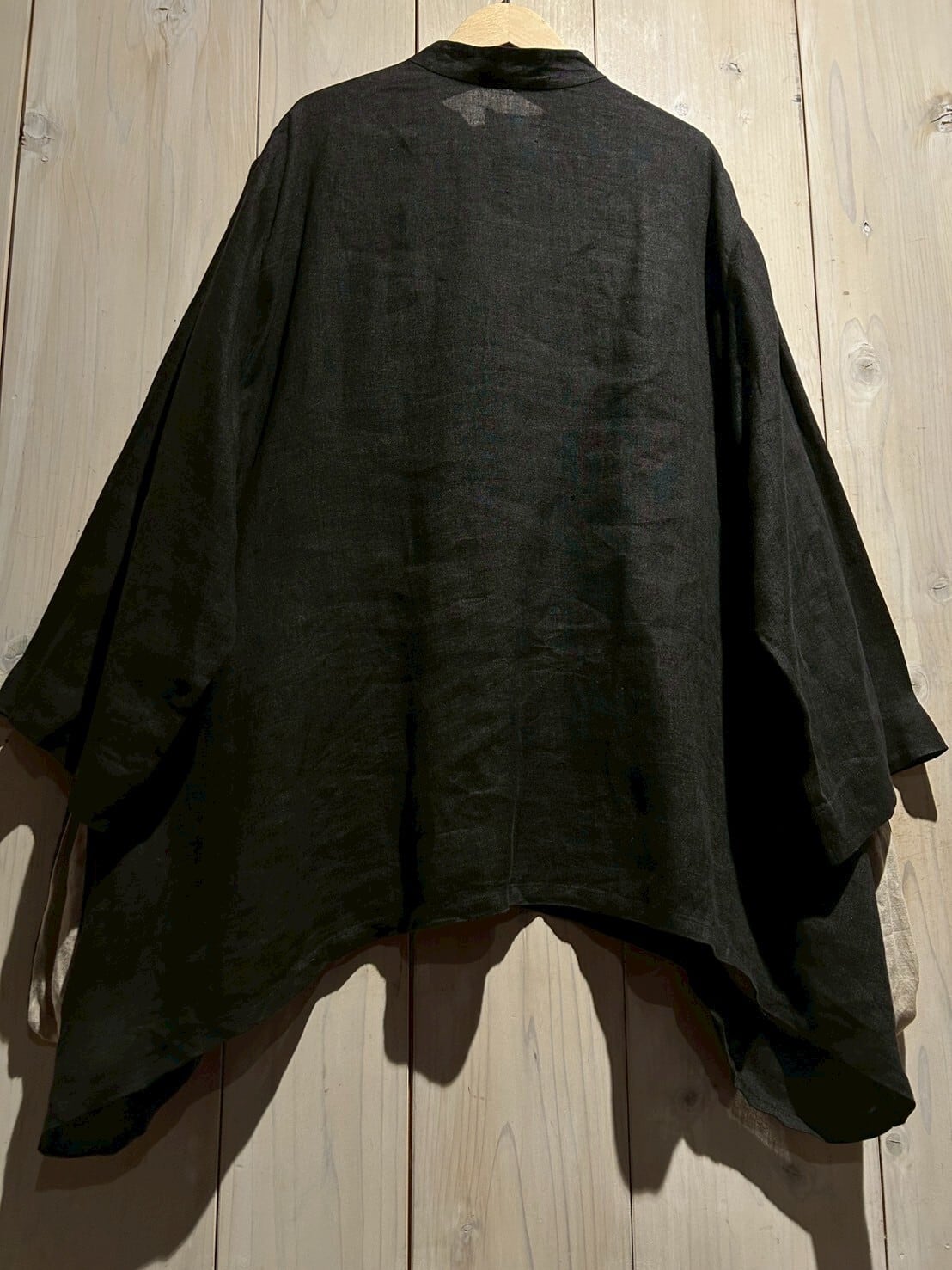 ボディのリネン素材は程よく経年変化し絶妙なドレープ感を表現。特徴的なシルエットをしていますが、着用時にはスッと体に馴染みリネン特有の味を存分にお楽しみいただけます。