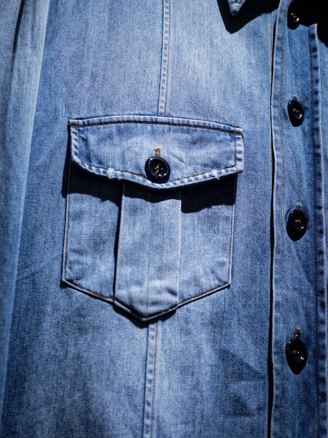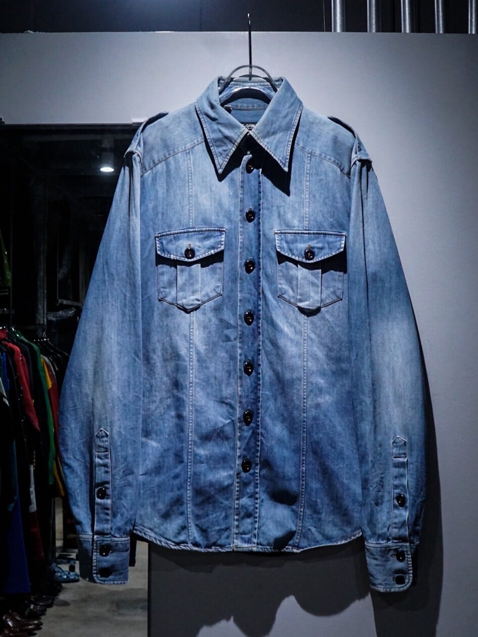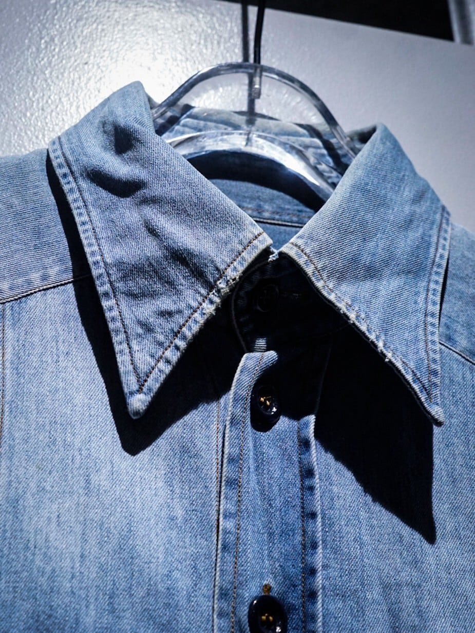 柔らかく薄手のデニムボディに、経年によって絶妙なアタリが載せられたデニムシャツ。