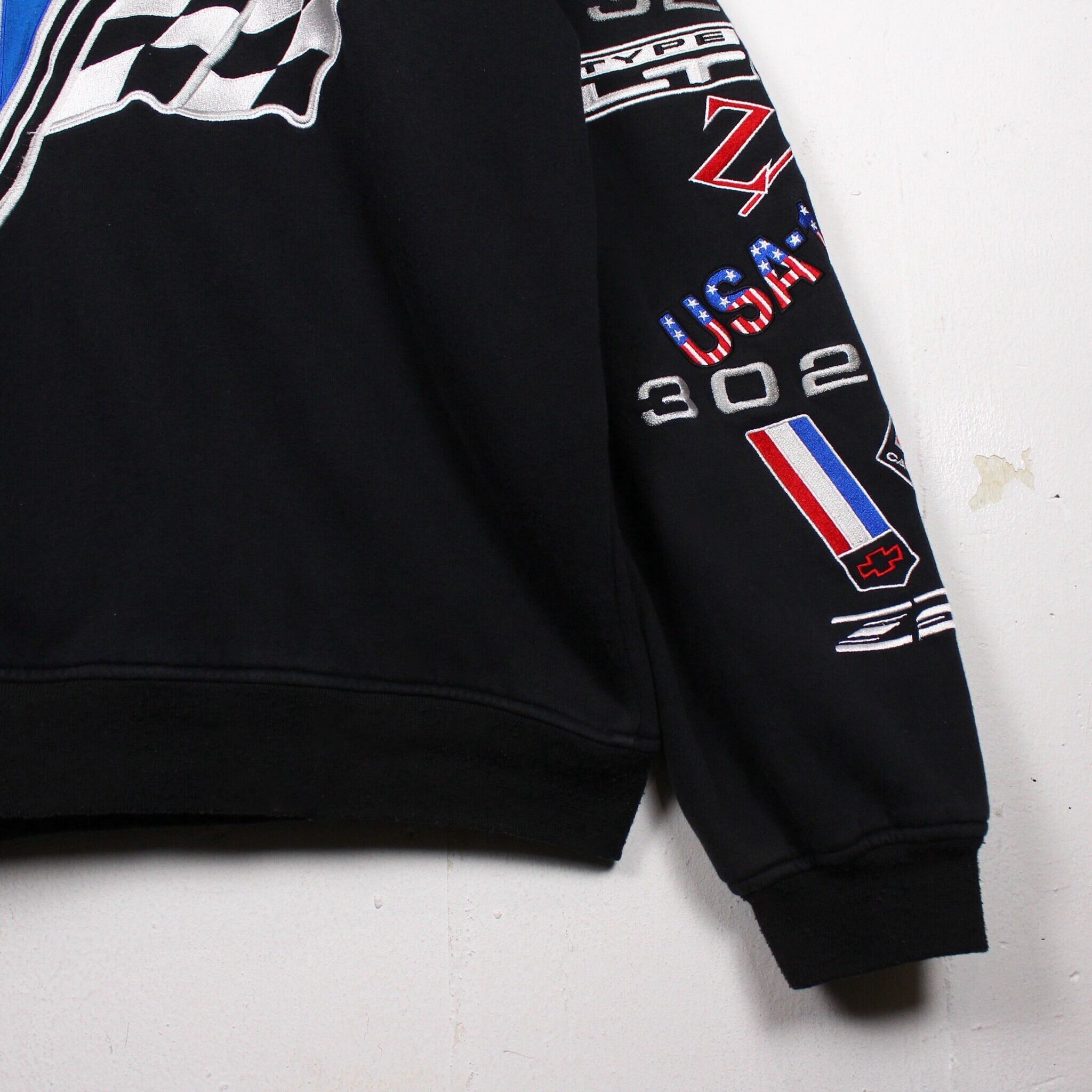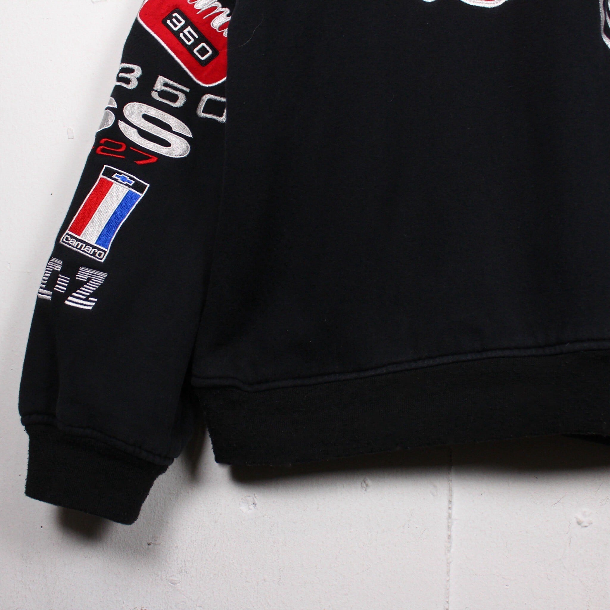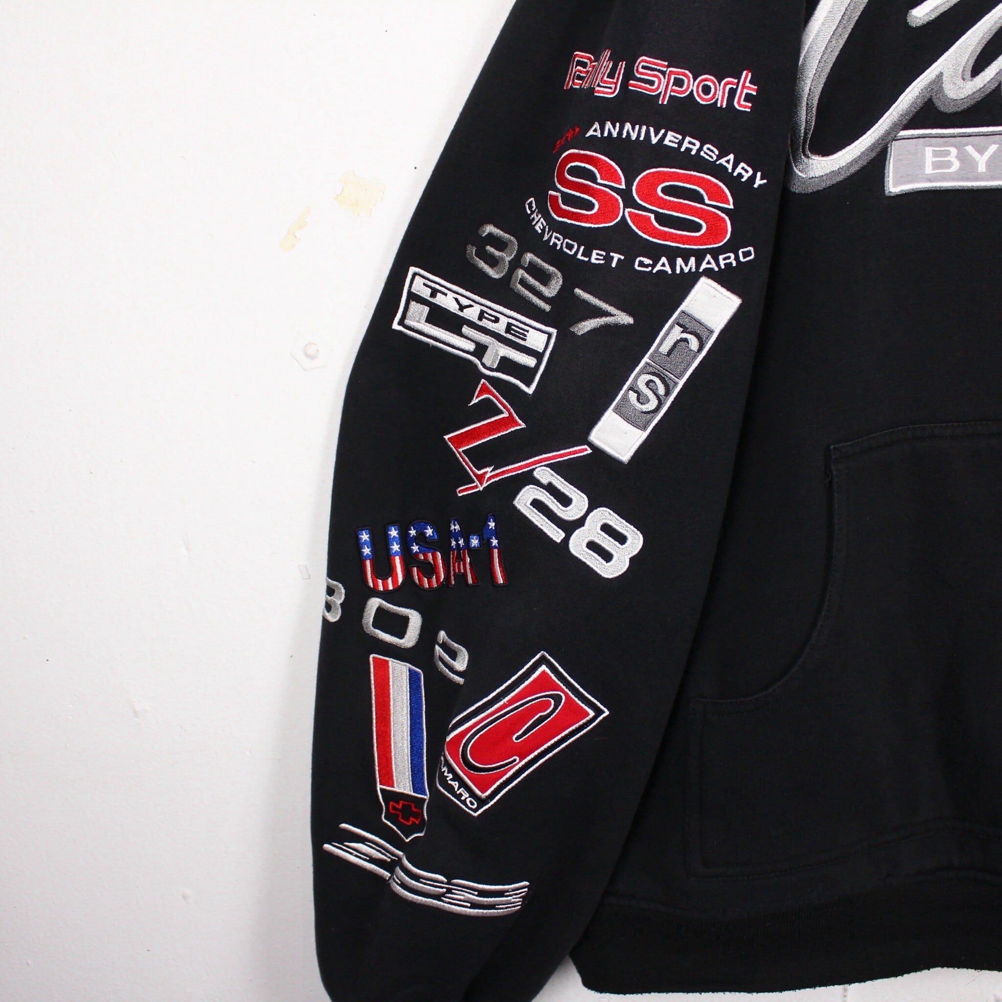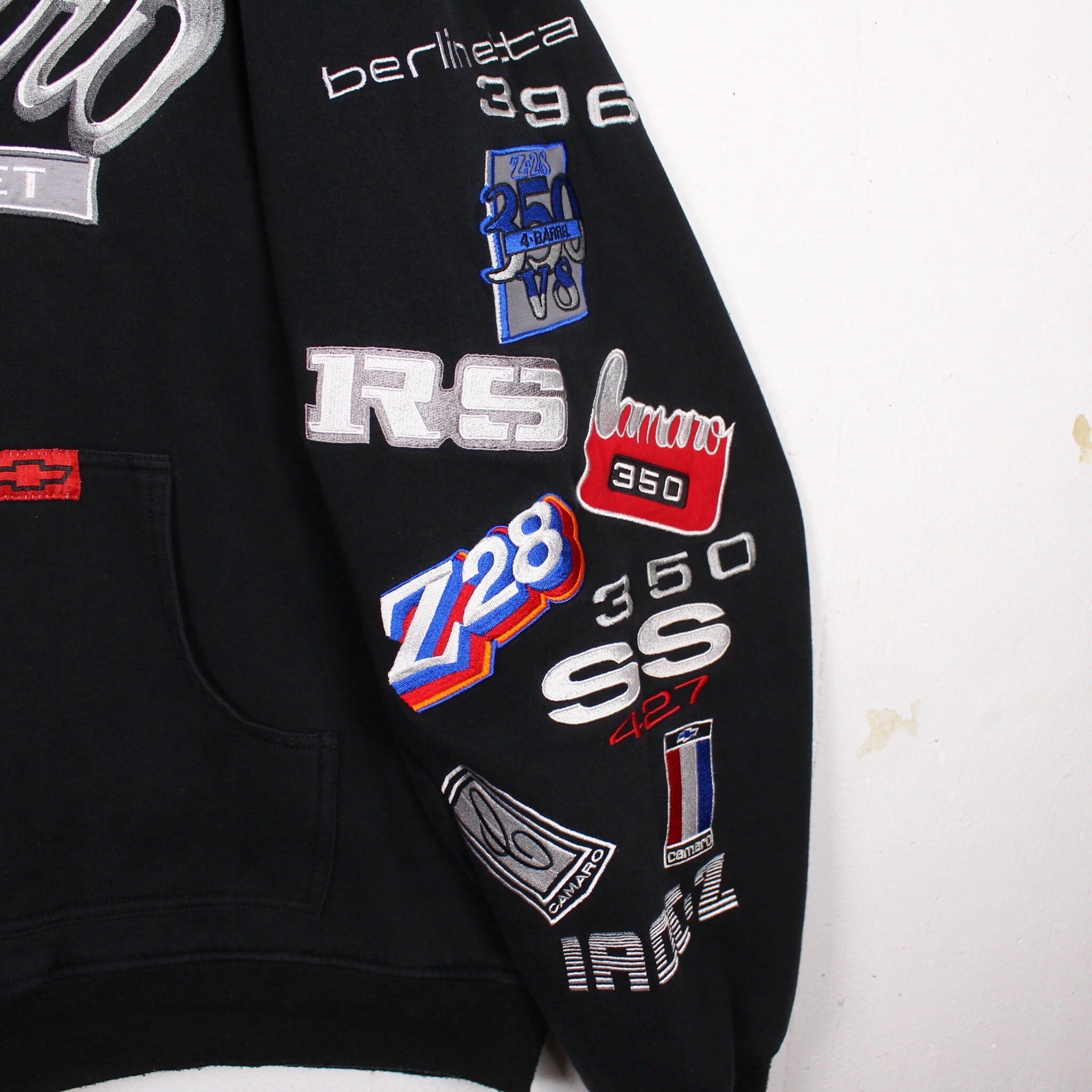 マッスルカーの代表格"カマロ"の文字や、ロゴを刺繍で刻んだジップアップフーディ。