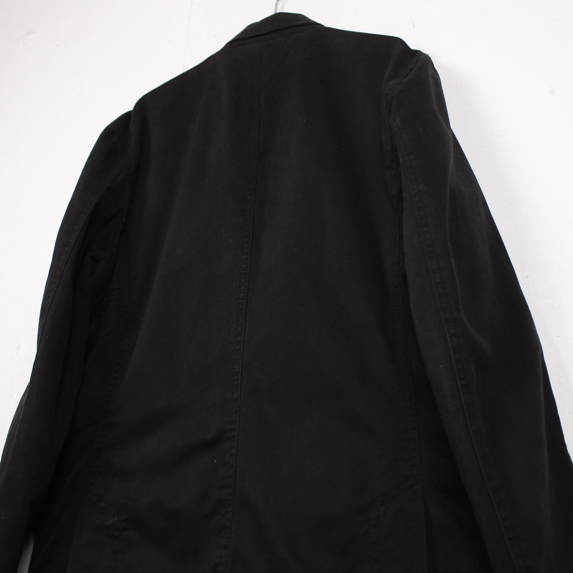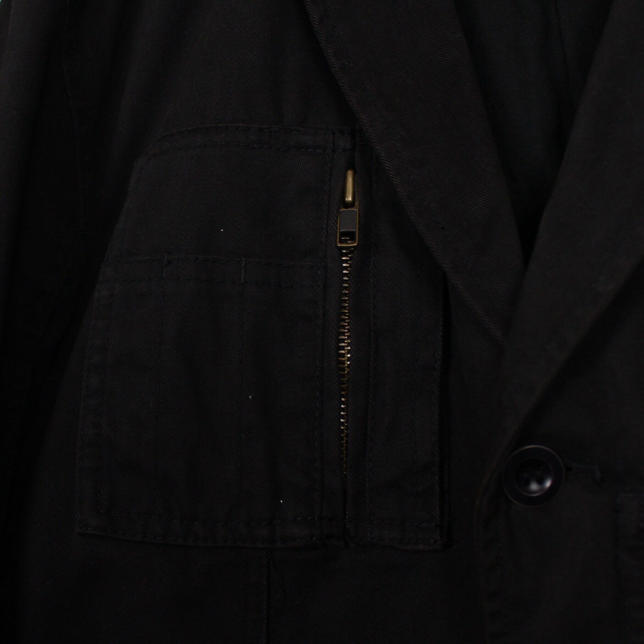 コシのあるブラックのコットンを用いて、多彩なポケットギミックを落とし込んだテーラードジャケット。
