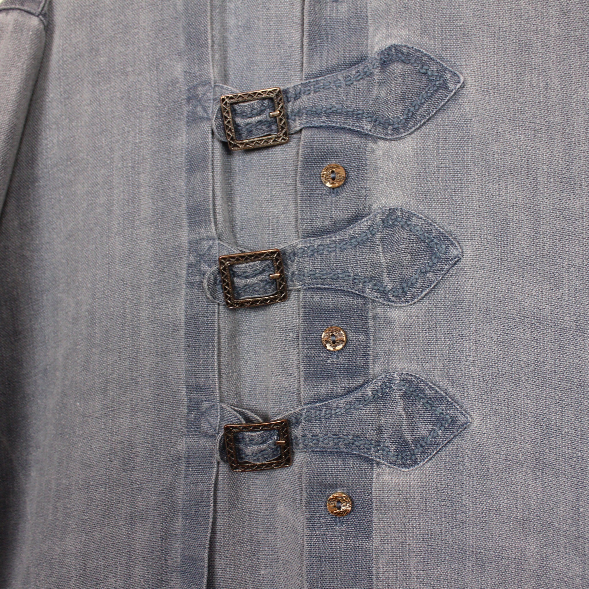 フェード感の良いリネンのボディをベースに、フロントにベルトのギミックを載せた長袖リネンシャツ。
