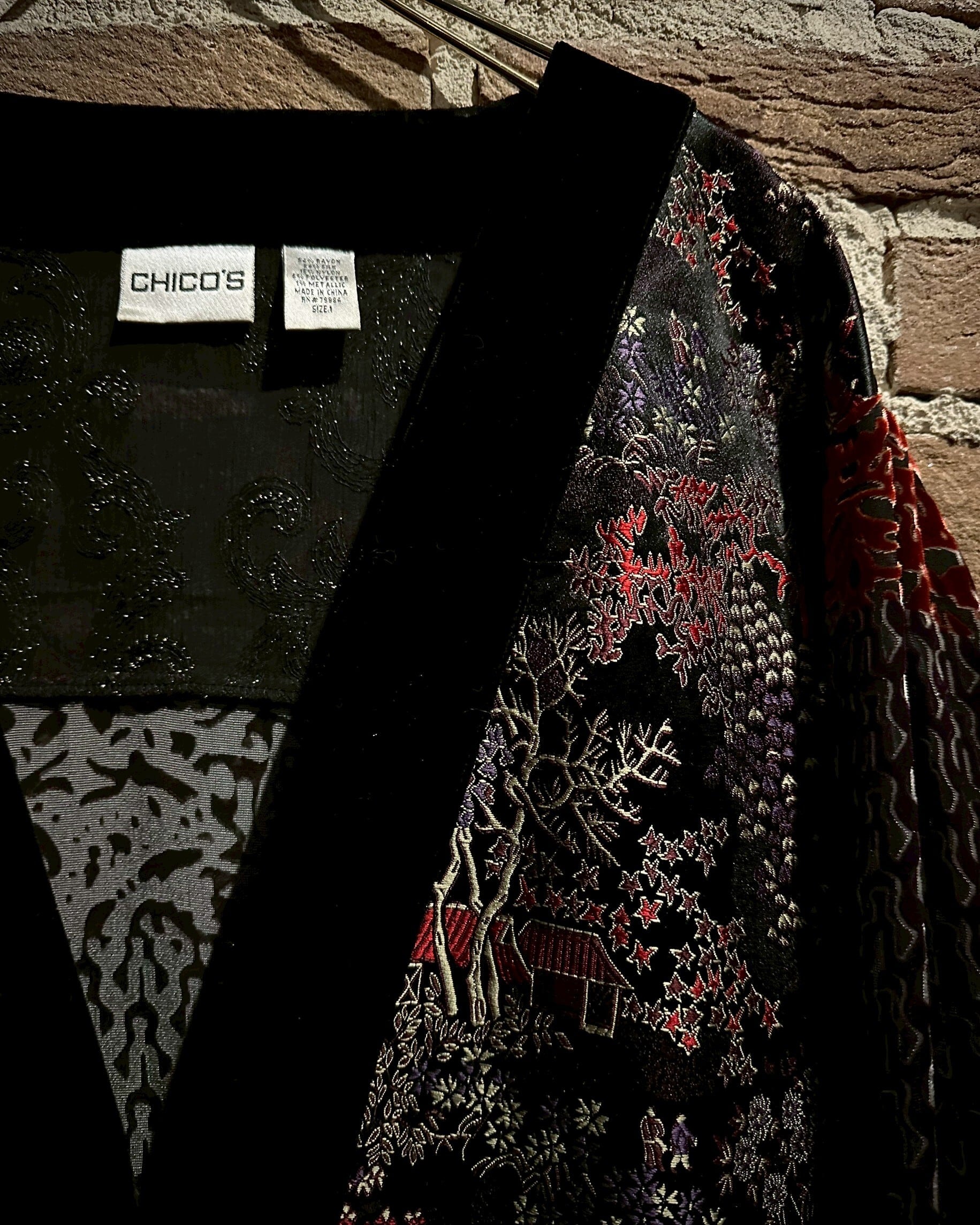 芸術的かつ独創的なデザイン性の高いプロダクトで人気を誇る、アメリカ発のブランド"CHICO'S"より、美しい異素材の掛け合わせから成るスペシャルな1着をご紹介致します。