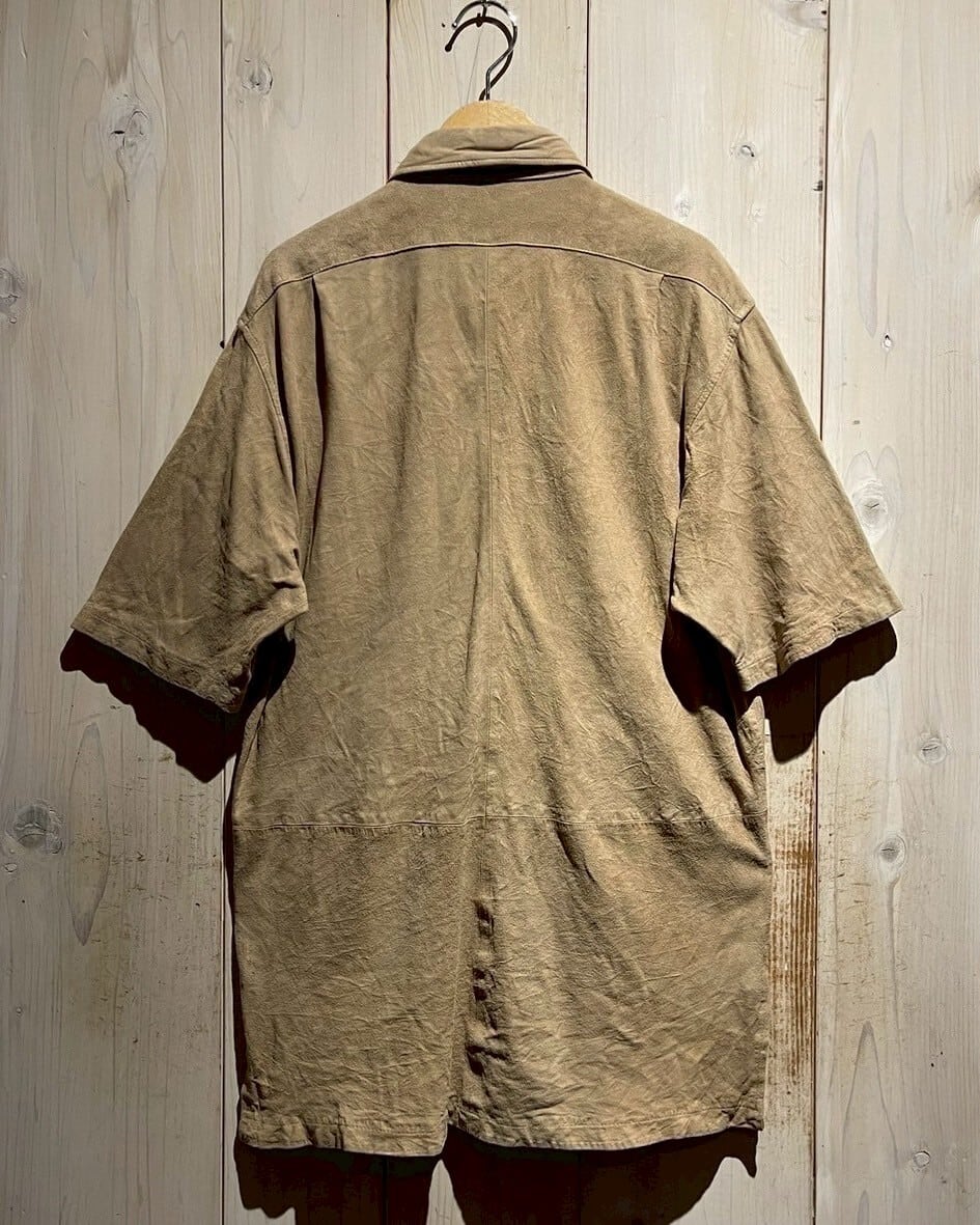ジャケットにはよく使われるスエードレザーでですが、半袖シャツとなると中々お目にかかれないです…
