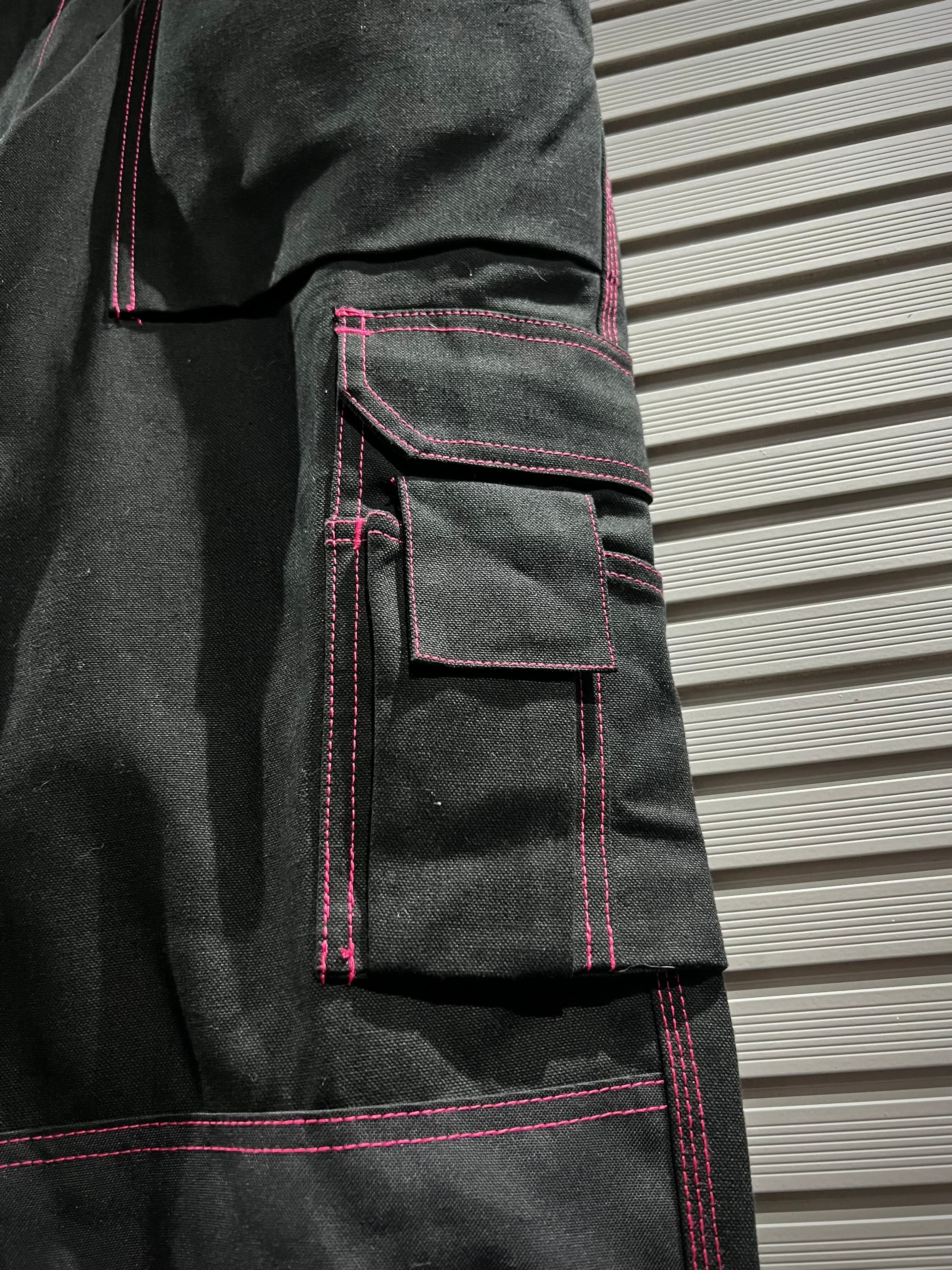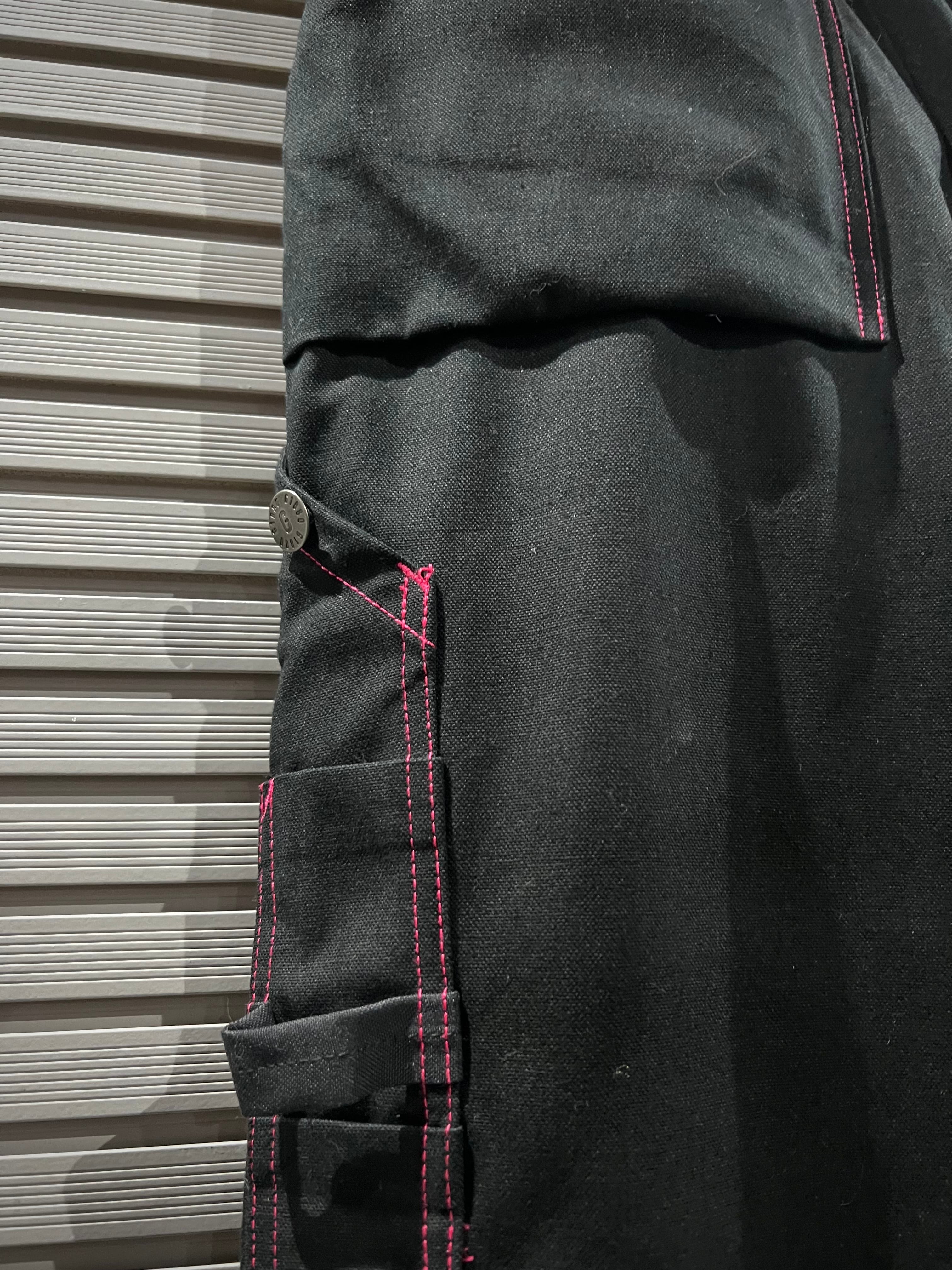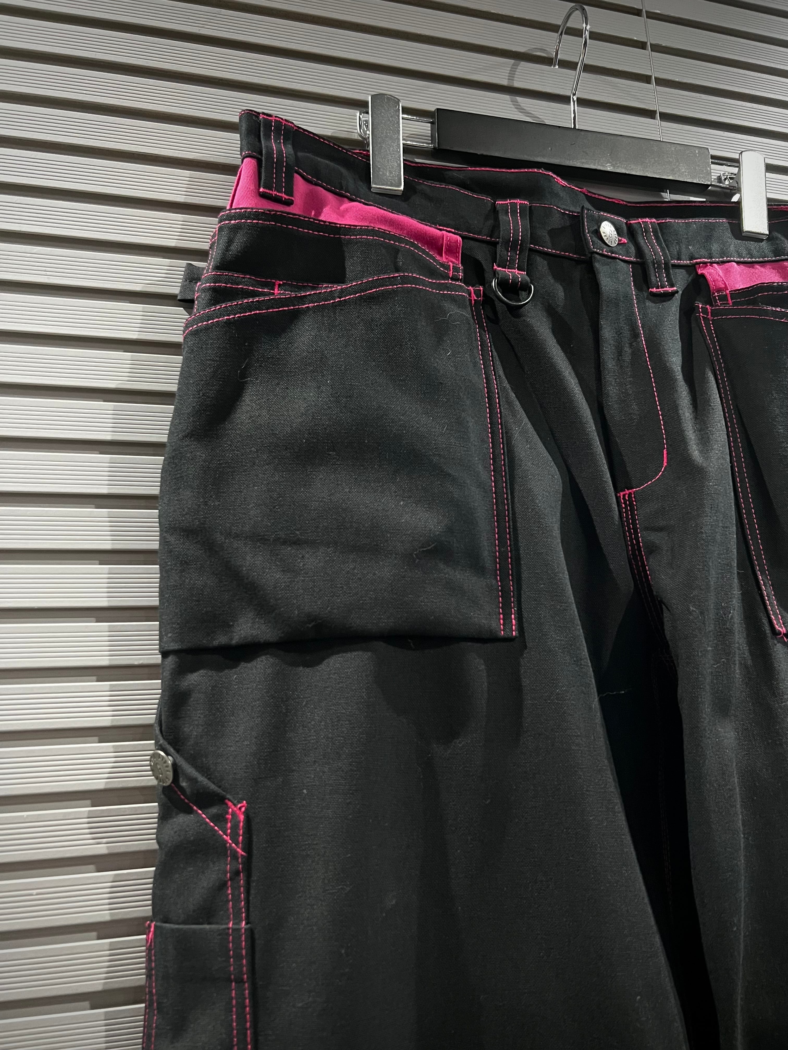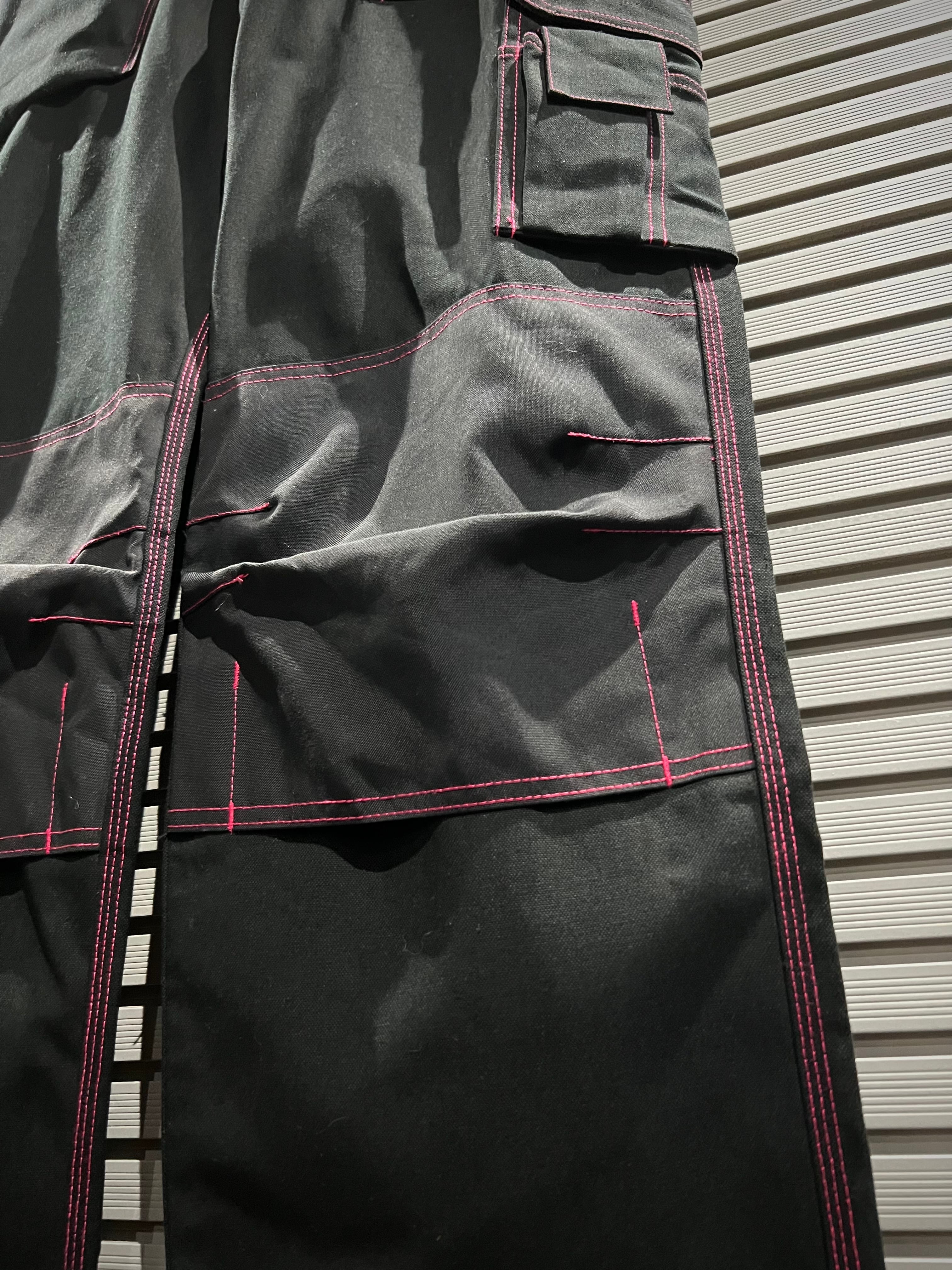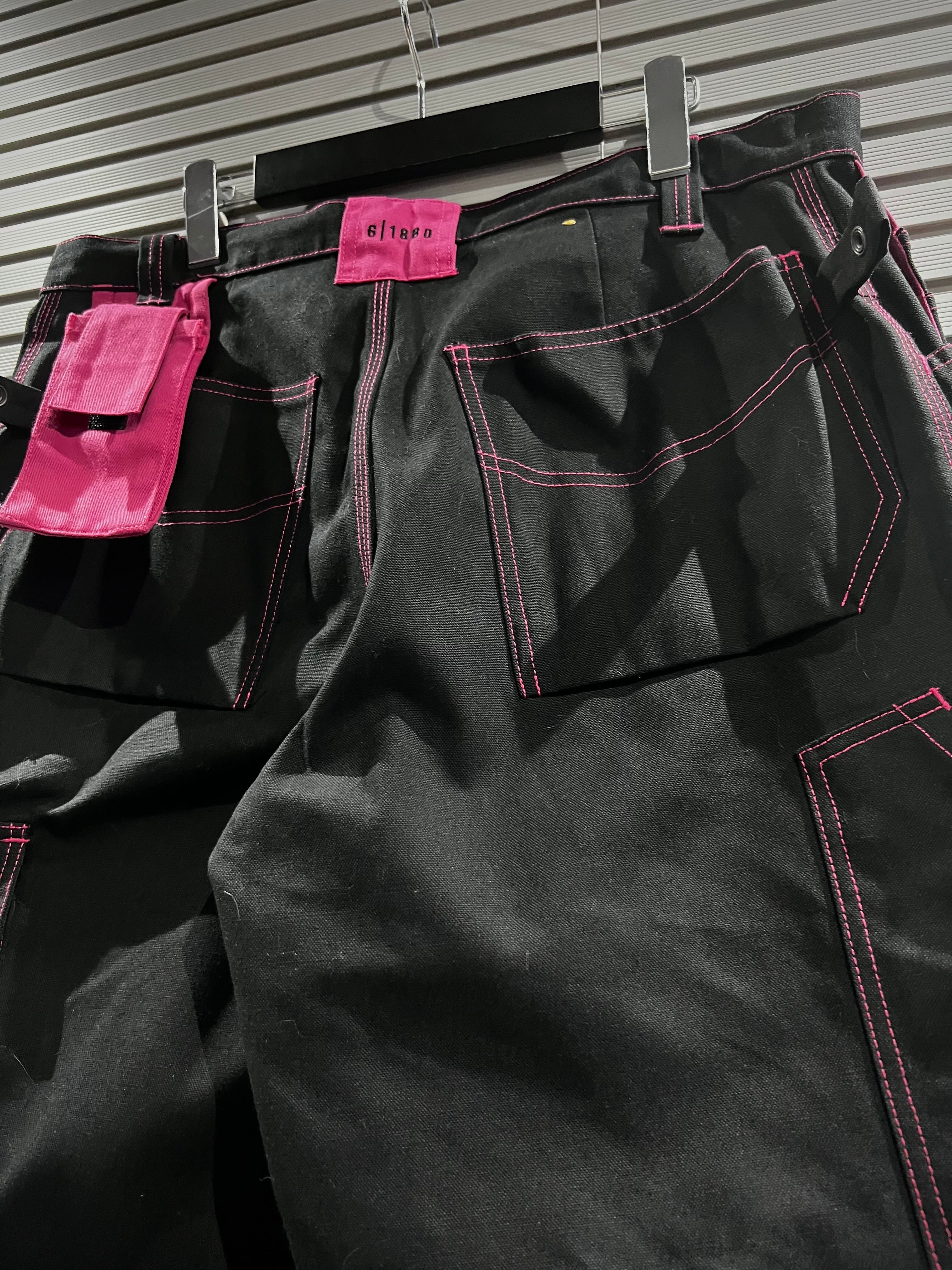 膝部にはダブルニーにに加えダーツを施し、着用時に立体感のあるシルエットを演出し、随所にはピンクのステッチを走らせることでシルエットを更に引き立てた秀逸なデザインも非常に素晴らしいですね、、、