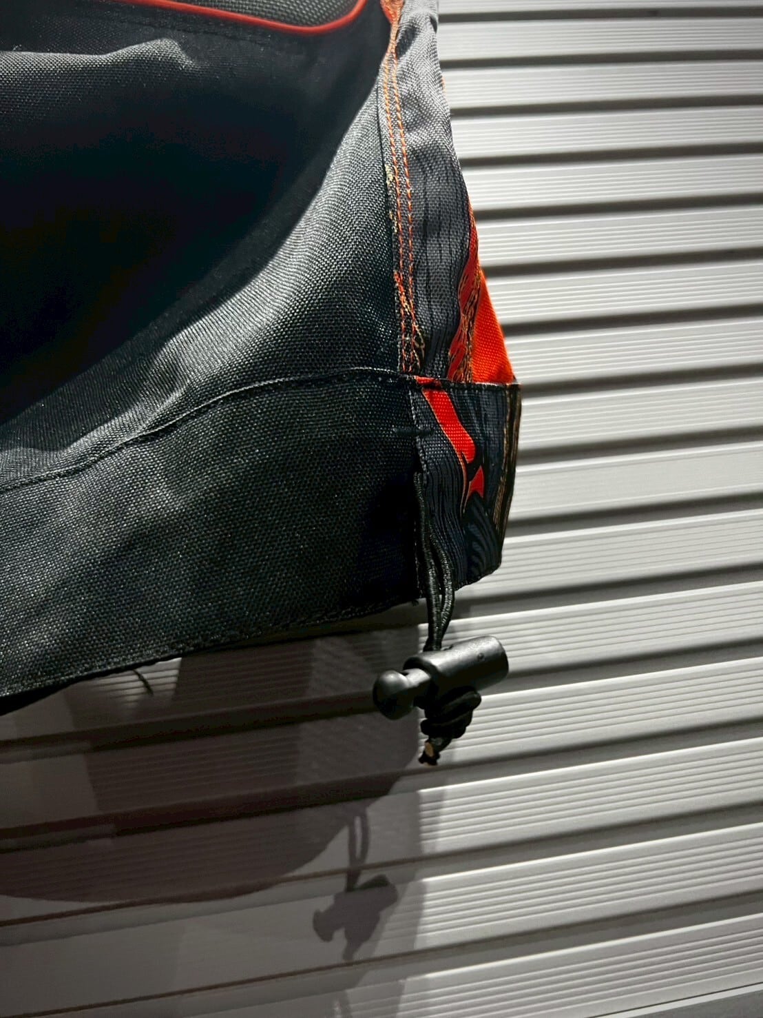 切り替え部分のパイピング、大胆に載せられたブランドロゴパッチ、オレンジ×黒のカラーバランスなど存在感を抜群に放つ仕上がりに。