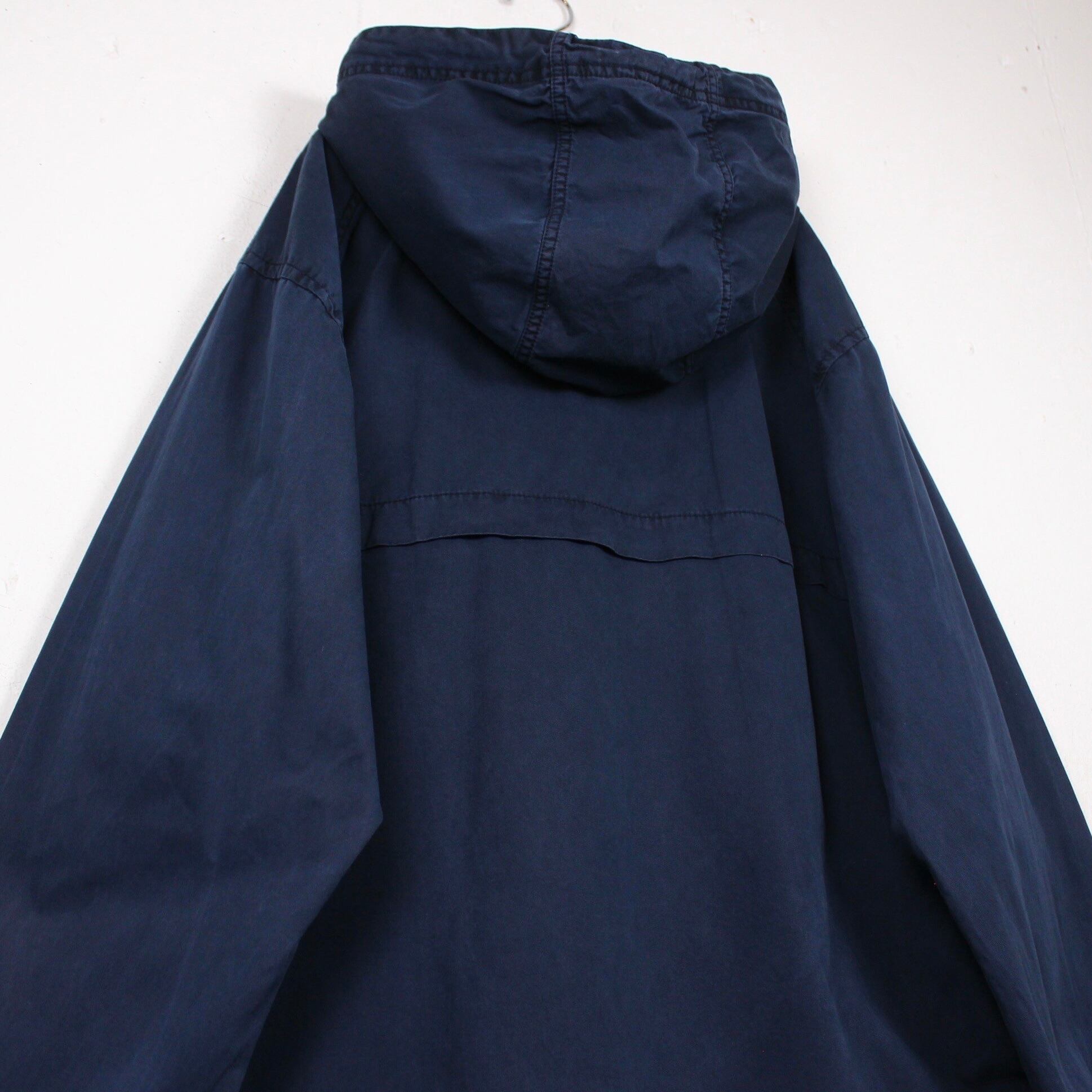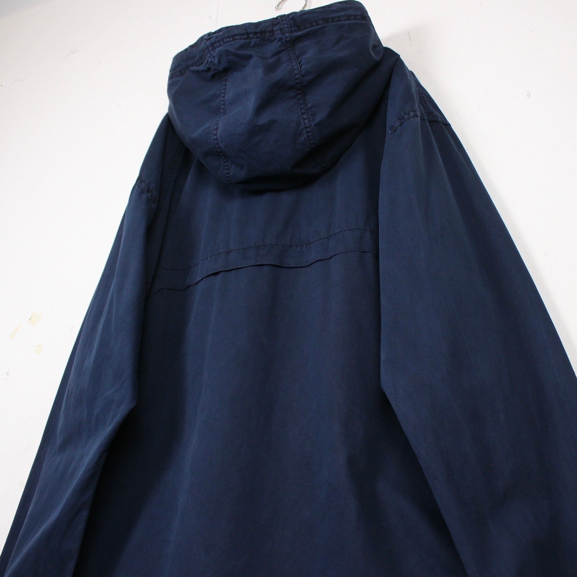 フェードの効いたネイビーのコットンボディをベースに、特徴的なディテールが随所に載せられたアノラックパーカー。