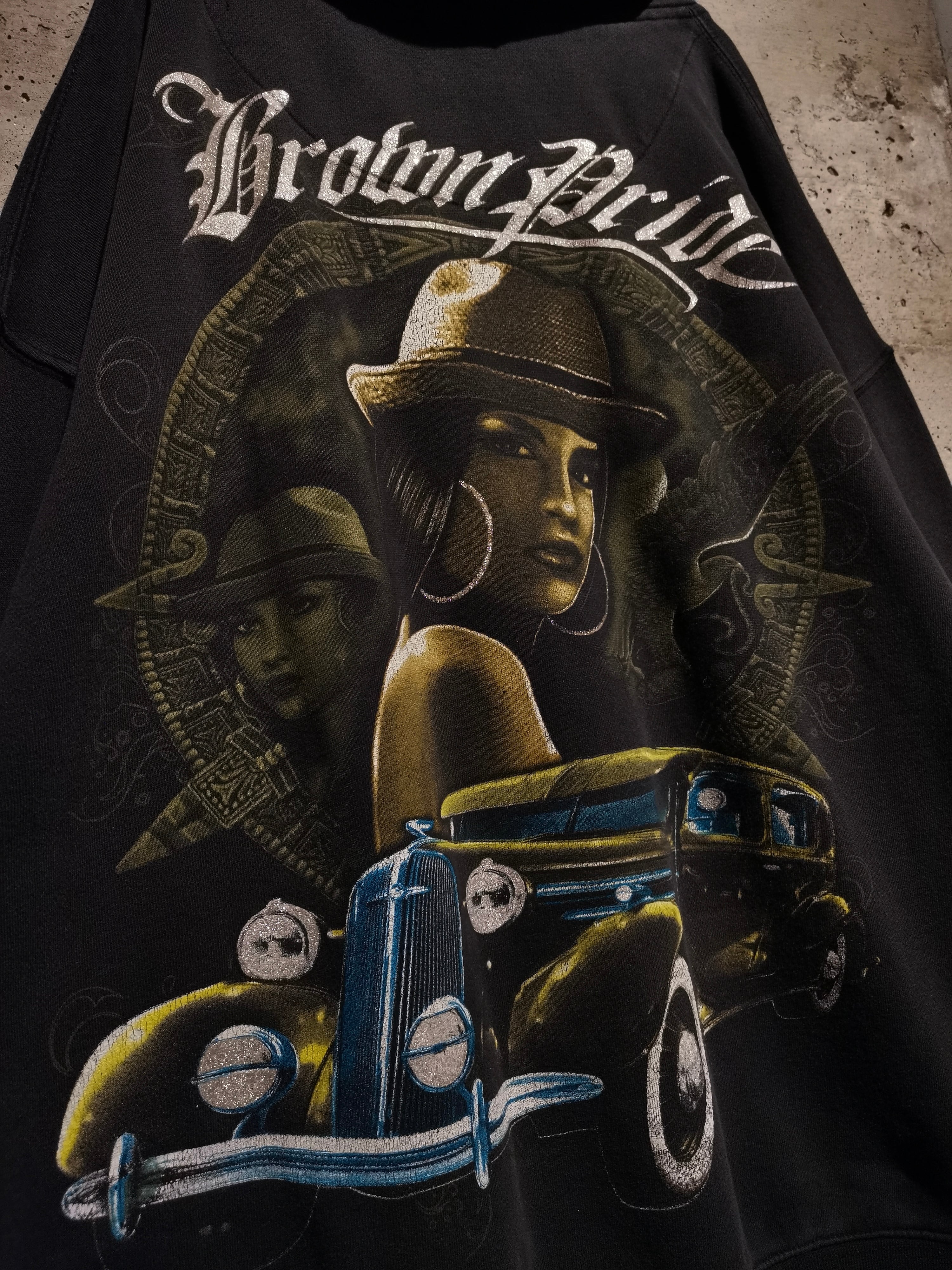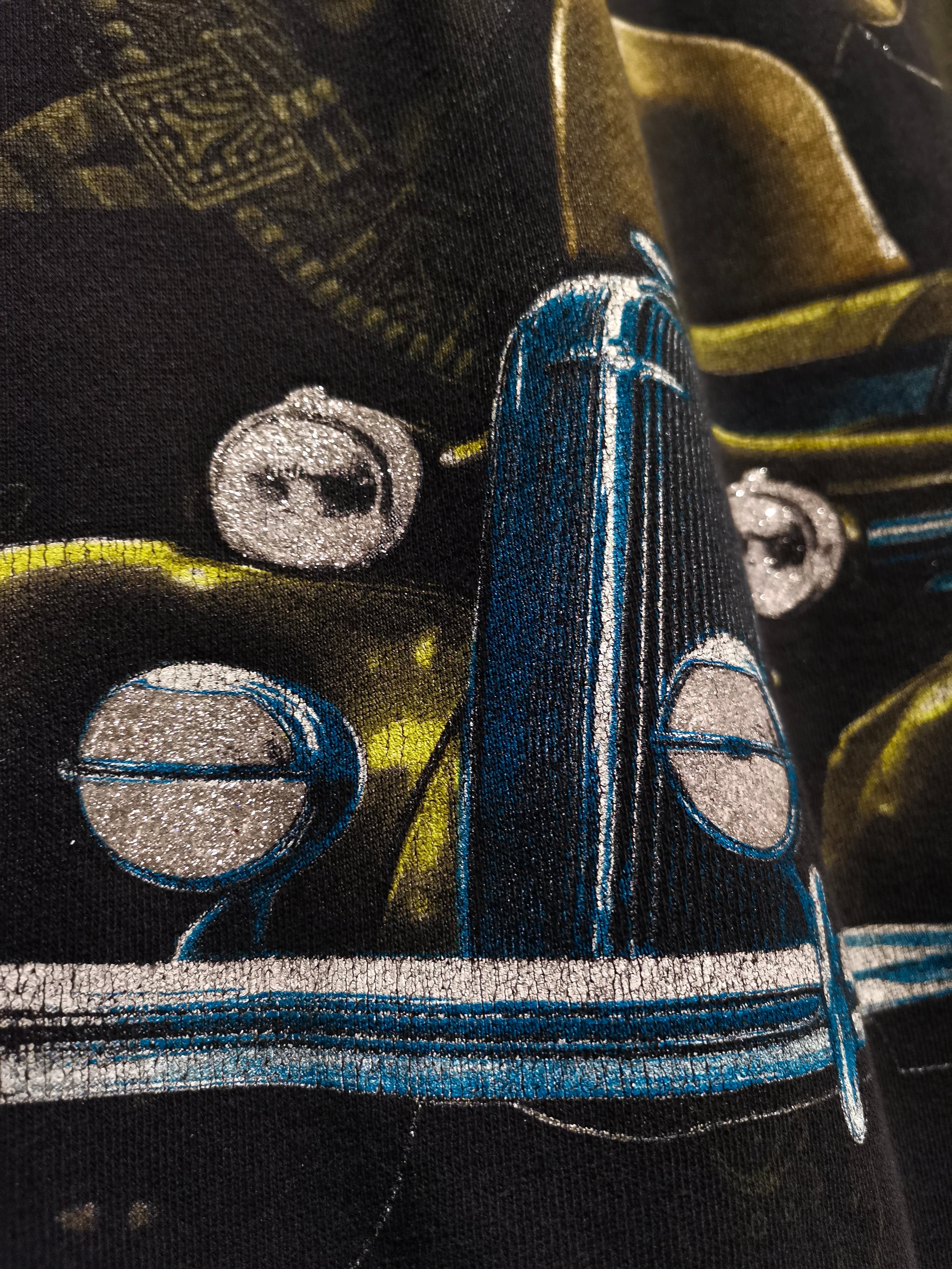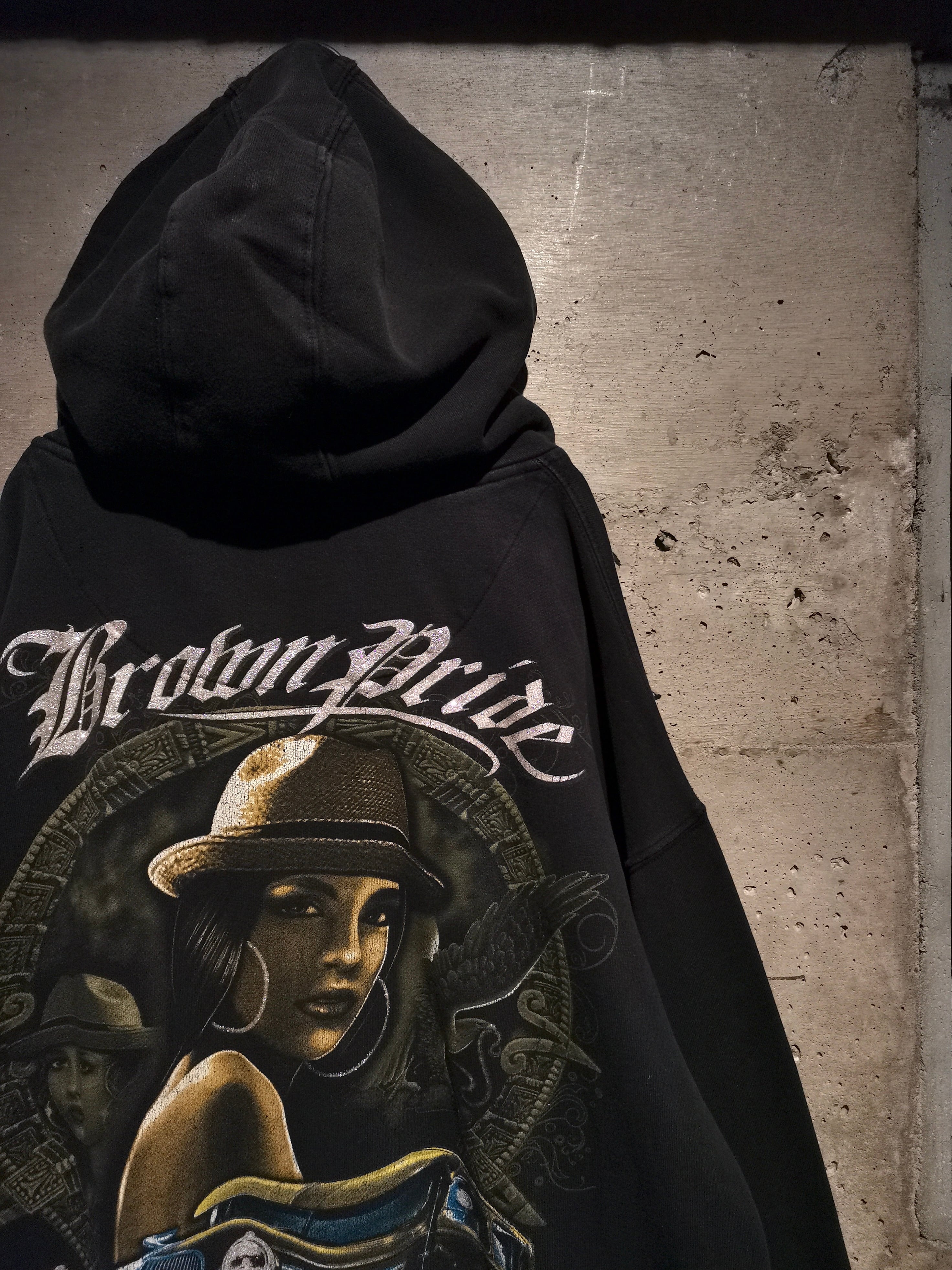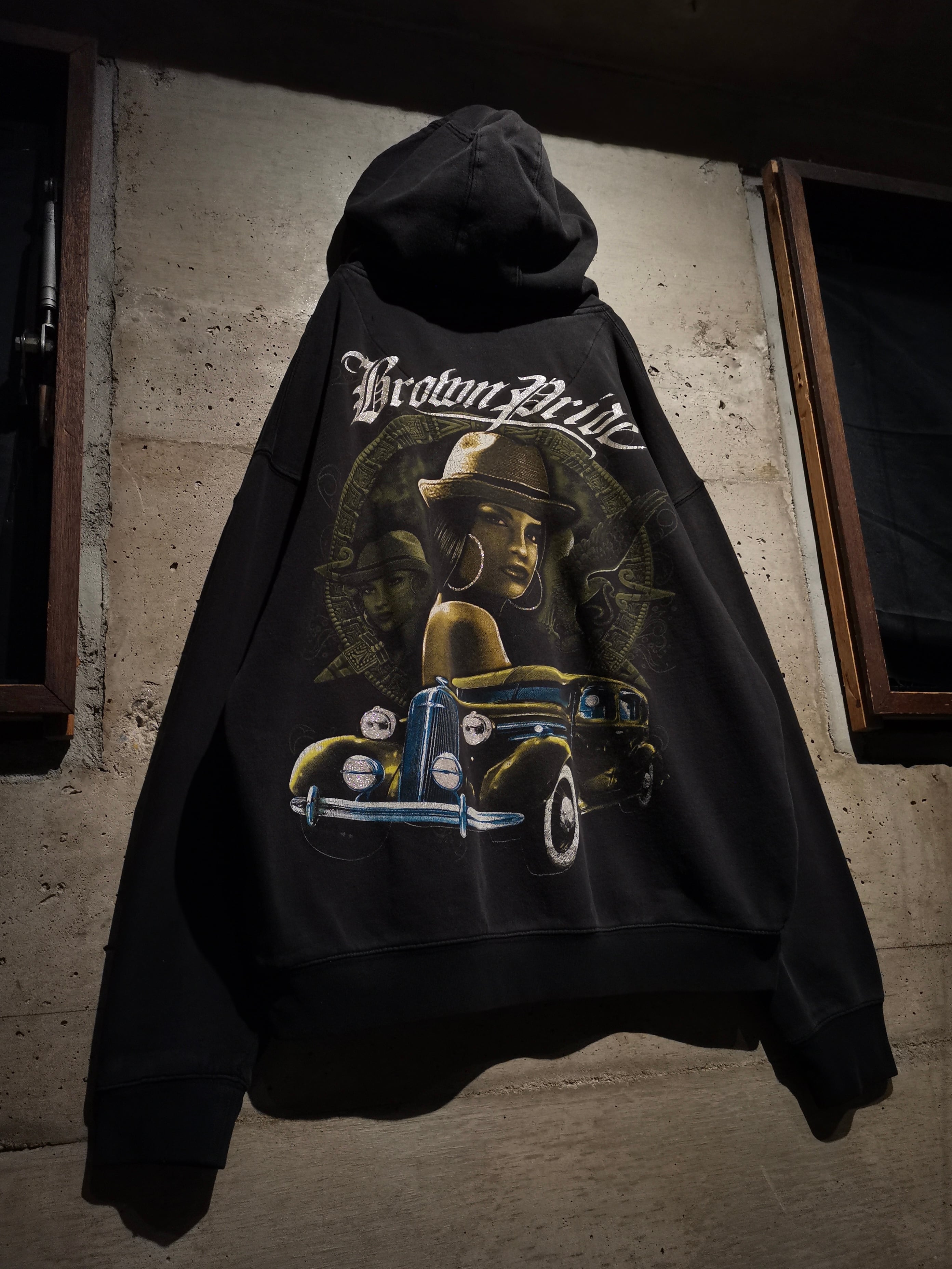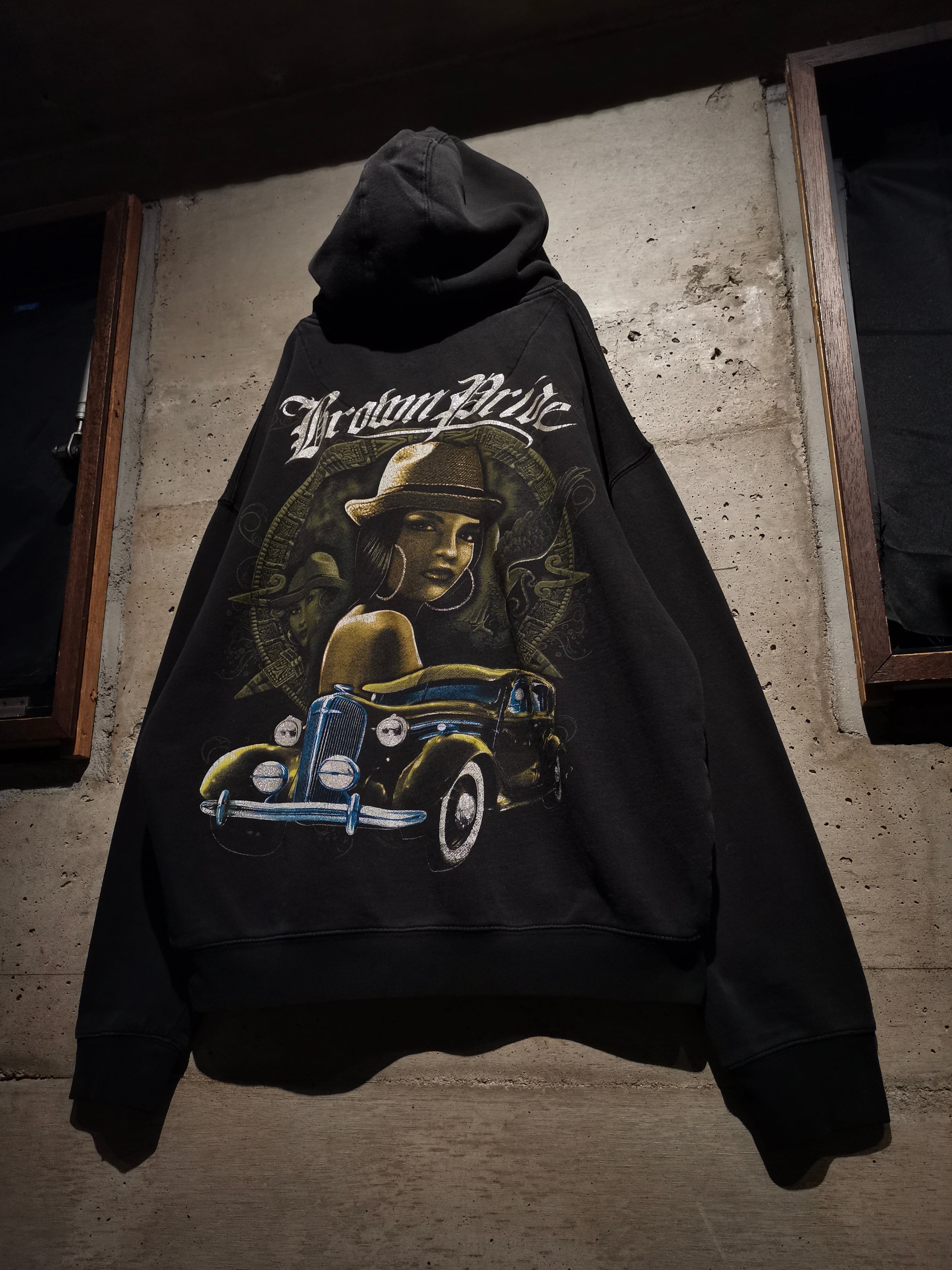 サンフェード等経年変化による美しい風合いを見せるボディに、ローライダーのプリントを前背面に載せた1着。