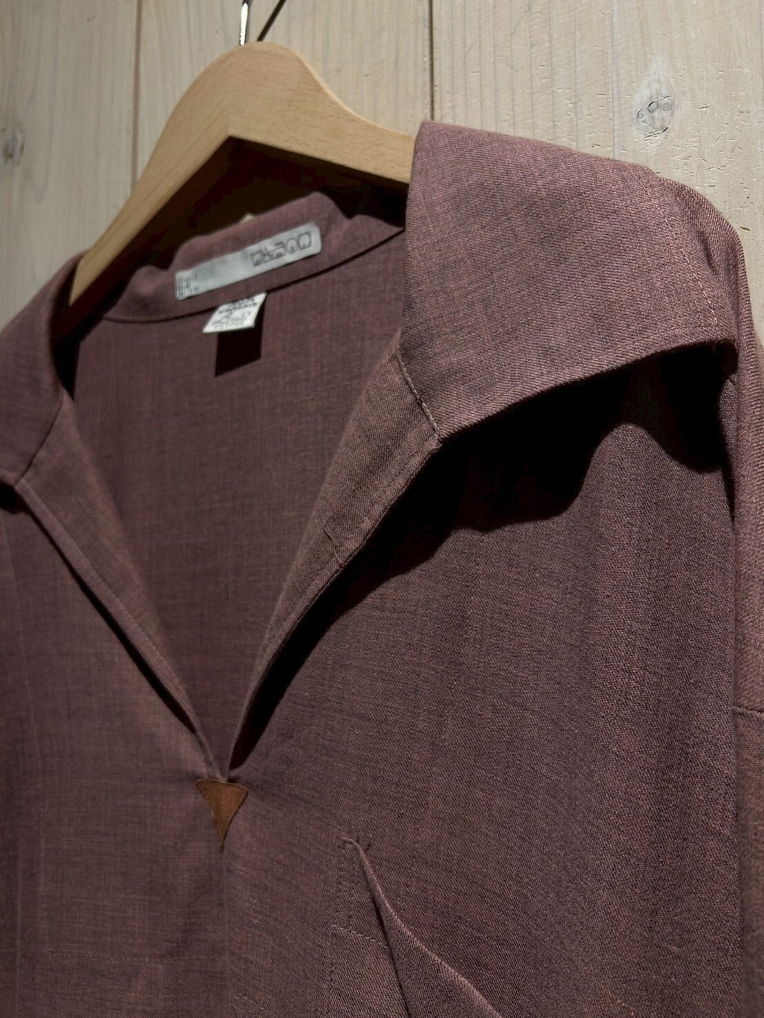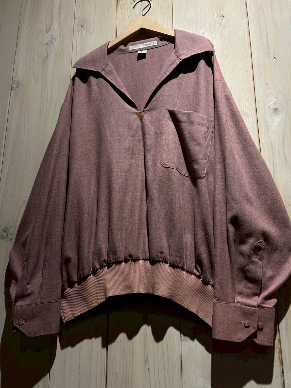 肌触り柔らかなコットンとウールを用いて、スモーキーピンクに仕上げたスキッパープルオーバーシャツ。