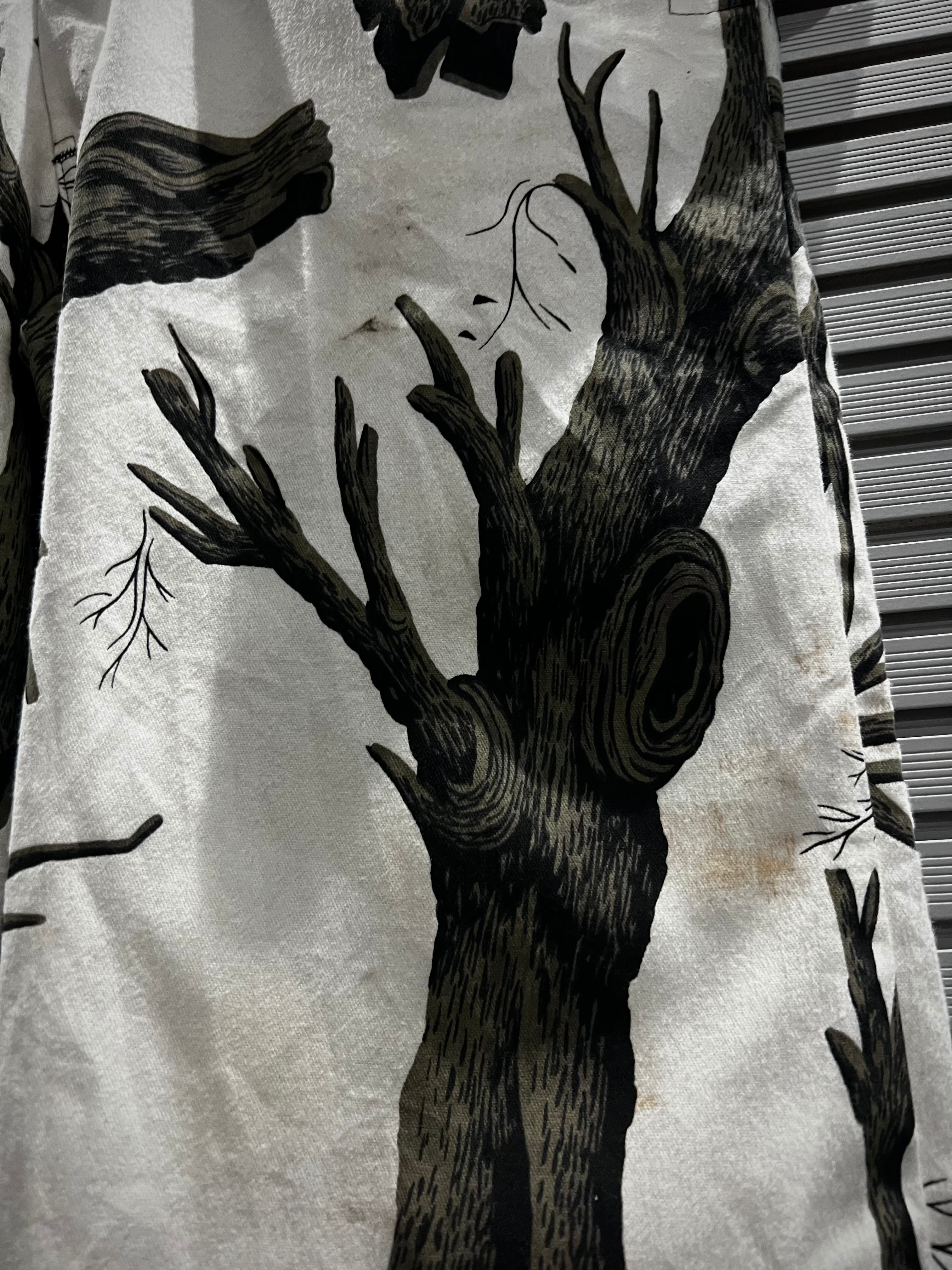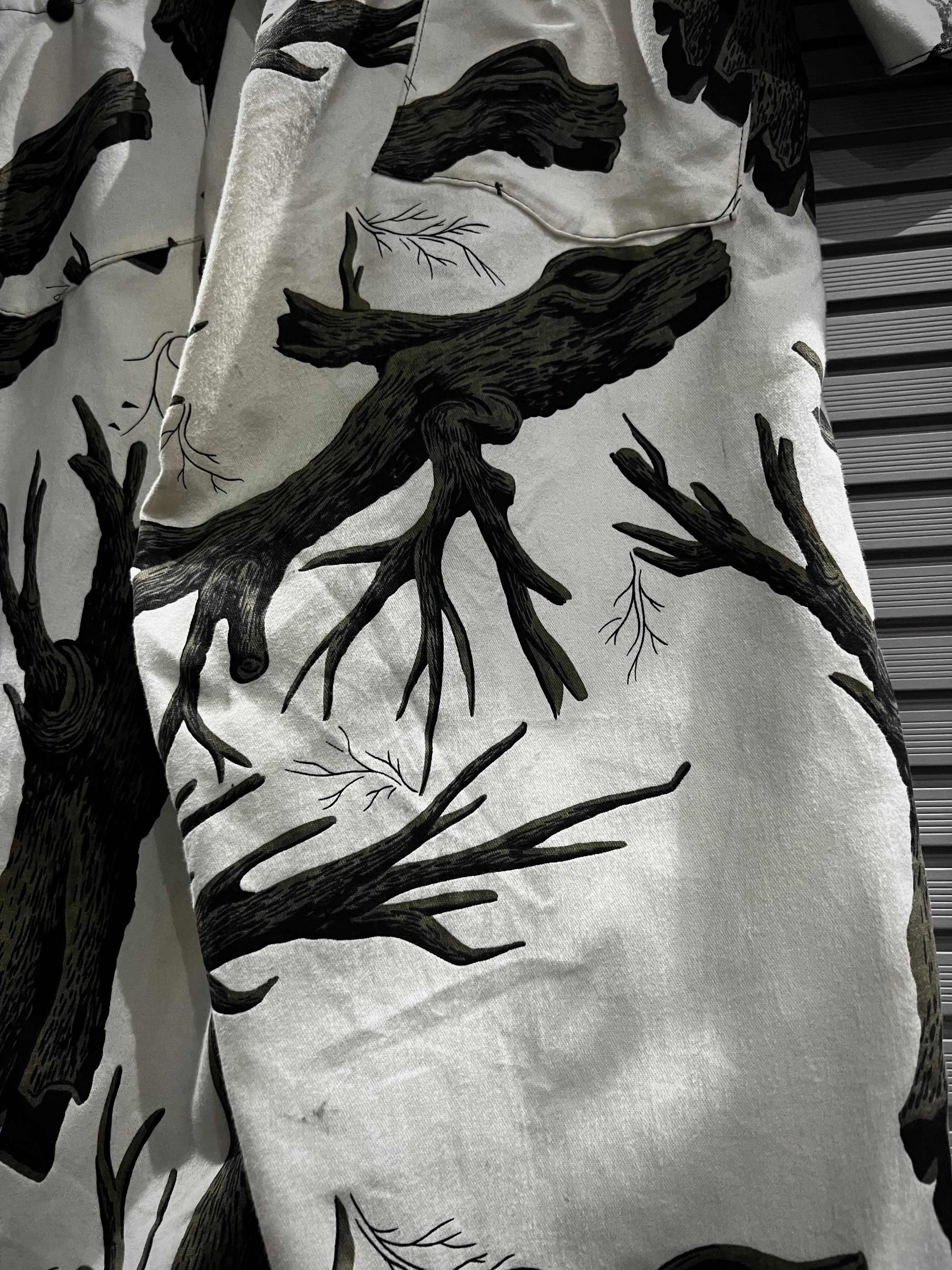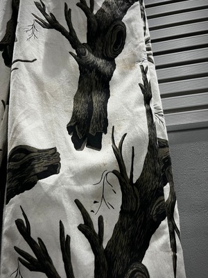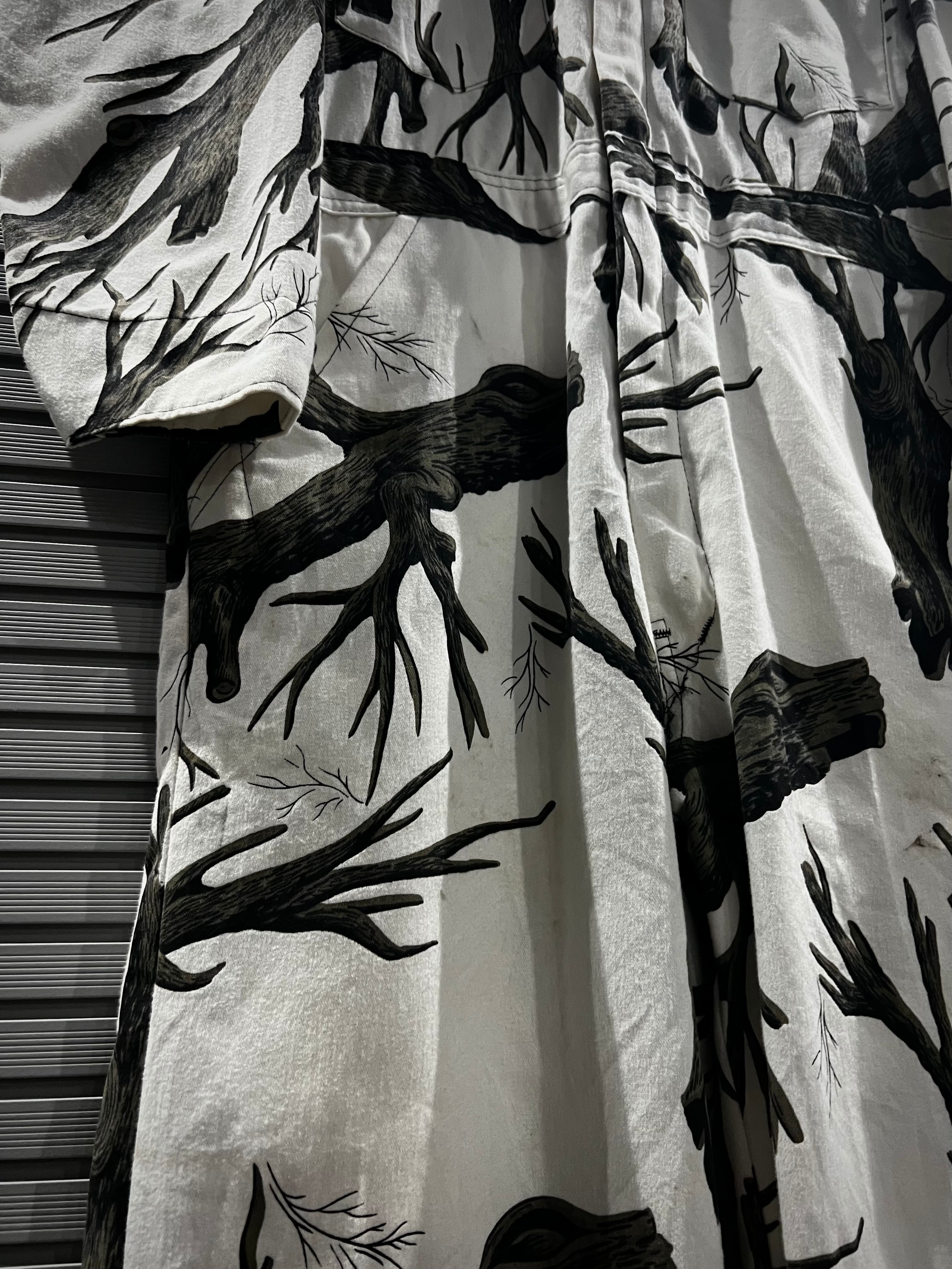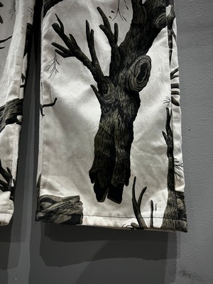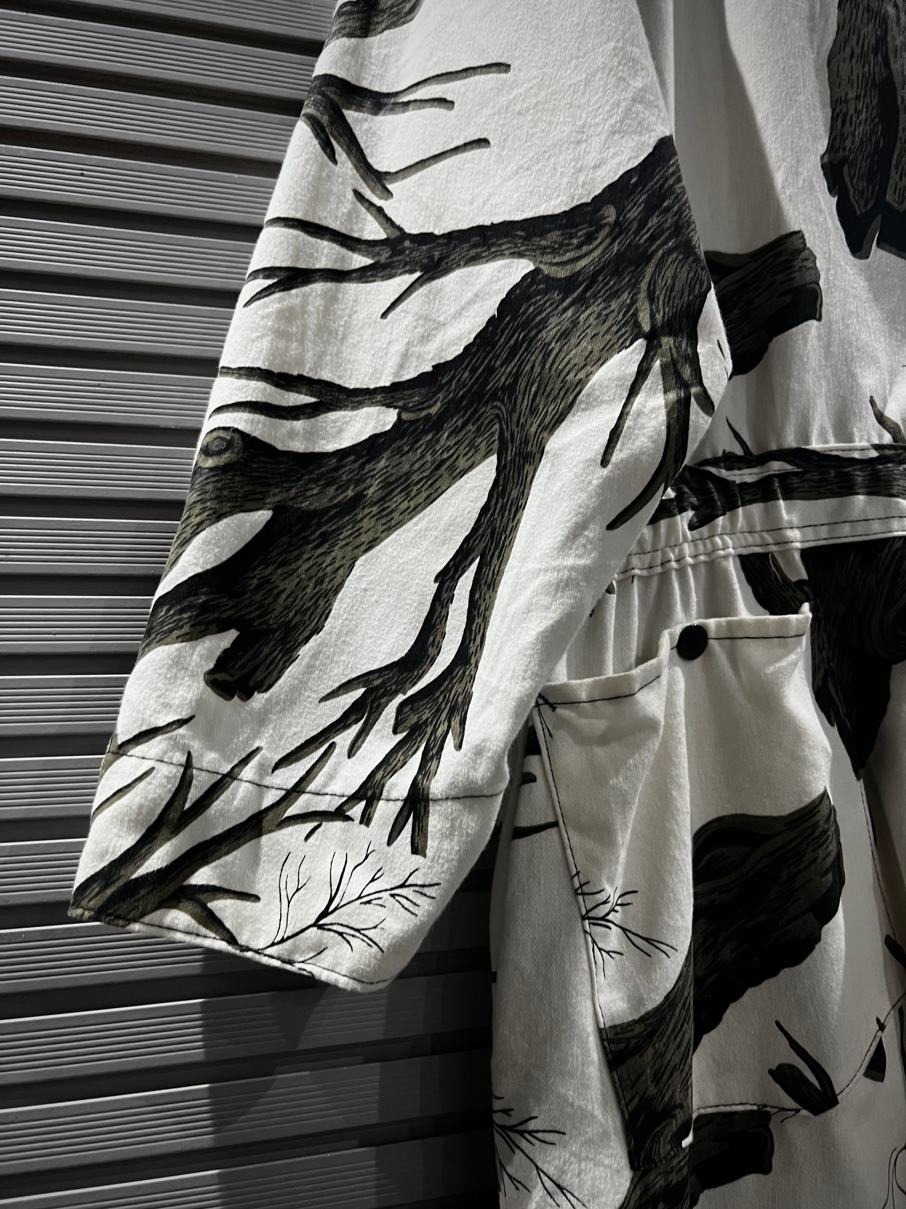 ホワイトベースにリアルな木と立体感のあるデザイン。両胸にはポケット、フロントは比翼仕立てとデザインを引き立てるディテールも素晴らしいですね。