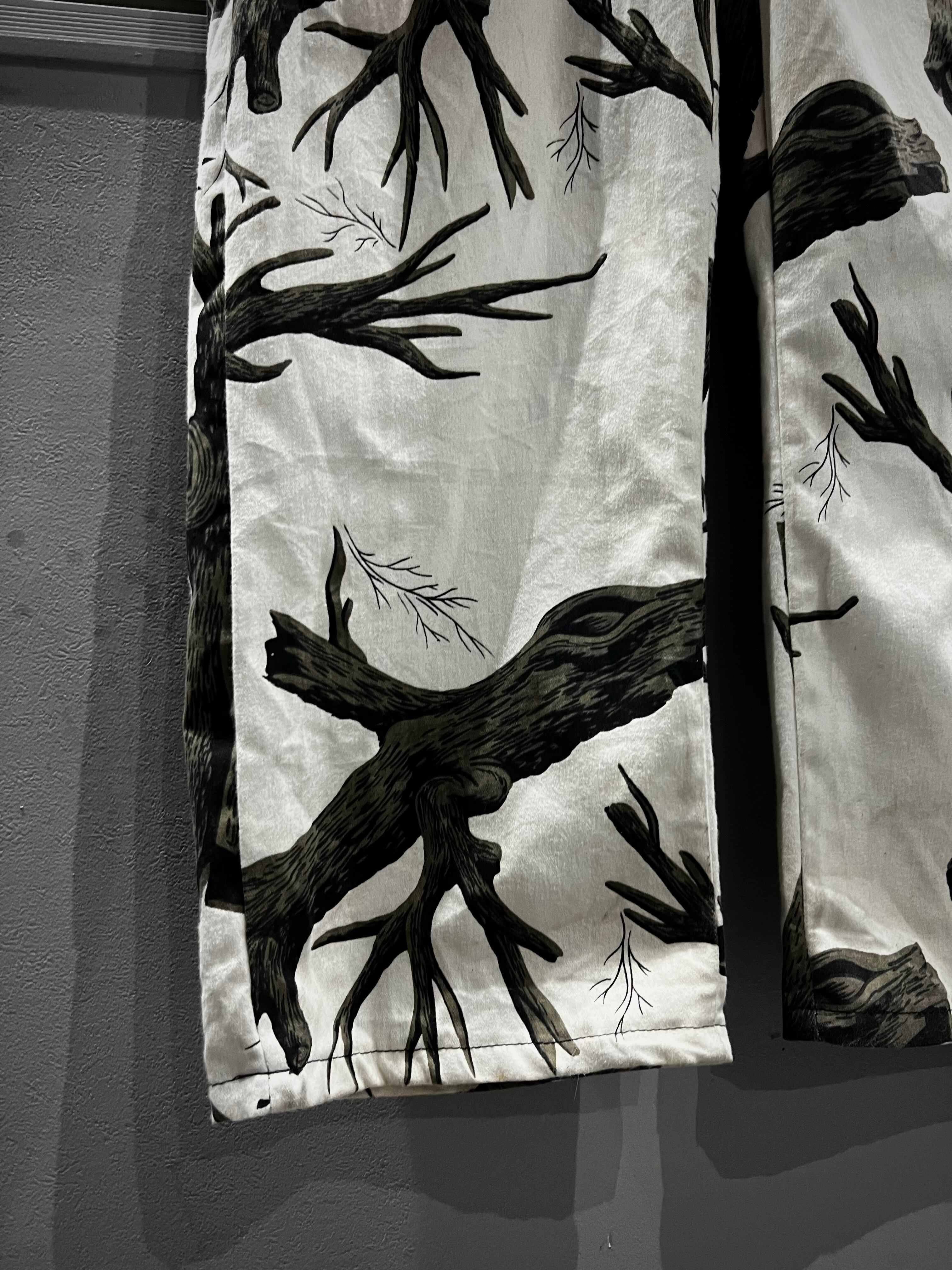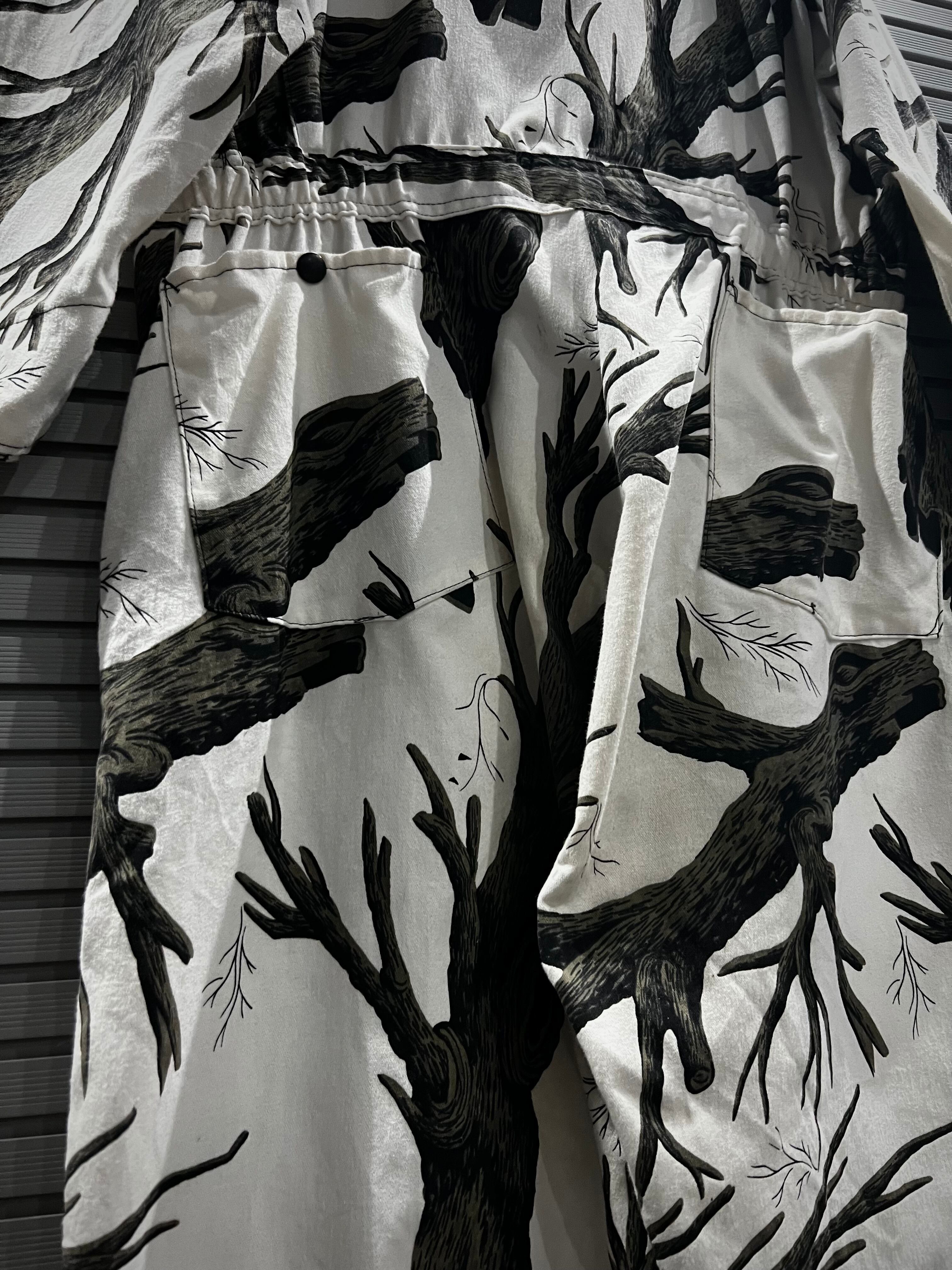 タフかつコシのあるボディに、リアルツリー柄を載せたジャンプスーツ。