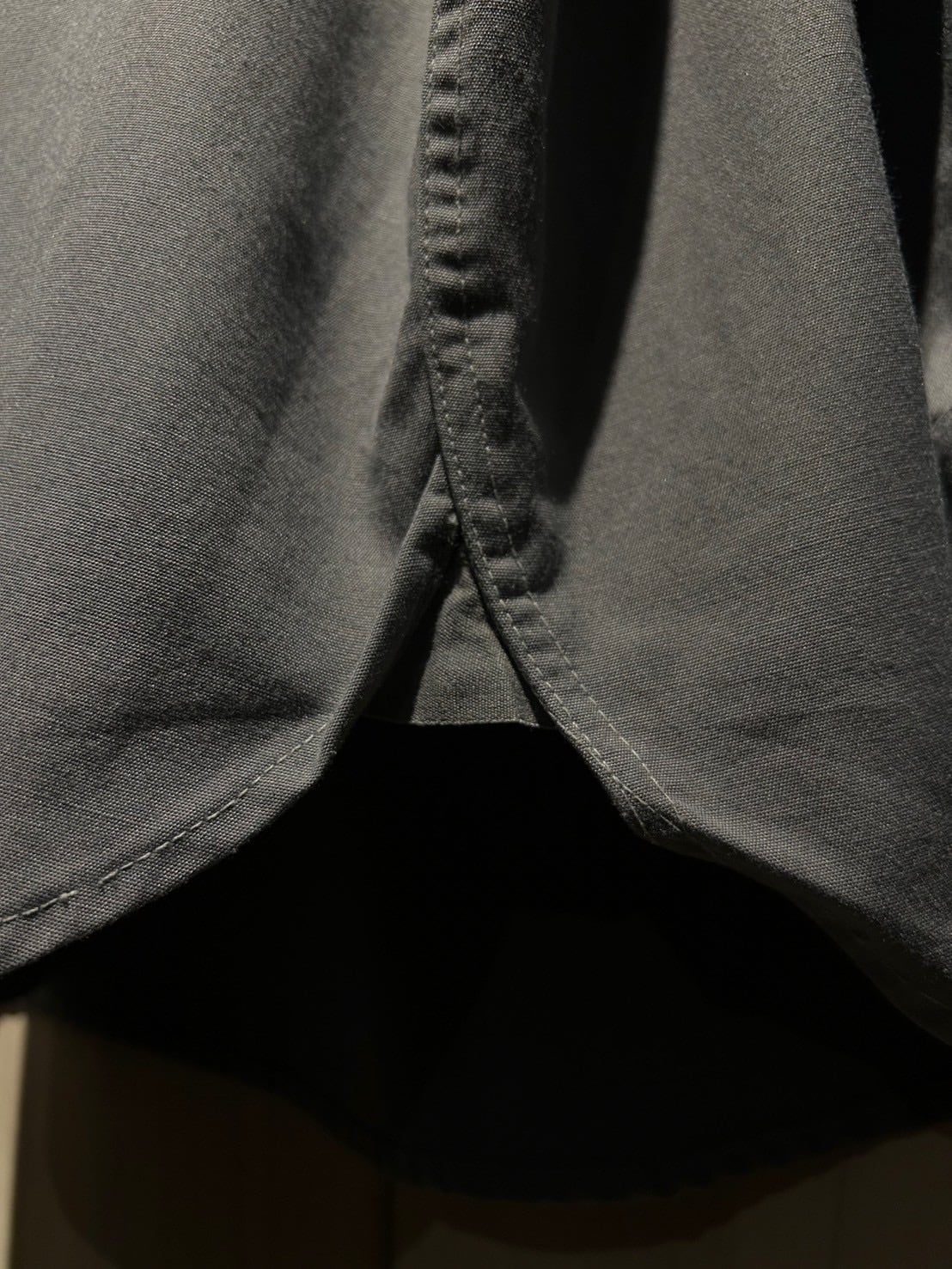 着心地も非常〜に良くハリ、落ち感を兼ね備えた着用時のシルエットが美しい、、、裾の緩やかなラウンドカットも全体のバランスを引き立ててくれます。