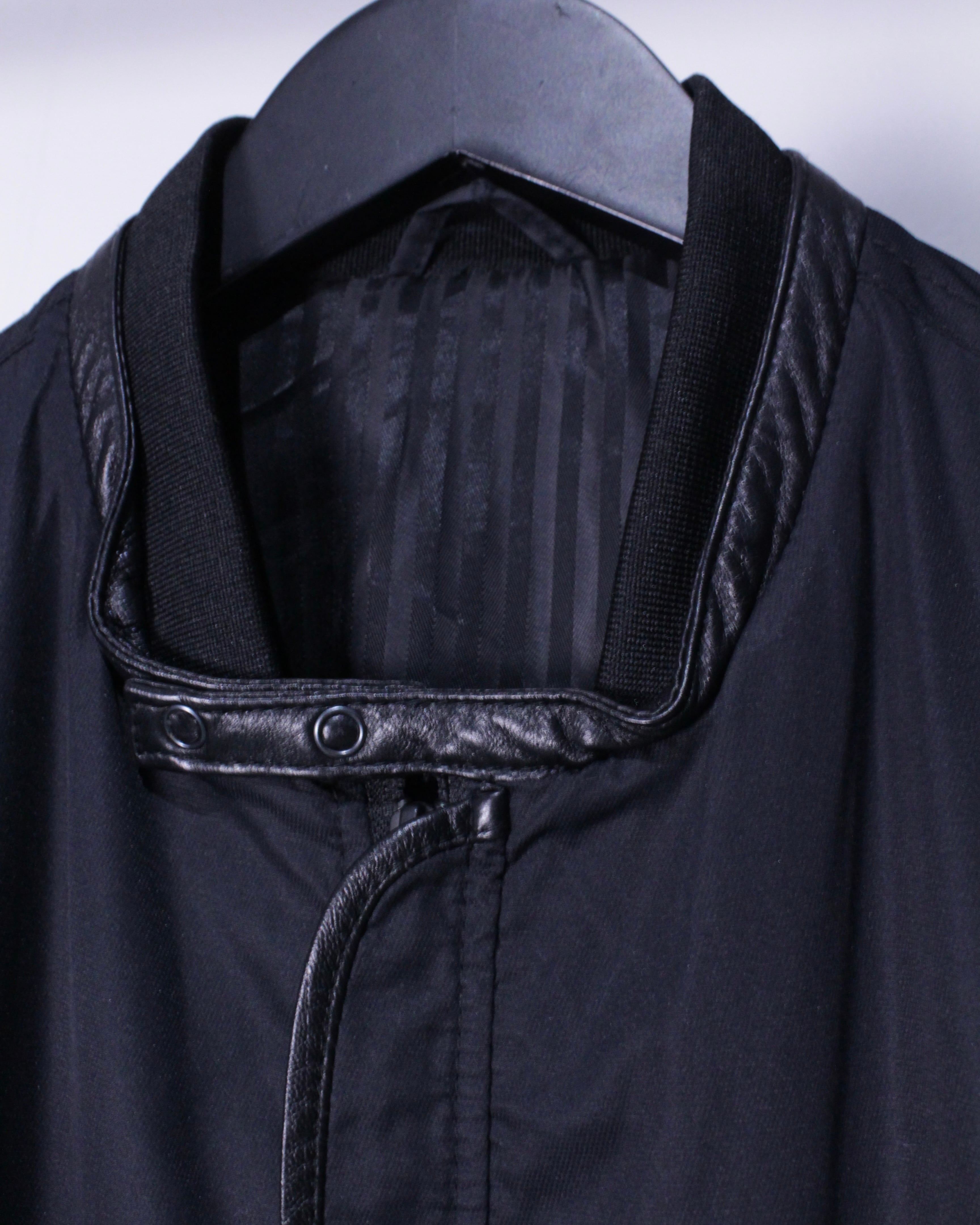 前立て、襟の部分にもレザーが切り替えられており、細部まで抜かりの無い高いデザイン性を持ち合わせたクオリティハイな1着。
