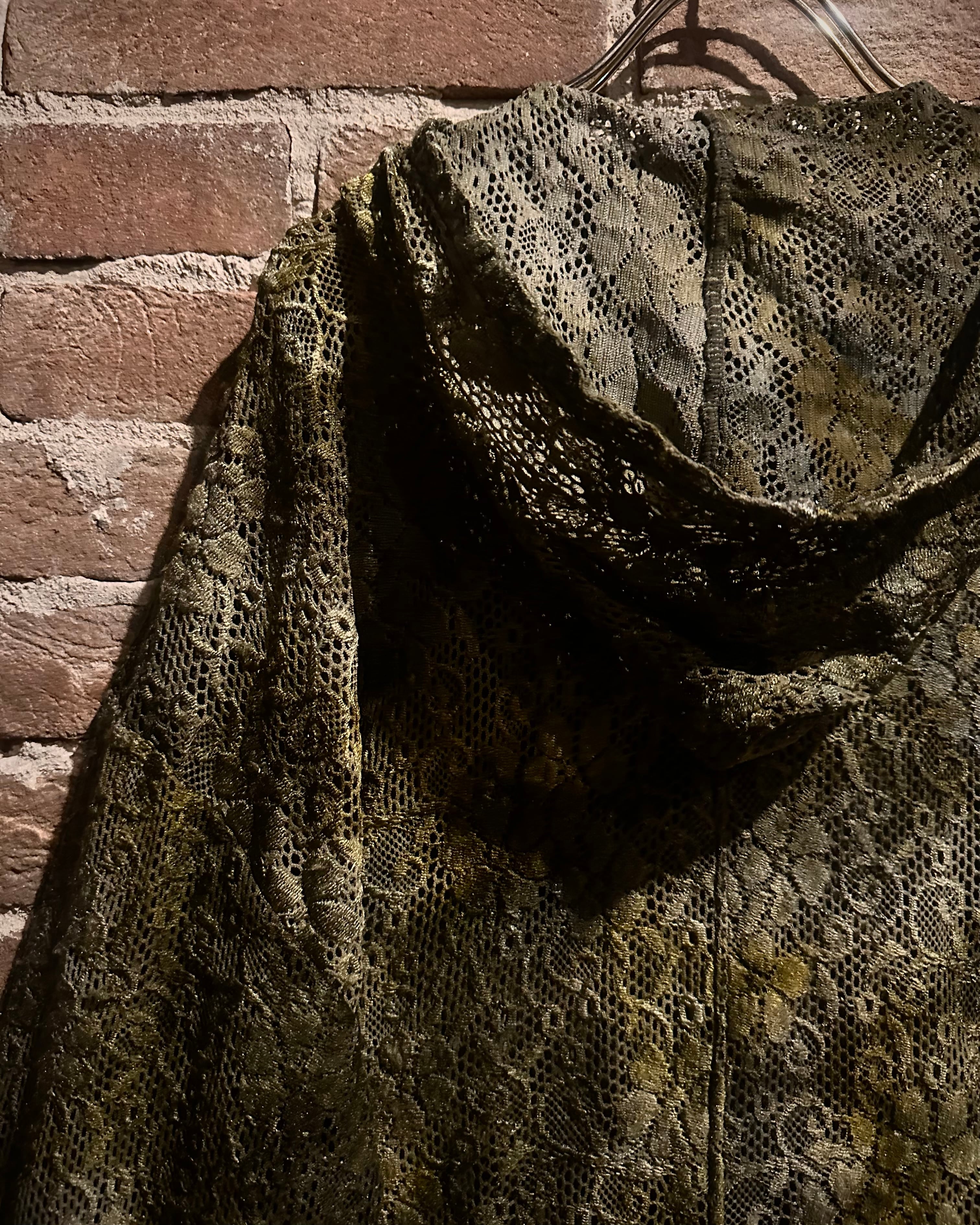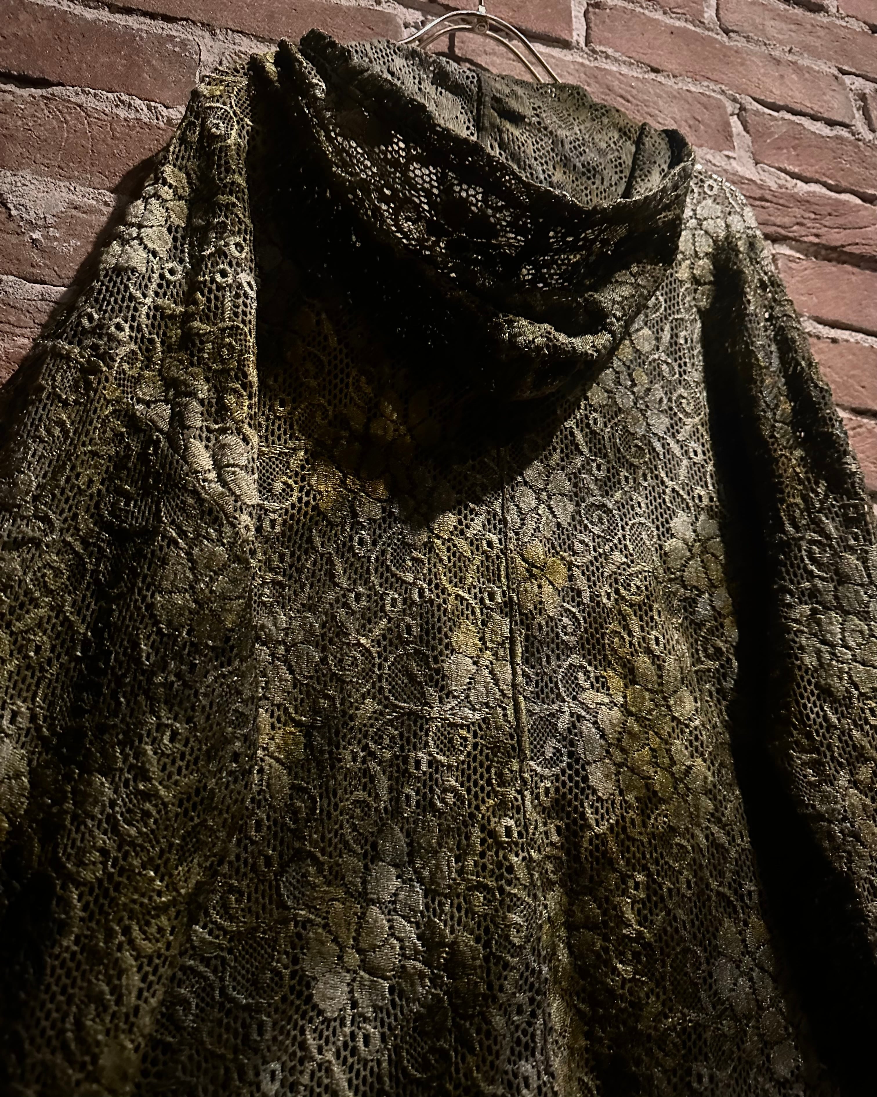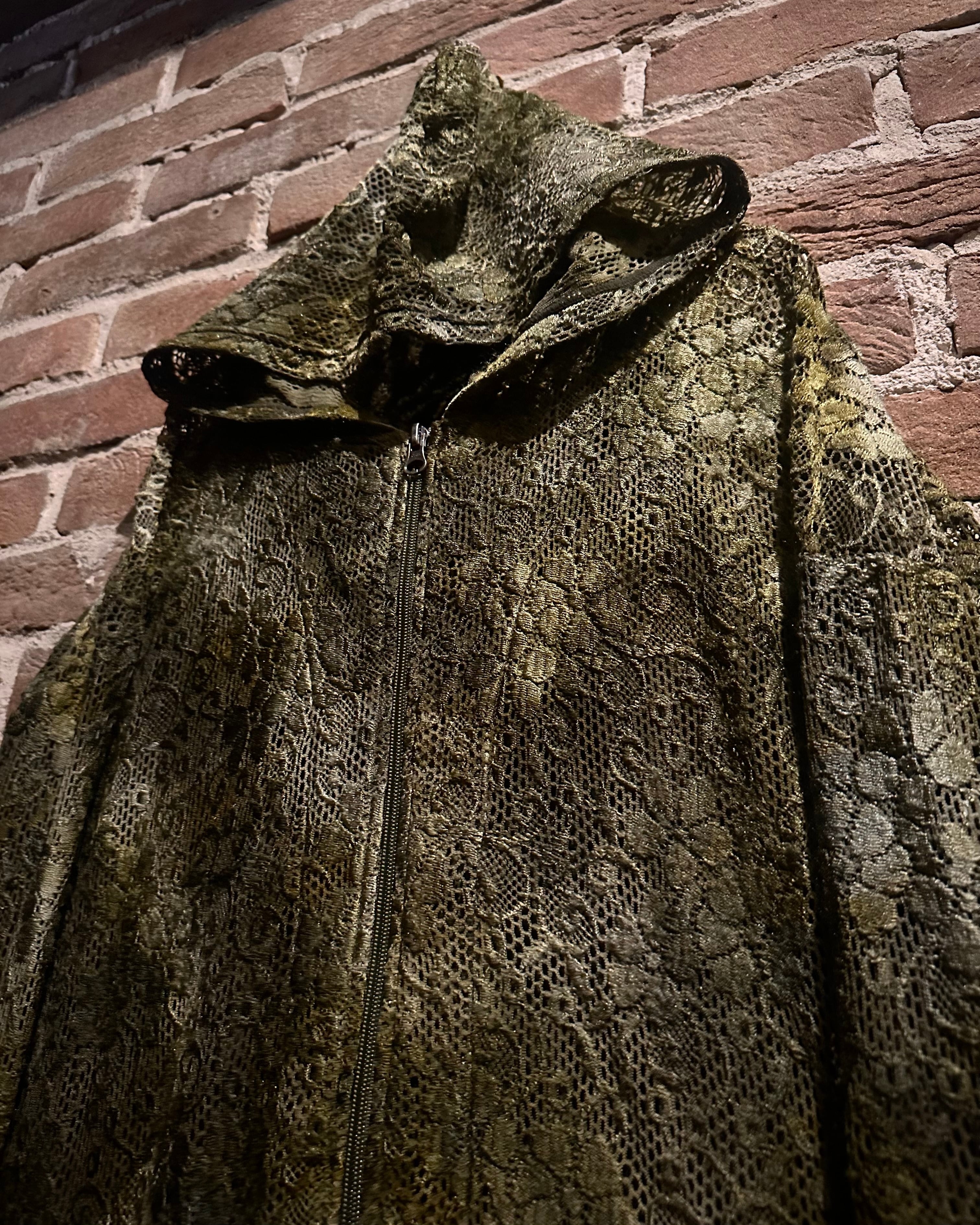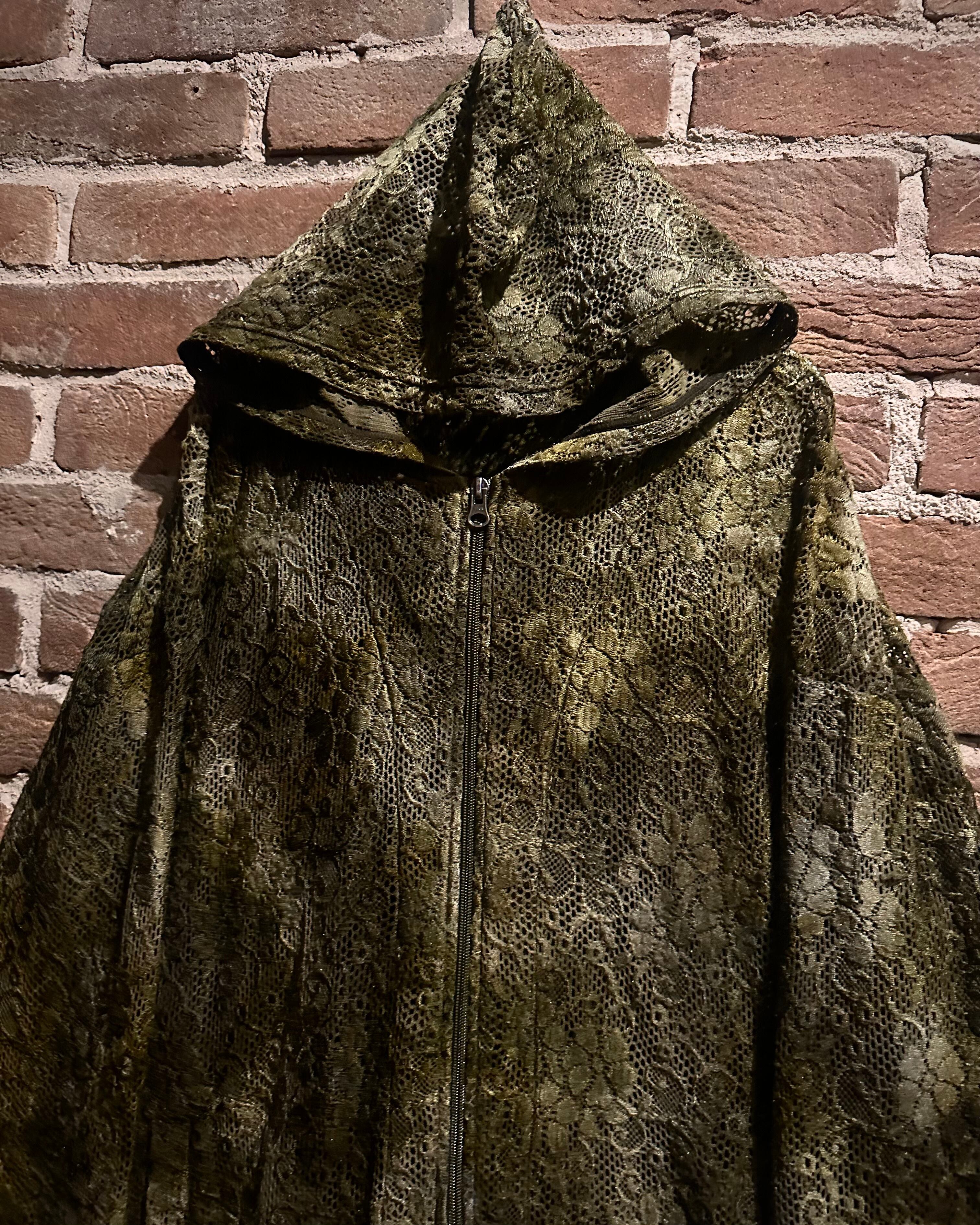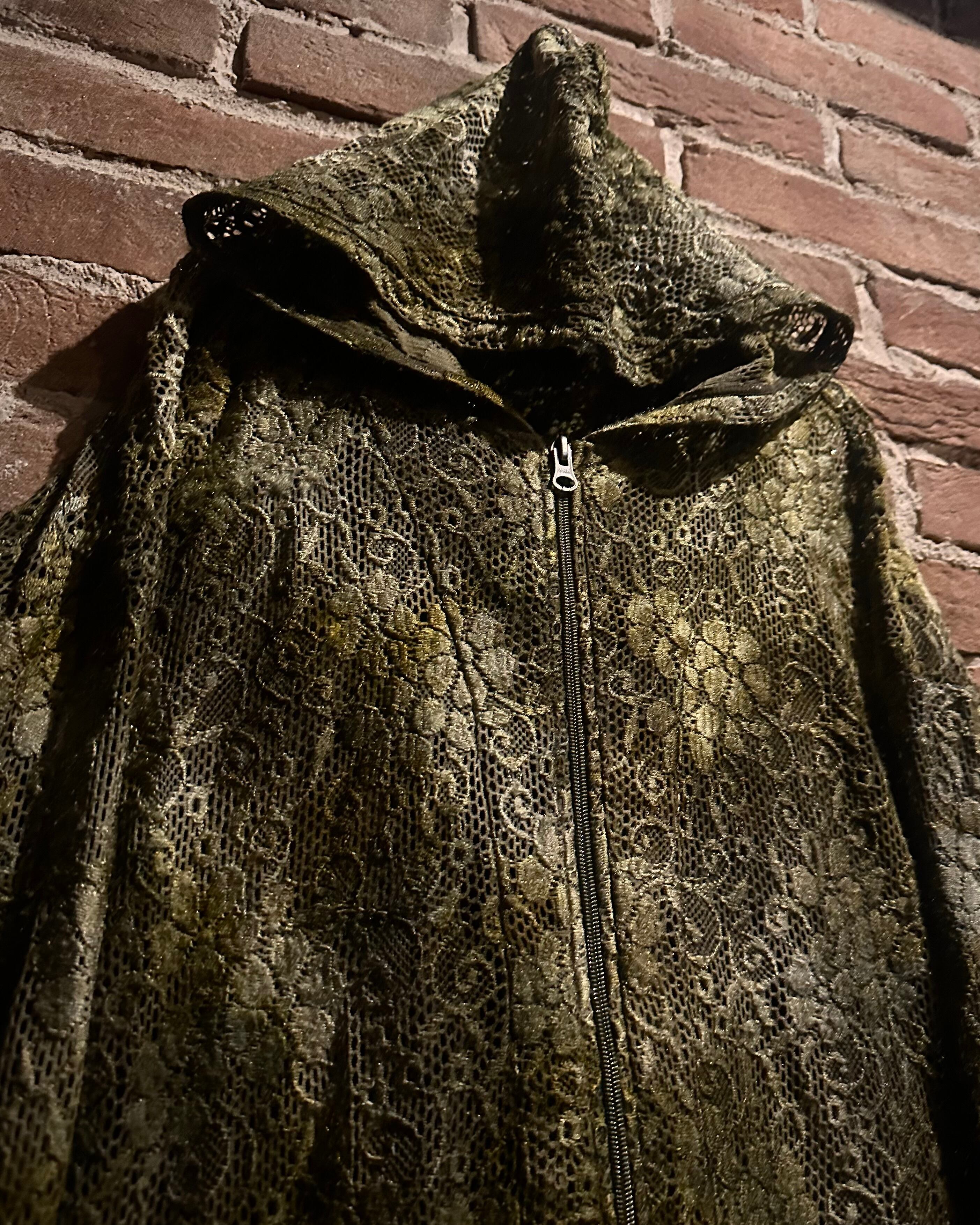 目の細やかなレース地のボディに、グラデーションがかった花柄を載せた稀有なレースのジップアップフーディ。