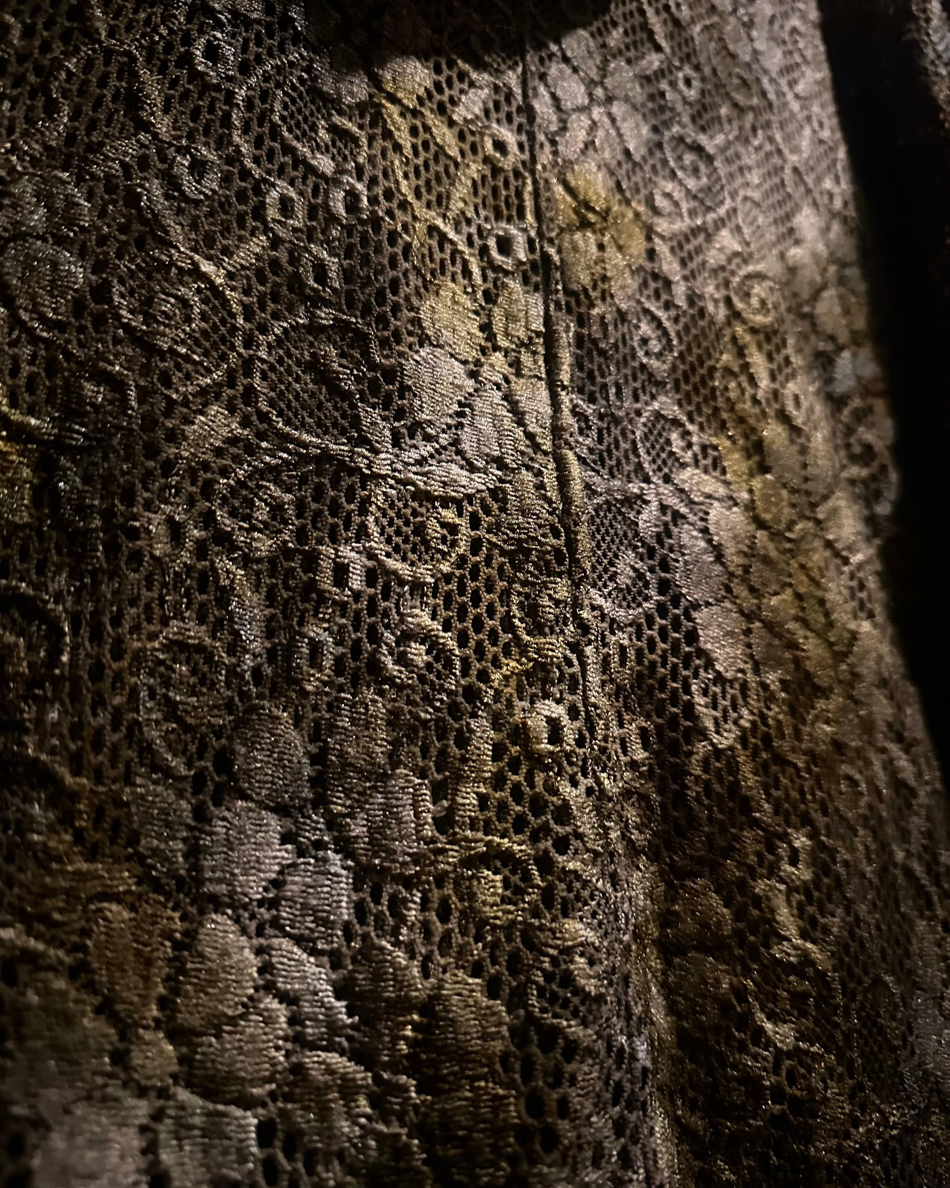 織りによって花柄が表現されておりレースの異素材に立体感が生まれ、存在感を抜群に放っています。